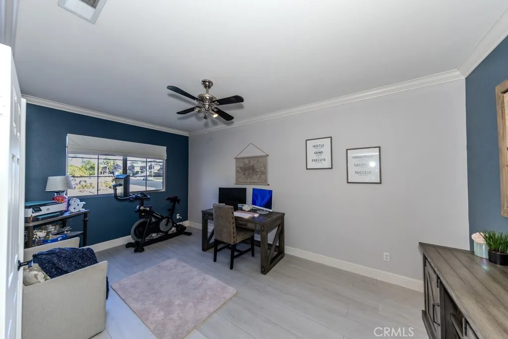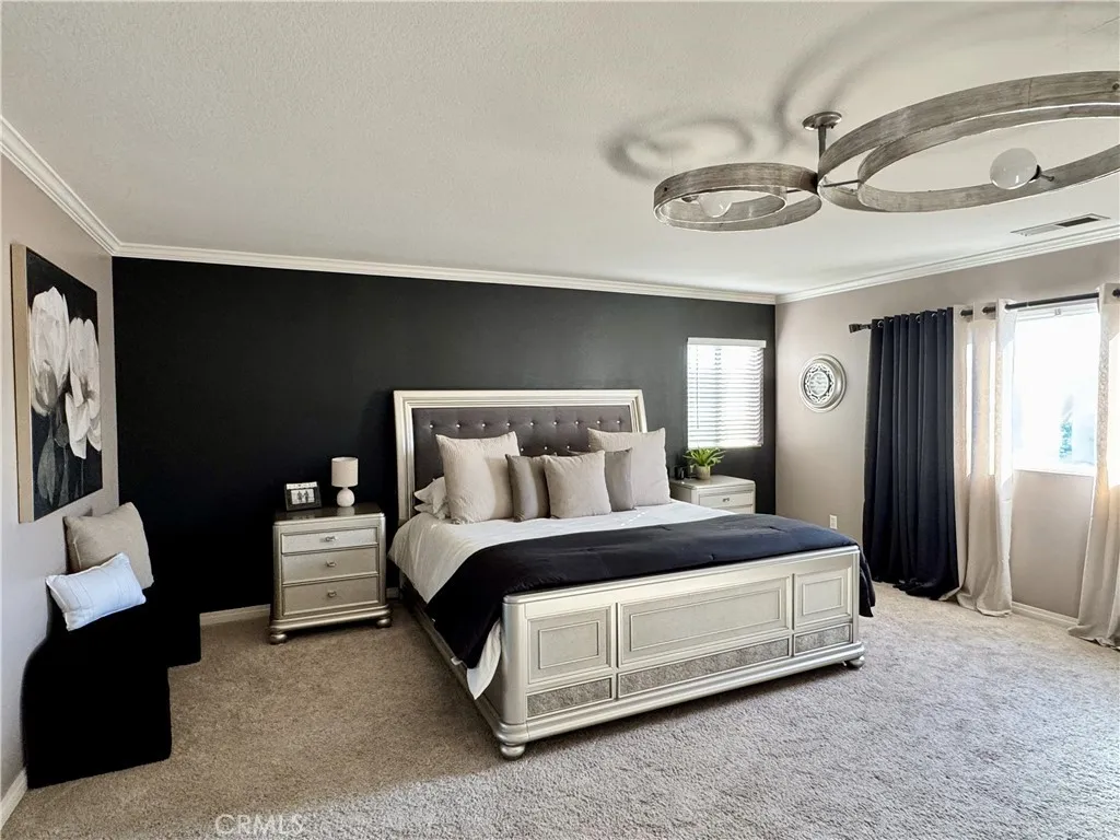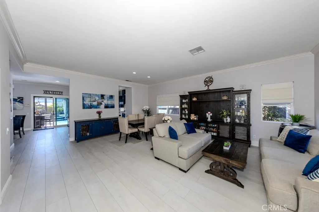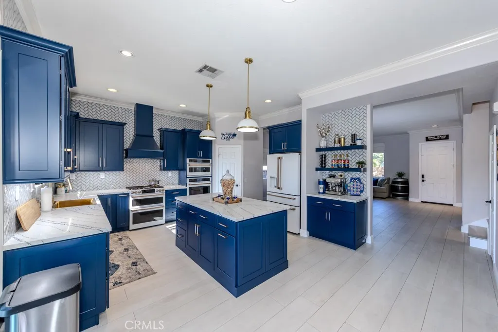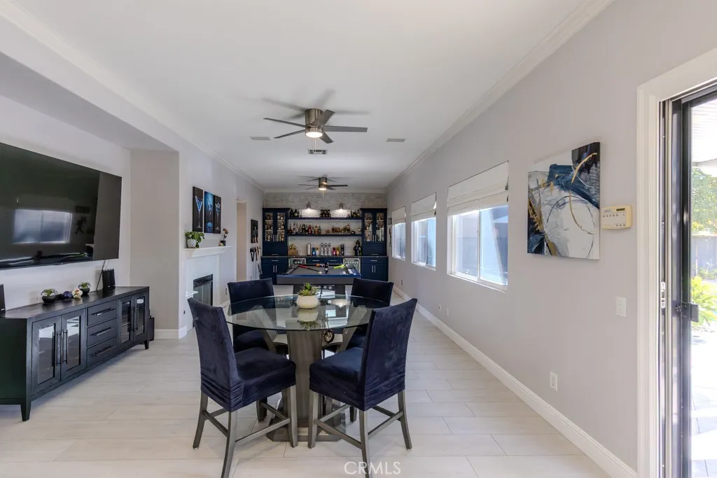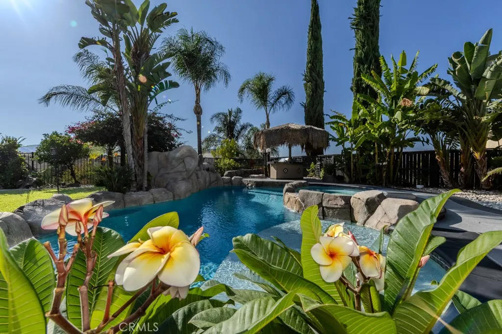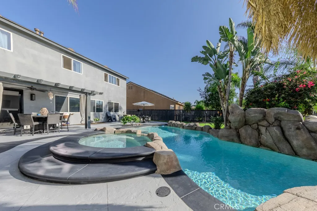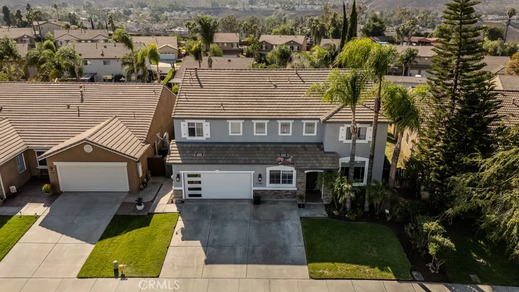 PAID OFF SOLAR, POOL AND SPA, UPGRADED!!! Step into modern sophistication. This luxurious 5 bedroom 3 bathroom home will satisfy all of your expectations. Upon entering, you will immediately notice the open floor plan, crown molding, windows that offer natural lighting, seamless tile flooring, office space, and the pleasing neutral color scheme. The kitchen is bold yet elegant. The CAFE brand appliances are both smart and Wi-Fi operative, dressed with gold fixtures, equipped to bring your culinary experience to another level. The cabinetry provides an abundance of storage, there is a pantry, and even your very own coffee bar! In the game/pool table area you will find a dry bar with 2 refrigerators, shelving, and additional cabinet space for storing snacks and goodies to offer your guests. Head upstairs to find a loft area along with 4 bedrooms that have carpet throughout. The main bedroom suite is a couples' dream with a fireplace, more windows for extra natural light, his/hers closets, and space space space!!! If that wasn't enough, wander back downstairs and enrapture yourself into the backyard oasis. The beach entry pool is surrounded by palm trees galore, tropical greenery, and a built-in BBQ with seating is nestled into the corner of the yard for added entertainment. There is a firepit, spa, and covered seating area with a ceiling fan to top off your hosting showcase. Solar is fully paid off. Walking distance from Lake Mathews Elementary. Close to shopping, Tyler Mall, and Dos Lagos. This dwelling can only truly be appreciated in-person. We invite you to visit before i