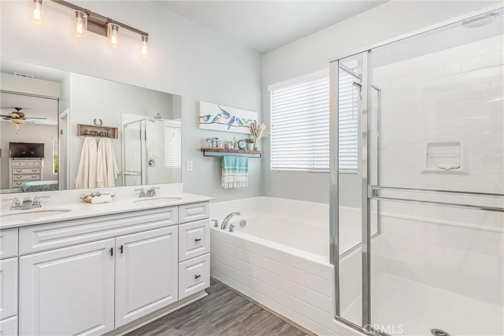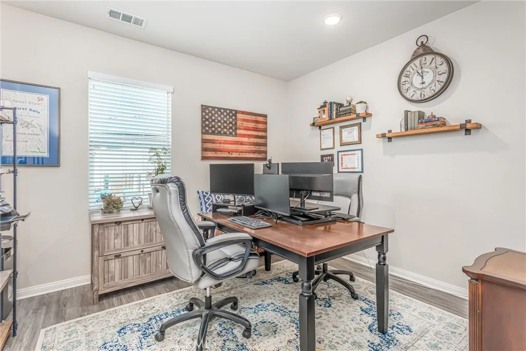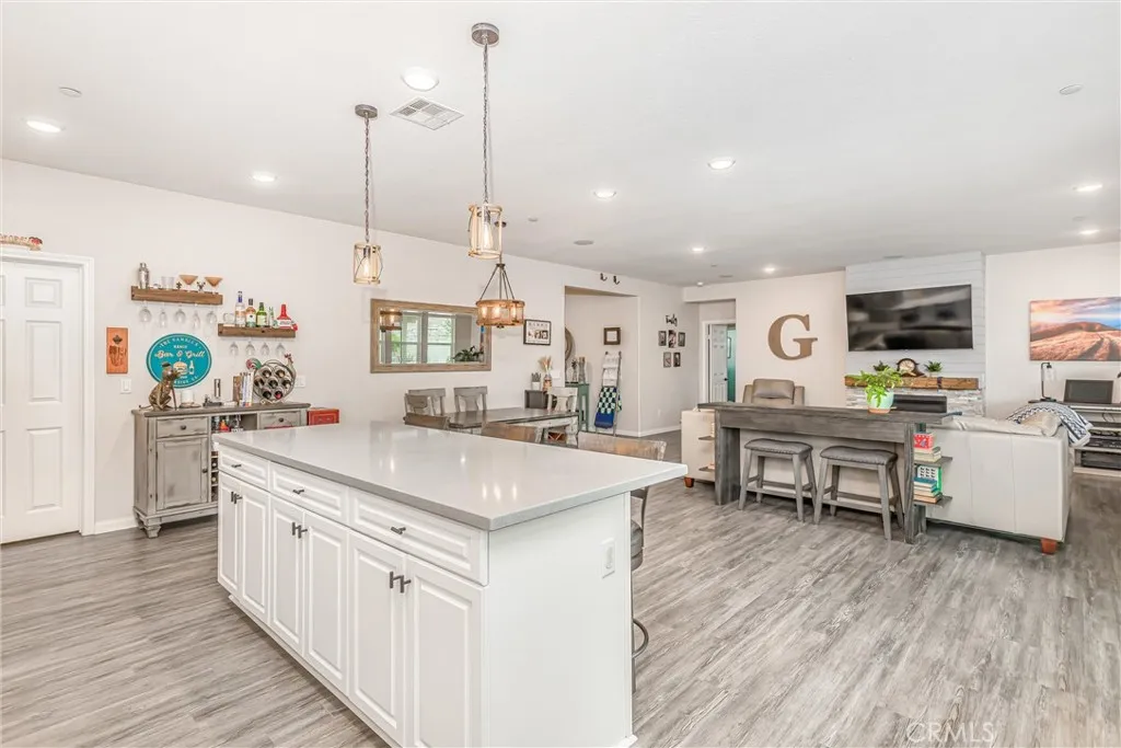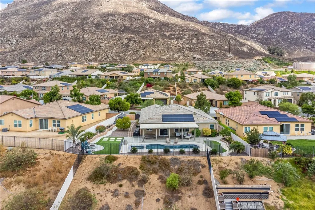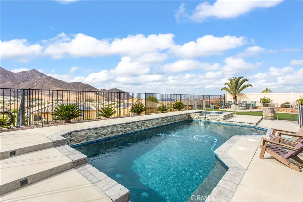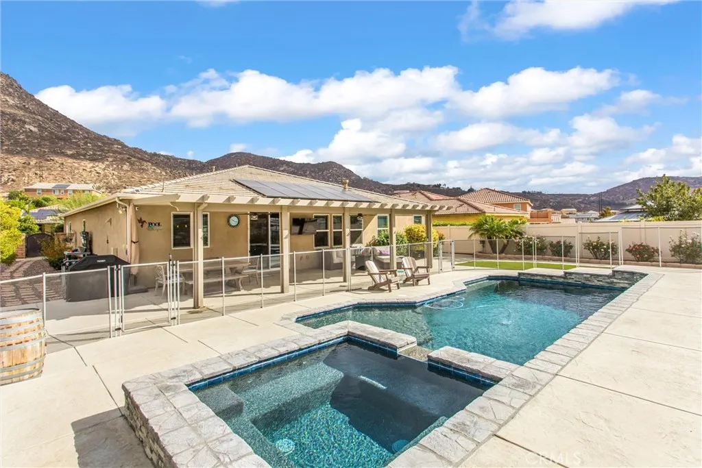 SPECTACULAR VIEWS AWAIT! This exquisite single-story pool home, located in the desirable Spring Mountain Ranch Community, features 3 bedrooms and 2 baths with an office with a walk-in closet and sliding barn door that can be converted to make a 4th bedroom all situated on a generous lot. Enjoy a spacious open concept. The kitchen boasts elegant quartz countertops, modern stainless steel appliances, a double oven, a walk-in pantry, and a large center island complete with bar seating. Large windows along the back of the home fill the space with natural light and showcase the backyard and outdoor living area. The beautifully updated fireplace with a custom mantle adds a cozy touch to the living space. The spacious primary suite provides a private retreat, complete with a bathroom featuring dual sinks, a separate walk-in shower, a relaxing soaking tub, and a roomy walk-in closet featuring a custom closet organizer.. Elegant vinylplank flooring flows seamlessly throughout the home, with newer carpeting in all of the bedrooms. The indoor laundry room is equipped with a sink and overhead storage cabinets for convenience. With a spacious 3-car garage, theres plenty of room for vehicles and additional storage. The backyard is a true paradise, featuring a covered patio custom built pool and spa along with a firepit area for cozy evenings. The low-maintenance landscaping, featuring artificial turf and pavers, makes outdoor living a breeze. Additionally, the home is outfitted with solar panels for enhanced energy efficiency and cost savings. As an added bonus the community offers a six
