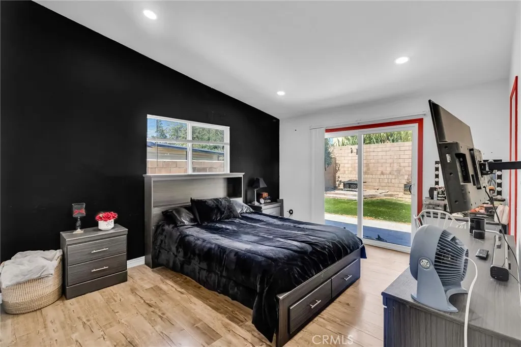 Introducing an updated 3-bedroom, 2-bath home with a bonus room in a quiet North Riverside neighborhood. Renovated in 2018, it features vaulted ceilings, recessed lighting, walnut laminate flooring, and an open layout connecting the living, dining, and family rooms highlighted by a fireplace. The kitchen offers quartz counters, espresso shaker cabinets, and stainless steel appliances. The master suite includes high ceilings, a large closet, backyard access, and a bath with dual sinks, quartz counters, and a tiled shower. Secondary bedrooms are spacious with an updated bath featuring a quartz vanity and spa-style shower. Enjoy a spacious backyard with a sunroom. Additional upgrades include dual-pane windows, a 2-car garage with direct access, newer A/C (2019), a newer water heater, a water softener, and a newer roof. Conveniently located near the 60, 91, and 215 freeways, just minutes from Downtown Riverside and UCR.
