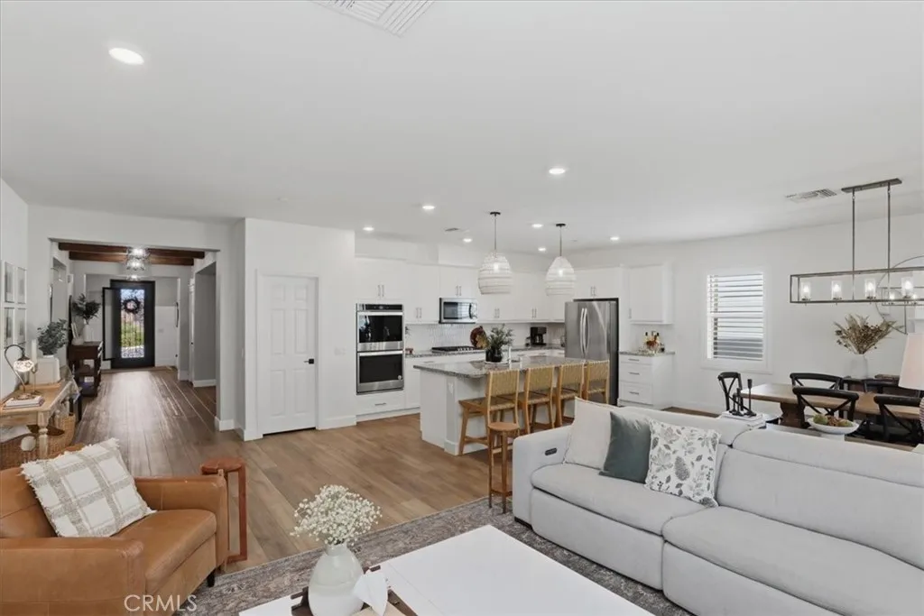 Located in the highly sought-after Spring Mountain Ranch community of Riverside, this beautifully maintained home offers the perfect blend of modern comfort, thoughtful design, and versatile living space. From the moment you arrive, youll notice the inviting curb appeal and pride of ownership. Inside, a bright and open floor plan creates a seamless flow between the main living areasideal for both everyday living and entertaining. Large windows fill the home with natural light, enhancing the warm and welcoming atmosphere. At the heart of the home, the spacious kitchen features ample cabinetry, generous counter space, and modern appliancesperfect for cooking, hosting, and gathering with family and friends. The adjoining dining and living areas provide a comfortable and connected space for making lasting memories. One of the standout features of this home is the private casita with its own separate exterior entrancea rare and highly desirable addition. Whether used for multi-generational living, guests, rental income potential, or a private home office, this flexible space adds incredible value and functionality. The primary suite offers a relaxing retreat, while additional bedrooms provide plenty of room for family or guests. Every space is designed with comfort and practicality in mind. Step outside to a private backyard ready for relaxation, entertaining, or customization to fit your lifestyle. No solar lease to assume! As part of the Spring Mountain Ranch community, residents enjoy access to scenic parks, walking trails, and a peaceful neighborhood setting, all while being