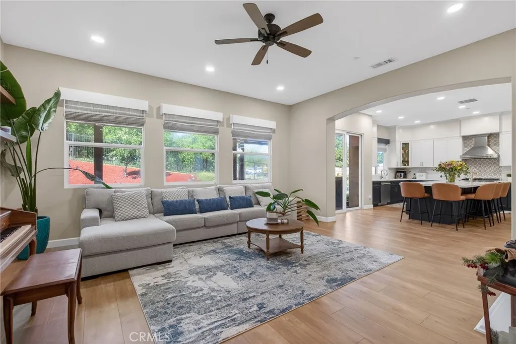ALESSANDRO HEIGHTS/ORANGECREST- GATE GUARDED RANCHO VALENCIA- This sought-after Rancho Valencia Plan 2 has been exquisitely transformed into a modern masterpiece with a fresh, light, and contemporary vibe. Completely remodeled within the last two years, this home boasts a brand-new kitchen and bathrooms, stunning new flooring, and updated lighting throughout, including recessed and designer fixtures. Every detail has been thoughtfully curated with upscale finishes to create a timeless and elegant aesthetic. Step through the foyer into spacious formal living and dining rooms, perfect for entertaining. The heart of the home is the expansive island kitchen, outfitted with upgraded appliances, and seamlessly connected to the open-concept family room with a cozy fireplace. With four generously sized bedrooms, the layout ensures privacy for all, while the primary suite is a true retreat, featuring a lavishly updated bathroom and dual custom walk-in closets. A separate study and a large indoor laundry room add to the home's functionality. Situated on a pool-sized, half-acre lot partially enclosed by a picturesque orange grove, the property offers both privacy and the delightful seasonal aroma of blossoms. The backyard is beautifully landscaped, complete with a covered patio and built-in barbecue, making it an entertainer's dream. This home is truly move-in ready and awaits its lucky new owners!