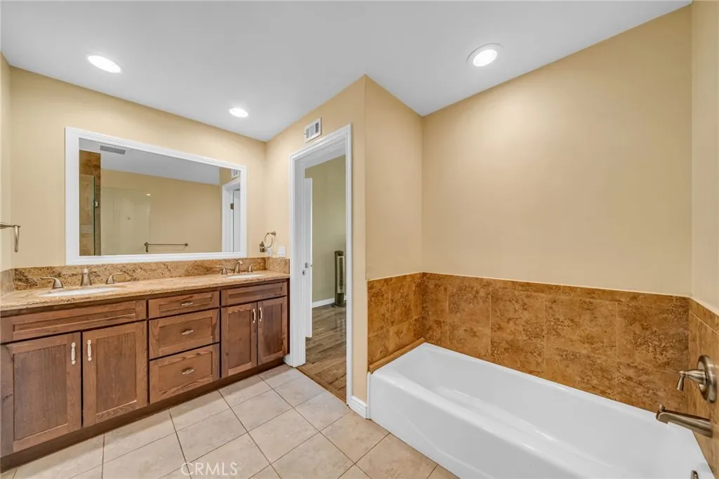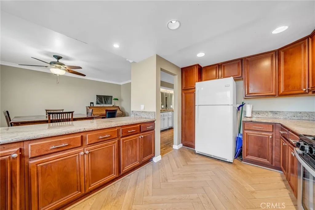 Large 2 bedroom remodeled townhome, over 1,700 sq. ft., with peaceful treed setting conveniently located at the base of the Palos Verdes Peninsula in The Estates complex. Spacious living room has hardwood flooring, smooth ceilings, crown molding, decorative fireplace, wet bar & large entry closet. Nice size dining area off kitchen with breakfast bar, granite counters, maple wood cabinetry, stainless-steel appliances, recessed lighting & new waterproof vinyl plank flooring. Both bedrooms have walk-in closets & ensuite baths. Larger suite has pastoral city view, vaulted ceiling, double sinks & separate tiled shower & bathtub. Smaller suite has built-in bookshelf & tiled tub/shower. Paneled doors, updated light & plumbing fixtures, forced air heating & air conditioning. Don't miss extra storage area & wine cellar off staircase by the attached 2 car garage with laundry area & utility sink. Good guest parking plus an array of HOA amenities including tennis/paddle courts, 3 swimming pools (1 is directly across from the garage), spa, BBQs & large clubhouse with huge flat screen TV, kitchen, gym, sauna, billiards & game tables. There is a small patio by the entry. Quiet location (not facing Crenshaw Blvd.) with shopping, restaurants & Portola Park nearby.
