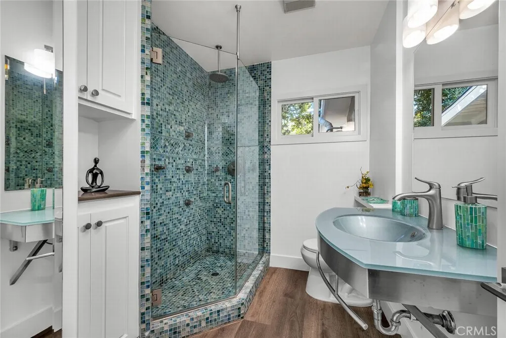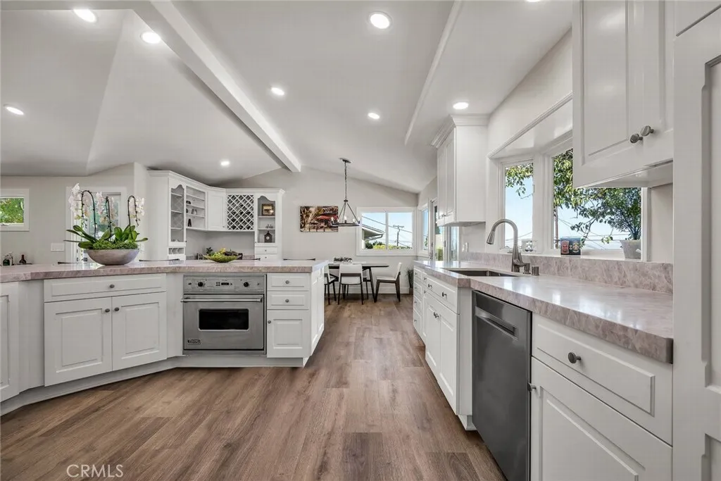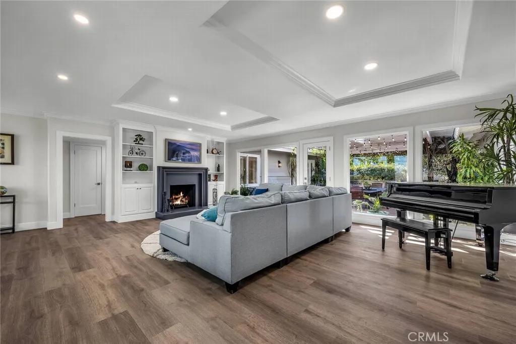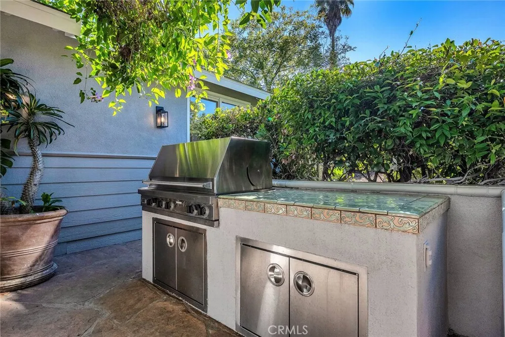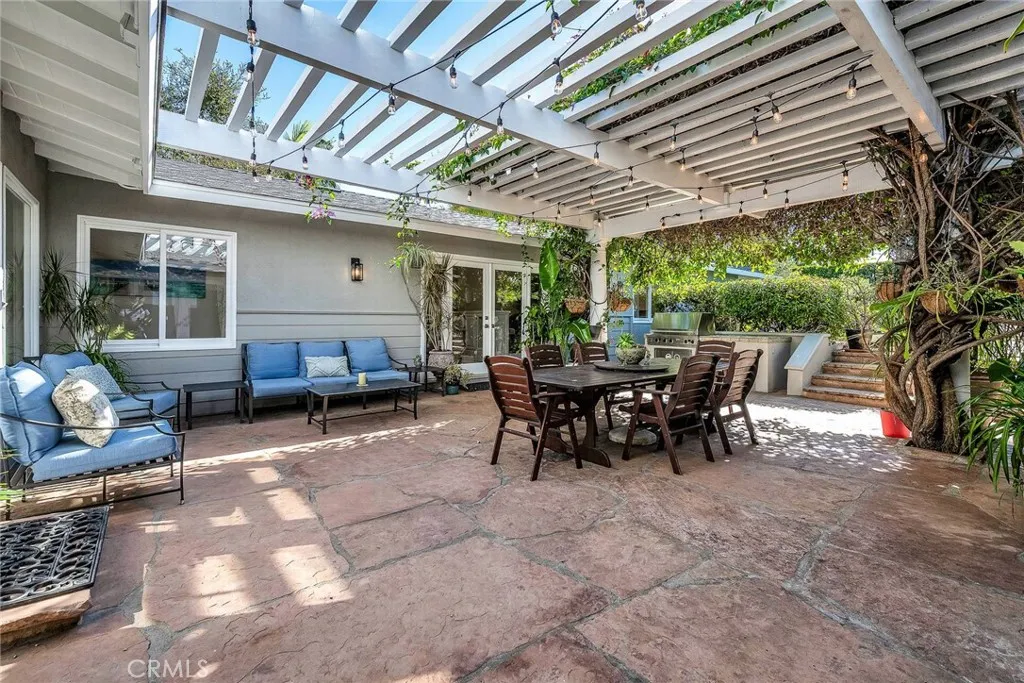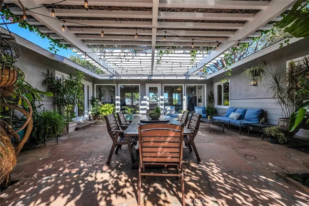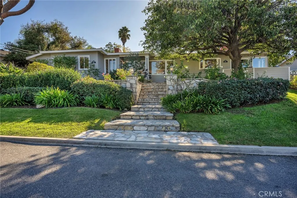 Welcome to this stunning, fully remodeled ranch-style home in an A+ prime location within the highly sought-after Marloma neighborhood. This single-level gem radiates inviting energy, bathed in natural light and centered around a spectacular courtyard patio accessible via French doors from the living room, family room, and primary bedroom suite. Enjoy some city-light views for added charm. Spanning 3,100 SqFt, this beautifully updated 4-bedroom, 3-bath home includes an additional 400 SqFt studio with its half-bath and serene backyard vistas. The studio is situated behind the detached 2-car garage and has its own private entrance (unpermitted and excluded from listed square footageyet an incredible flex space for guests, office, or creative studio). The chef-inspired kitchen features a large central island with seating for four, a prep sink, abundant quartz counter space, and an open layout ideal for entertaining or family meals. Upgrades include new Cristallo quartz countertops and freshly painted custom cabinetry. The huge primary bedroom suite features a sitting area, luxurious bathroom, walk-in closet, and dedicated office nook. The expansive, fully usable 15,265 SqFt lot exceeds 1/3 acre and is perfect for outdoor living and play, and offers a dream backyard: a flagstone courtyard patio with built-in BBQ, full-sized fire pit, raised gardening beds, bocce ball court, private spa patio with outdoor shower, ample lawn area, and lush landscaping everywhere! A long driveway provides substantial parking: 3 spaces behind the remote gate plus 2 in front. Recent upgrades enhance