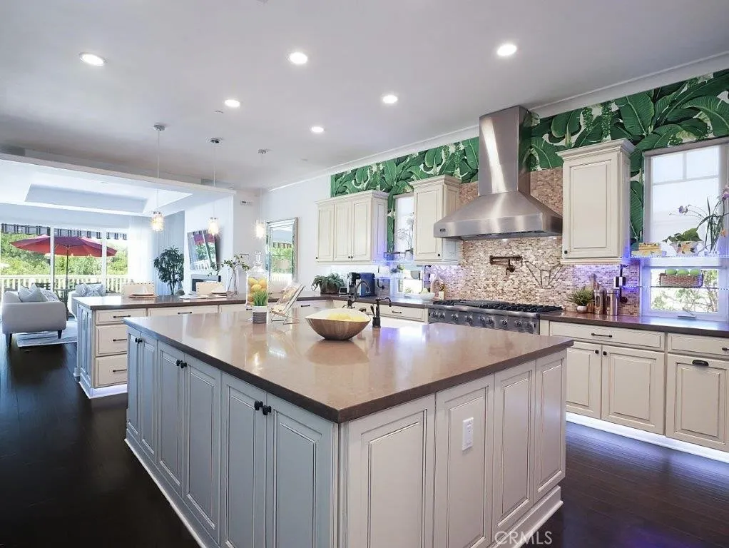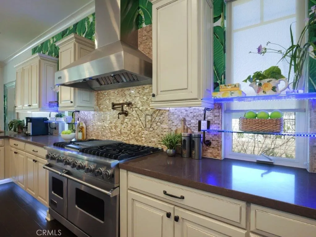 Hollywood glamour comes to life in this dazzling designer estate tucked within an exclusive cul-de-sac of just 12 newer homes, adjacent to the prestigious Rolling Hills Country Club and the world-renowned Jack Kramer Tennis Club. Extensively upgraded beyond its original design, the meticulously landscaped lot boasts a beautiful curb appeal and a manicured garden framed by cherry blossom and fruit trees. Inspired by the iconic Beverly Hills Hotel, the interiors showcase designer details such as LED accent lighting, infinity mirrors, custom wallpapers, and resort-style bathrooms. Other distinctive touches such as hand-cut floor tiles and heated bathroom floorings add a layer of refined luxury. Designed for both superb entertaining and lavish living, the home features two enclosed patios that create seamless indoor-outdoor flow to the expansive deck and landscaped grounds. The MAIN LEVEL offers a sophisticated great room for living and gatherings, opening to a charming tea room in the enclosed lanai and sliding doors to the tranquil garden. A formal dining room is complemented by an oversized gourmet kitchen featuring a large center island, Viking appliances, extensive cabinetry, quartz countertops, walk-in pantry as well as a butlers pantry and a wine storage bar. The primary suite overlooks the lush backyard and includes an expanded walk-in closet, a resort-style bathroom, and direct access to the open deck. An additional en-suite bedroom on the main level provides ideal accommodation for family or guests, while a laundry room and a uniquely designed powder room complete the