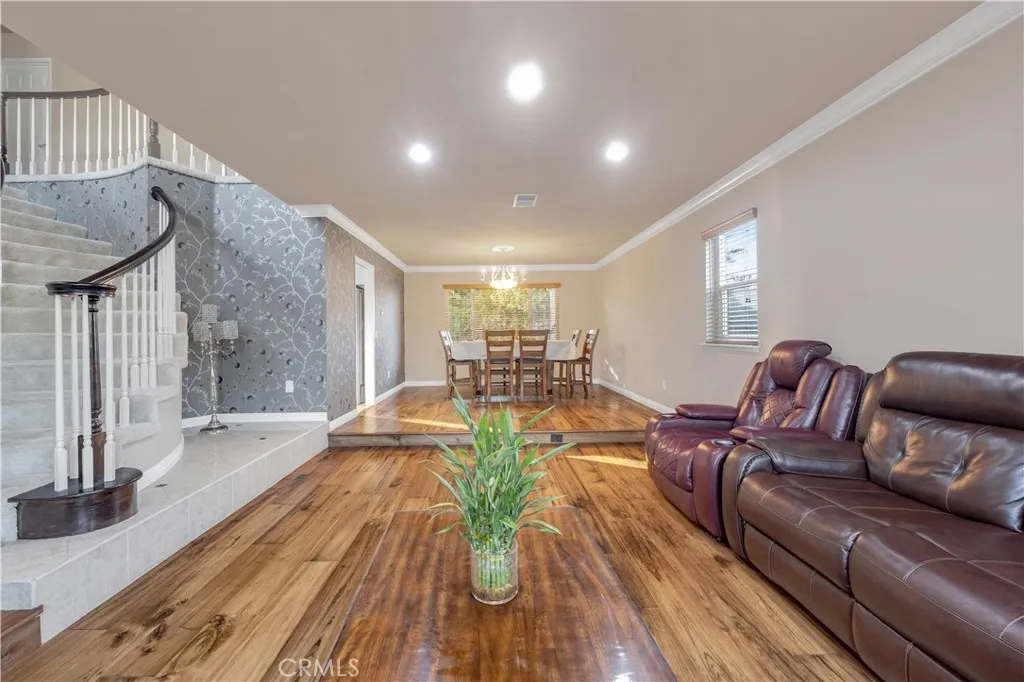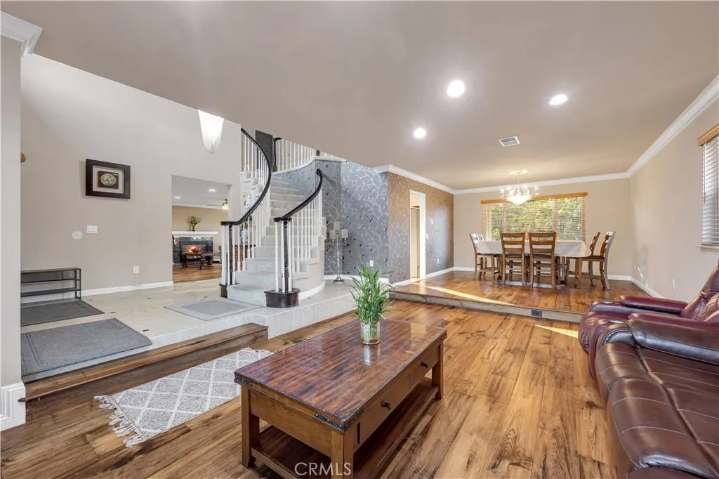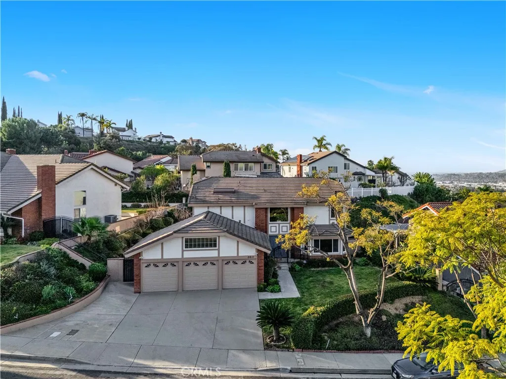 Located in one of the most desirable neighborhoods in Rowland Heights, this hilltop home sits on higher ground and offers nice mountain views. The property is well maintained and move-in ready. Upon entry of the home, you are welcomed by a chandelier and a grand staircase with high vaulted ceilings, creating a bright and open feeling. The home offers 4 bedrooms and 2.5 bathrooms with a spacious floor plan that works well for everyday living and entertaining. The kitchen features black granite countertops, tiled backsplash, and stainless steel appliances. Upstairs, French doors lead to the primary suite with cathedral ceilings, recessed lighting, textured wallpaper, and a bright bathroom with a large soaking tub, separate shower, double vanities, makeup area, and a walk-in closet. Three additional bedrooms are located down the hallway along with a full bathroom with double sinks. The home includes a 3-car garage and a long driveway, providing plenty of parking and storage space. The indoor laundry room is located on the main floor across from the powder room and includes cabinets with space to add a sink. The backyard features a new wood-look aluminum patio that stretches across the yard. The center section is fully covered with a ceiling fan, while the lattice sides allow natural light to come through. The yard is nicely landscaped with a variety of fruit trees. Other upgrades include PEX plumbing, NEW carpet, newer exterior paint, water heater, AC, and furnace. Washer and dryer are included. One of a kind hilltop luxury home with great views in a prime Rowland Heights loca