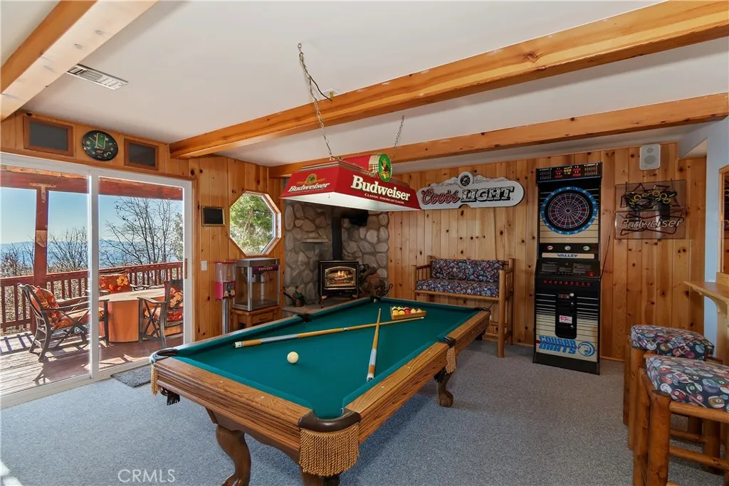 Welcome to your private mountain retreat! This stunning three-level home offers breathtaking panoramic views of sparkling city lights, majestic mountains, and lush forest canopy from multiple vantage points throughout the property. The main level welcomes you with an inviting living room anchored by a striking river rock fireplace, creating the perfect ambiance for relaxation. The well-appointed kitchen features a convenient breakfast bar and dining area, ideal for both casual meals and entertaining guests. Step through to the upper back deck and prepare to be captivated by the sweeping vistas that stretch before you. This level also includes a comfortable bedroom and full bathroom, offering convenient single-level living if desired. Ascend to the top level where the luxurious primary suite awaits. This serene retreat features its own cozy rock fireplace for intimate evenings and spectacular views to wake up to each morning. The spa-like primary bathroom is designed for indulgence, complete with dual sinks for busy mornings, a relaxing jetted tub for unwinding after a long day, and a separate walk-in shower. The lower level transforms into an entertainer's dream with a dedicated game room that includes a pool table and electronic dart board, perfect for hosting friends and family. The private bar adds a sophisticated touch for gatherings, while the laundry closet provides practical convenience. Another bedroom and full bathroom on this level ensure comfortable accommodations for guests, and access to the lower back deck provides yet another spectacular setting to enjoy thos