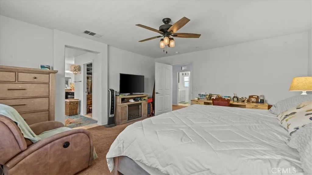 Beautifully upgraded 4-bedroom, 3-bath home offering spacious living and thoughtful design. This well-maintained property features a full convenient downstairs bedroom and a full bath, perfect for guests or multigenerational living. The main level includes a large living room and dining area, along with an expansive family room that flows seamlessly into the oversized, upgraded kitchencomplete with abundant counter space, cabinetry, and an open area ideal for everyday dining. Upstairs youll find three additional bedrooms, including a generous primary suite with a large bathroom and walk-in closet. The home also features a three-car garage with tandem parking and convenient mounted storage racks. Outdoor features include a covered patio, jacuzzi (included with the home), RV parking, and lush landscaping that enhances curb appeal. Additional upgrades include 28 solar panels, a new 50-gallon gas water heater, and Nest alarm compatibility ready for activation. Located in a community with desirable HOA amenities include two pools, splash pool for children to enjoy, a clubhouse, picnic area, and gym/exercise room and a park This is a must-see home!