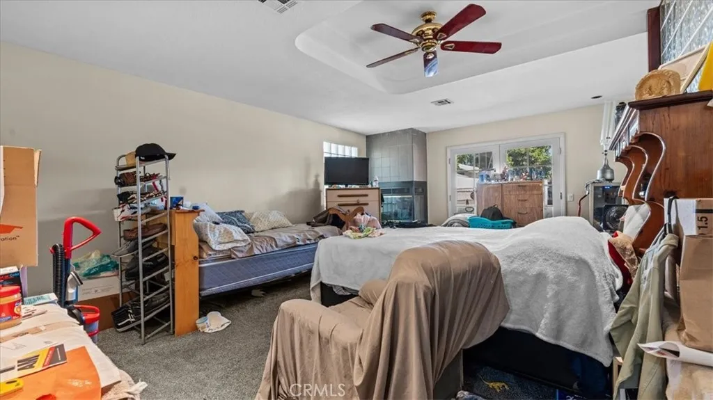 This property features a main home and a back house, offering plenty of space and flexibility. The back house includes an open room with a bathroom and shower, perfect for guests, a studio, or a private workspace. Inside the main home, you'll find a living room with a fireplace, a dining room, and a kitchen with an eating area, and plenty of cabinet and counter space. A den with a fireplace and built-in shelves provides a cozy place to unwind. The living room opens through French doors to a spacious game room with a bar and sink, built-in entertainment center, ceiling fan, and French doors leading to the backyard. The primary suite includes its own private bathroom, and another bathroom with a shower is conveniently located near the front bedroom. The laundry area is located in the detached garage. Another bonus is that the Solar panels are paid off. Outside, youll find a pool with a spa, a covered patio, and a basketball court perfect for gatherings and outdoor fun. The circular driveway provides plenty of parking and easy access, all set on an expansive 20,400 sqft lot. This home offers room to relax, entertain, and make lasting memories.
