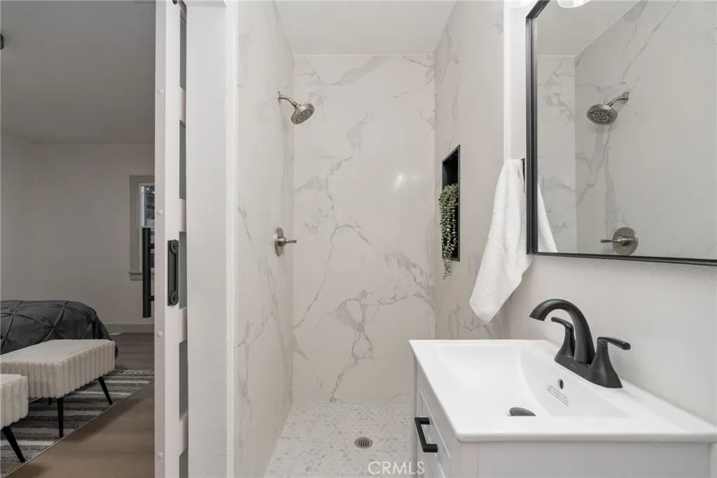 Welcome to a completely reimagined Spanish-style home in the heart of North San Bernardino. This stunning residence has been fully remodeled from top to bottom, offering the perfect blend of modern upgrades and timeless architectural charm. Step inside to an open-concept floor plan, achieved by removing interior walls to create seamless flow between living, dining, and kitchen spaces. Natural light fills the home through brand-new dual pane windows, highlighting the elegant new flooring, recessed lighting, and upgraded finishes throughout. The redesigned kitchen features brand-new countertops and updated cabinetry, making it both stylish and functional for everyday living or entertaining. Each bathroom has been luxuriously updated with new showers, tile work, and modern fixtures, giving the home a truly move-in-ready feel. Outside, the property includes a detached one-car garage paired with a newly built, attached ADUperfect for guests, extended family, or a private home office. This added living space enhances versatility and long-term value. Located in a quiet, family-friendly neighborhood in North San Bernardino, this home offers comfort, style, and convenience within a peaceful residential setting.
