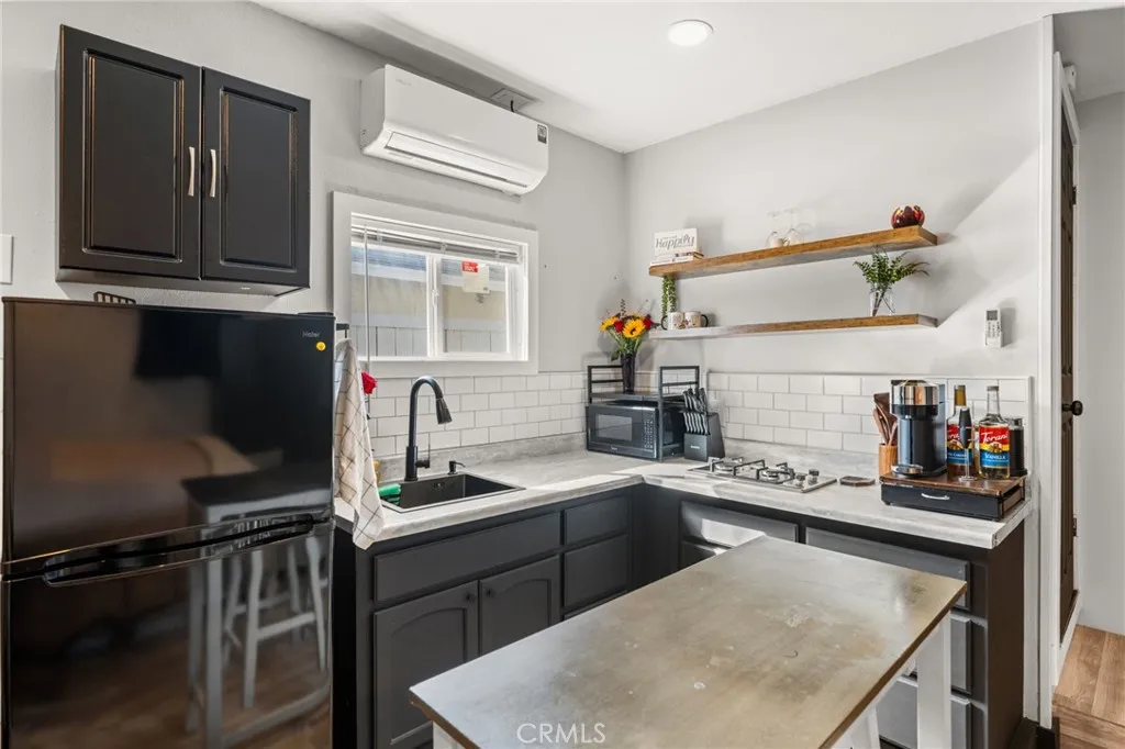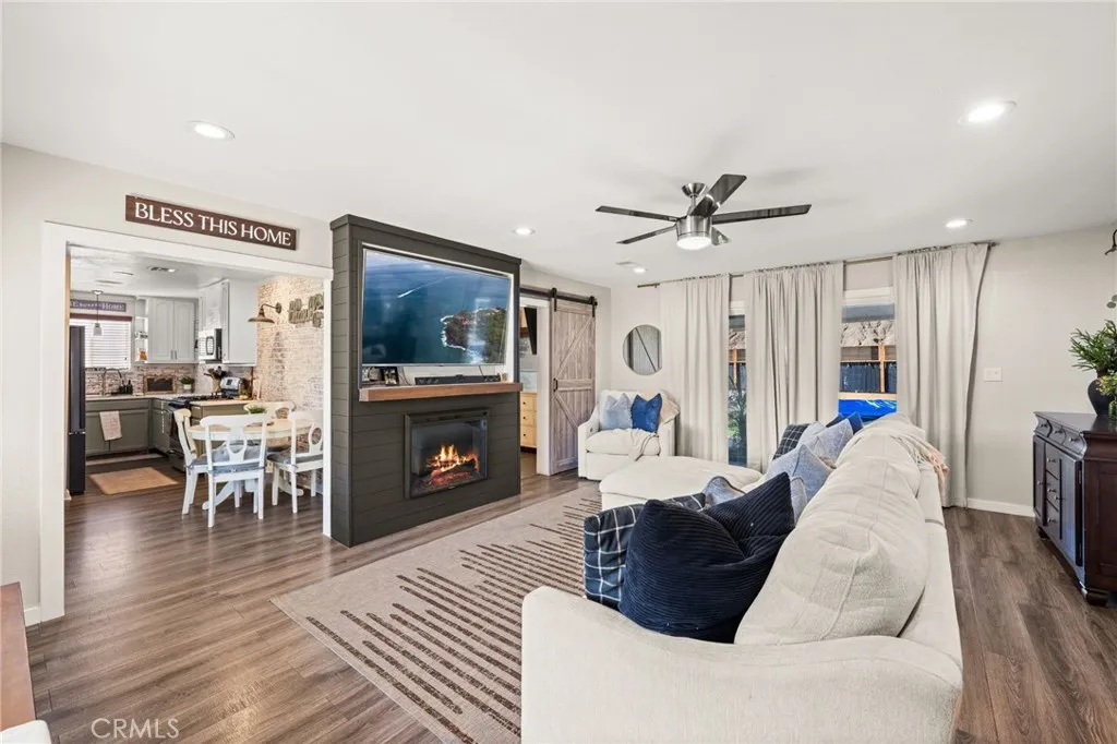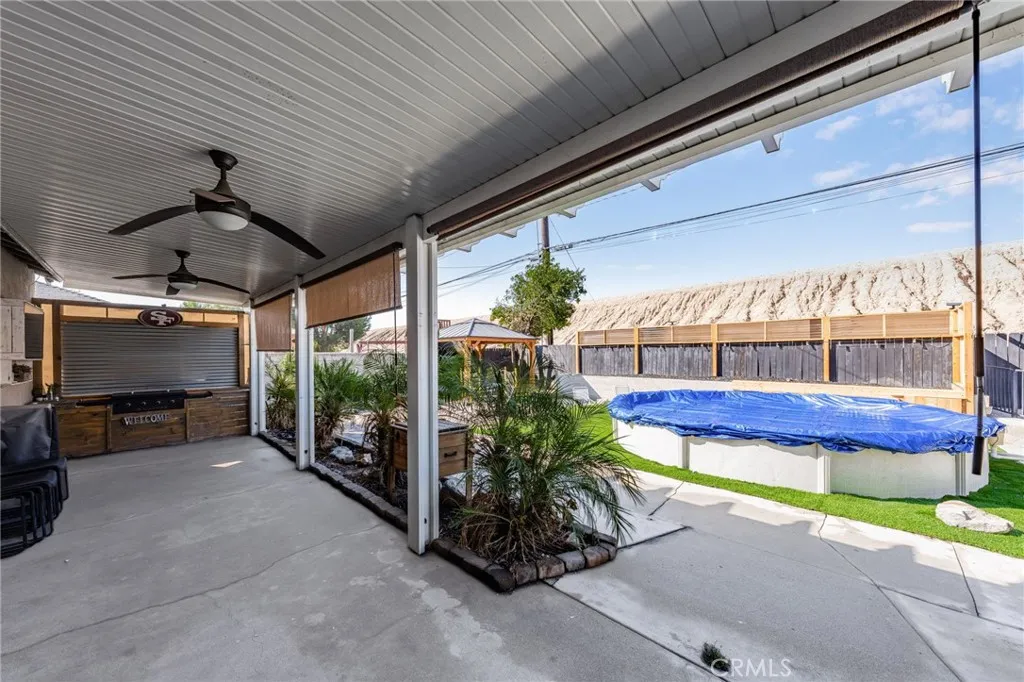Charming 3 bedrooms, 2 bathrooms home with a garage that has been converted into a studio with its own private entry, kitchenette, half bathroom plus its own mini split adding heating and air to the unit. The backyard of this home offers RV Parking while still leaving you tons of room to enjoy your large covered patio area with a built in bbq, concrete area, turf, a gazebo, and steel pool that will all stay. The main home offers an updated kitchen with a walk in pantry, tons of counter space and cabinets for storage. Enjoy your living room with an accent wall for your TV, and a cozy electric fireplace. The primary bedroom offers the privacy of being on one side of the home with its own bathroom behind barn doors, featuring a double sink vanity and washer and dryer hookups for convenience. On the other side of the home you will find 2 bedrooms and a second full bathroom. The tile, and vinyl floors throughout this home give it a modern yet cozy feel. You do not want to miss this opportunity to own a great home North of the 210 freeway conveniently located.