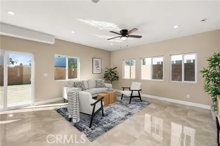 Welcome to 576 N Meridian Avenue, a stunning new construction nestled in the heart of San Bernardino. This modern residence seamlessly blends contemporary design with luxurious comfort, offering an unparalleled living experience. With four spacious bedrooms, including a lavish master suite featuring a walk-in closet and en-suite bathroom, this home provides ample space for relaxation and privacy. The three elegantly designed bathrooms boast high-end fixtures and finishes, adding a touch of sophistication to daily routines. The expansive open-concept living areas are bathed in natural light, creating an inviting atmosphere perfect for both relaxation and entertaining. At the heart of the home, the gourmet kitchen impresses with state-of-the-art stainless steel appliances, granite countertops, custom cabinetry, and a large center island. The large backyard offers an ideal setting for outdoor gatherings and leisure, providing a serene escape from the hustle and bustle of daily life. An attached two-car garage offers ample storage space, while the energy-efficient construction ensures both cost savings and sustainability. Situated in a desirable neighborhood, this home is conveniently located near schools, parks, shopping centers, and major highways, making it an excellent choice for families and professionals alike. Dont miss the opportunity to own this exquisite new construction at 576 N Meridian Avenue. Experience modern living at its finest by scheduling your private tour today. NO HOA, NO HIGH TAXES, Apn Number For This Property is 0142-325-31 *** Furnishings, Decorations