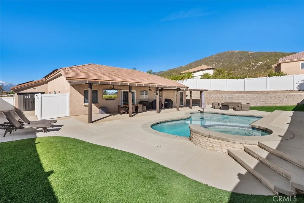 This home is turnkey!!! If you are looking for a home that has the country feeling and elbow room, this is it. No HOA here! The home has a new saltwater pool and spa along with new pool equipment. NOT a community pool, it's all yours! The backyard has new vinyl fencing, artificial turf, new concrete decking around the pool and a new alumawood patio with decorative fans. The backyard is a great place to enjoy your summers with family and friends. The front yard has new Marathon grass with an automatic sprinkler system. The home has high ceilings with a fire sprinkler system throughout. Fans in every room and a whole house fan in the hallway that circulates air in the house. The kitchen has quartz countertops and recessed lighting. The has new sliding glass doors and interior paint. The laundry room is inside. The solar system has a Tesla battery for backup. This is a must see to appreciate all that it has to offer.
