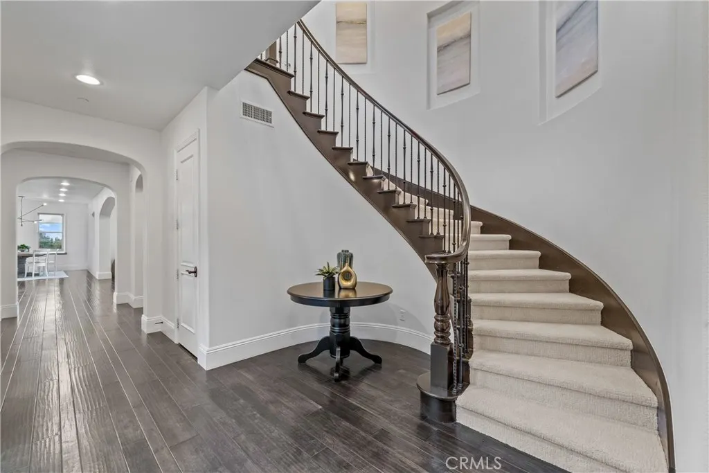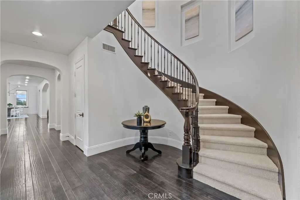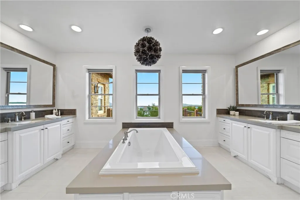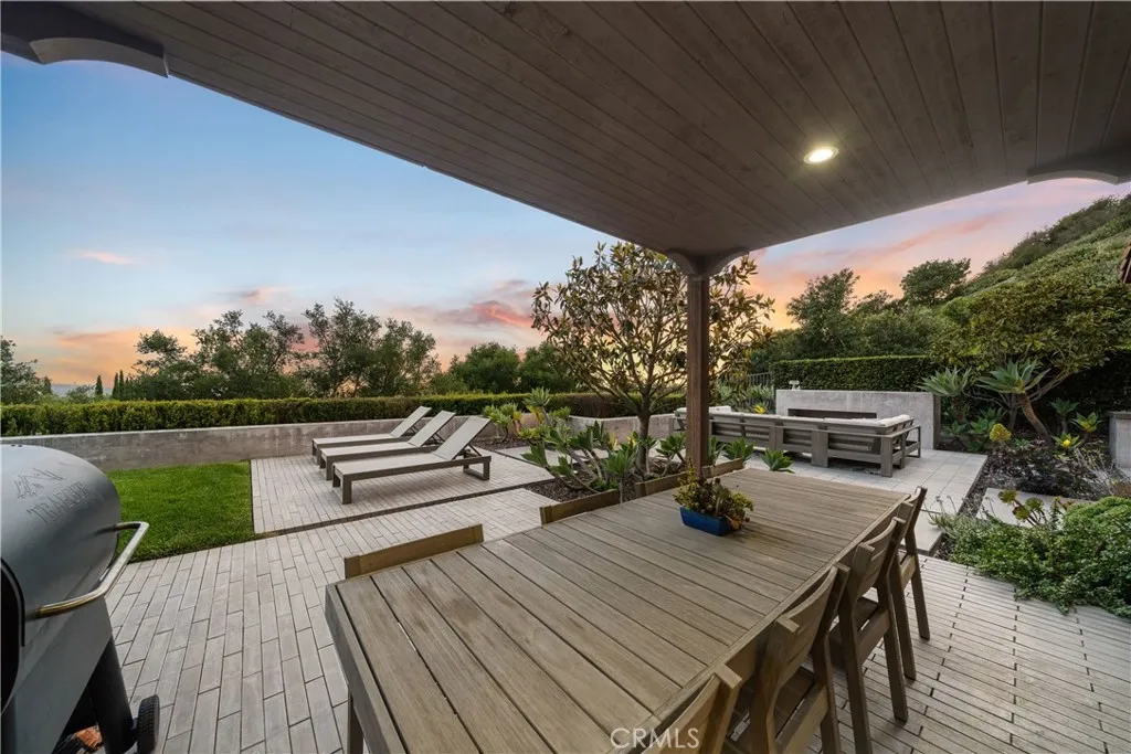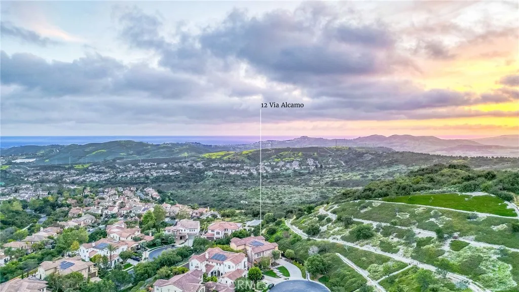 Tucked away at the end of a peaceful cul-de-sac, this stunning 5-bedroom residence offers privacy, space, and panoramic views that are truly second to none. Set on an expansive 11,000 sq ft lot and bordered by serene hillsides and scenic trails, this is more than just a home its your personal sanctuary. From the moment you arrive, the homes exceptional curb appeal is undeniable. A beautifully landscaped front yard and extra-long 6-car driveway welcome you in style. Inside, natural light pours through French doors into two elegant front rooms a formal sitting area with a cozy fireplace and a private office perfect for remote work or quiet reflection. Rich hardwood floors guide you through a dramatic entryway, where a charming courtyard with its own fireplace and market lights invites effortless indoor-outdoor living. Entertain in the formal dining room, updated with a striking stone accent wall and contemporary lighting an ideal setting for unforgettable dinner parties. The open-concept kitchen is a true showpiece, featuring crisp quartz countertops, a walk-in pantry, a butlers pantry, and a picture-perfect ocean-view window over the sink. Gather with family in the spacious great room, highlighted by custom barn doors, a warm fireplace, and generous natural light. Step outside to a backyard designed for coastal living enjoy dining under the covered patio, relax by the outdoor stone fireplace, or watch the sun dip into the Pacific from your private seating area. There's even room to build the pool of your dreams, surrounded by updated landscaping and ambient outdoor light