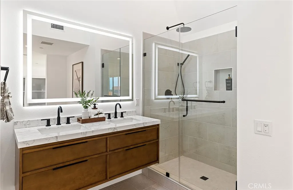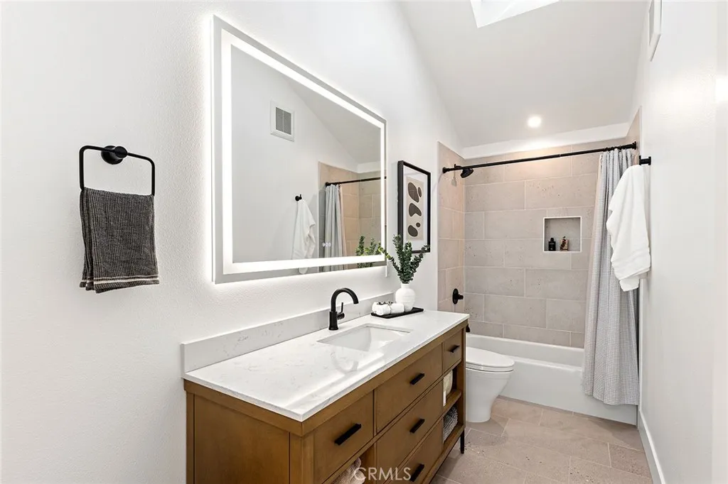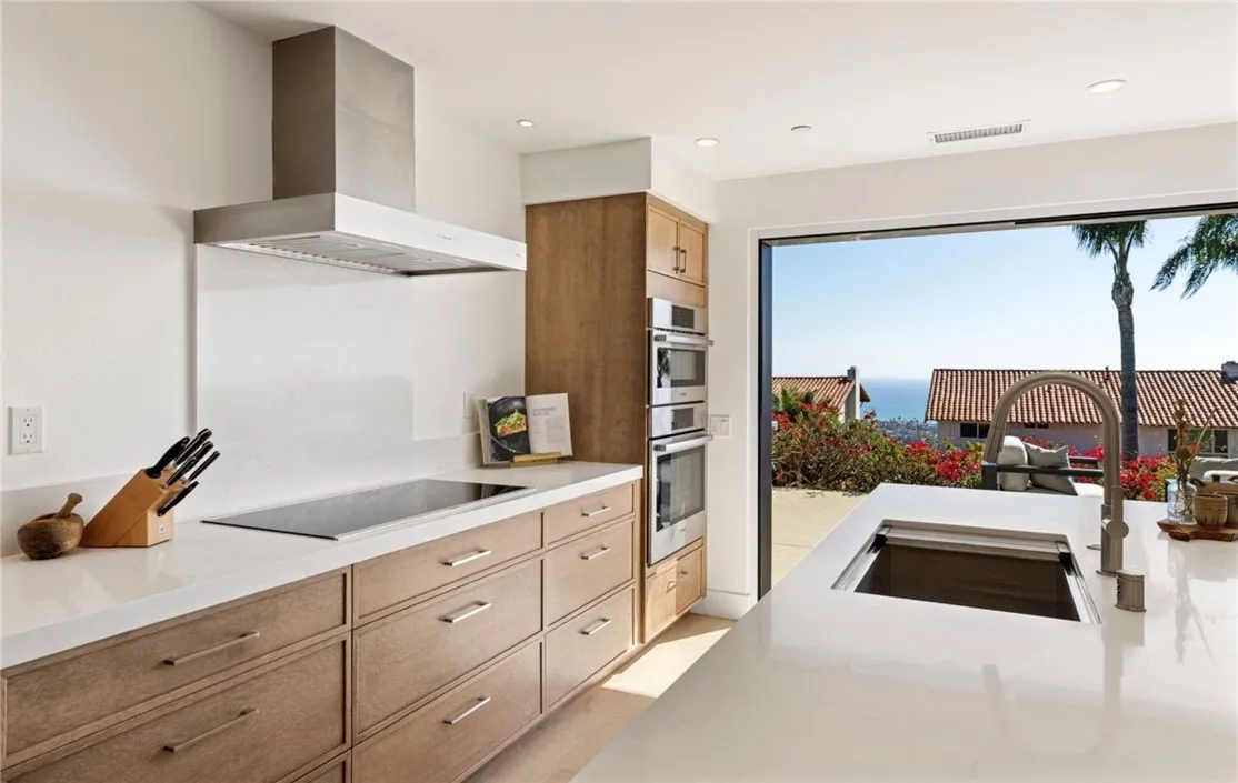 Perched high above the Pacific, this fully permitted luxury custom home offers one of the most commanding panoramic views in San Clemente. From Catalina and San Clemente Island to La Jolla, the horizon stretches endlessly, with white water at Seal Rock visible in the distance, a front-row seat to glowing sunsets, rolling surf, and twinkling coastline lights after dark. Set along one of the citys premier elevated streets, this five-bedroom, three-bath coastal masterpiece was rebuilt from the studs up in 2024, blending refined modern design with the warmth of coastal living. Inside, natural light filters through new Milgard windows and a La Cantina multi-slide door, opening the living spaces to ocean breezes and uninterrupted views. Every element has been reimagined, all-new electrical including a 200-amp panel and EV outlet, PEX plumbing, HVAC, internal fire sprinklers, and a standing-seam metal roof provide peace of mind for years to come. The chefs kitchen showcases Bosch and Fisher & Paykel appliances, custom rift-cut oak cabinetry, and Neolith-style countertops, complemented by a wet bar with Zephyr wine fridge, perfect for entertaining as the sun dips below the horizon. Upstairs, the primary suite opens to a rebuilt view deck capturing some of the most dramatic panoramas in all of San Clemente and Catalina Island. Vaulted ceilings, a walk-in rain shower, and designer finishes create a spa-like retreat. The secondary bath reflects the same elevated quality, with LED mirrors, designer fixtures, and operable skylights that fill each space with natural light. Outdoors, the