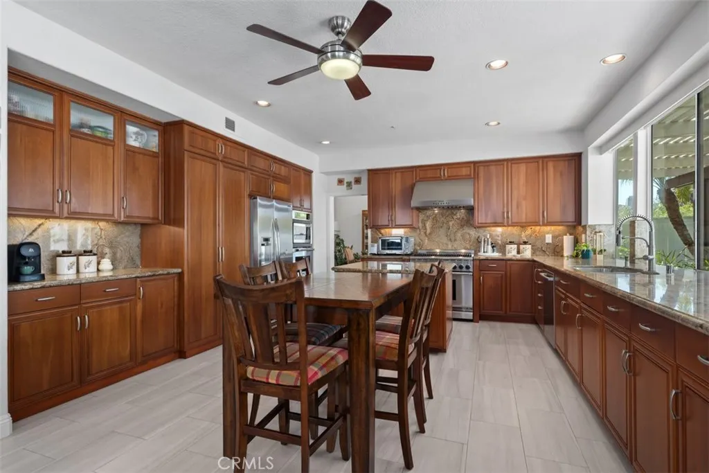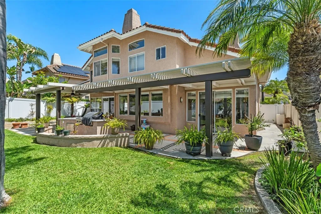 Welcome to this beautiful and spacious Flora Vista 4-bedroom, 3-bath plus office home in San Clemente's sought after Forster Ranch area with high ceilings and a bright airy feel. Enjoy wood floors in the entry, living and dining rooms; and, tile floors in the kitchen and family room. The kitchen has granite countertops, an island, a Thermador 6-burner range plus a built-in microwave/single oven combo and rollout shelves for your convenience. The downstairs includes an office/den, full bathroom and laundry room. The upstairs offers a primary suite with a large bathroom featuring separate tub, shower, fireplace and walk-in closet, 3-bedrooms and a full bathroom. The backyard includes a covered patio with a built-in barbecue and owned Solar panels on the roof. Bright, sunny and thoughtfully designed throughout, this home offers a versatile layout and a seamless balance of comfort, functionality and style.