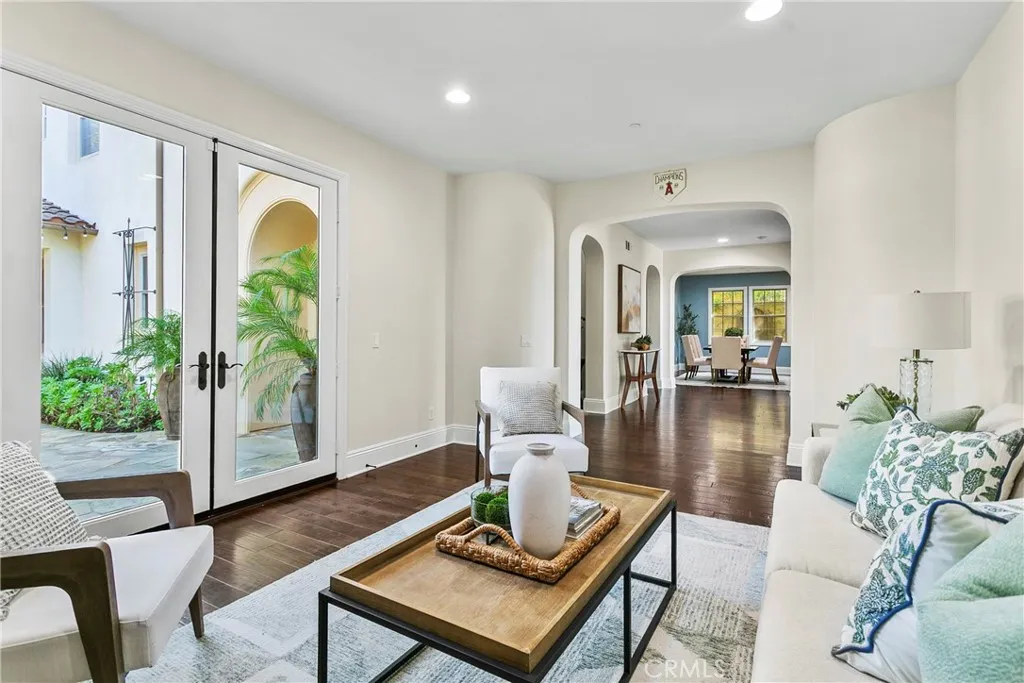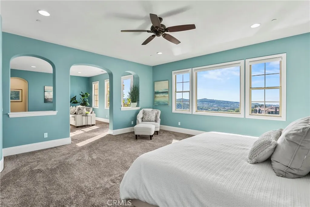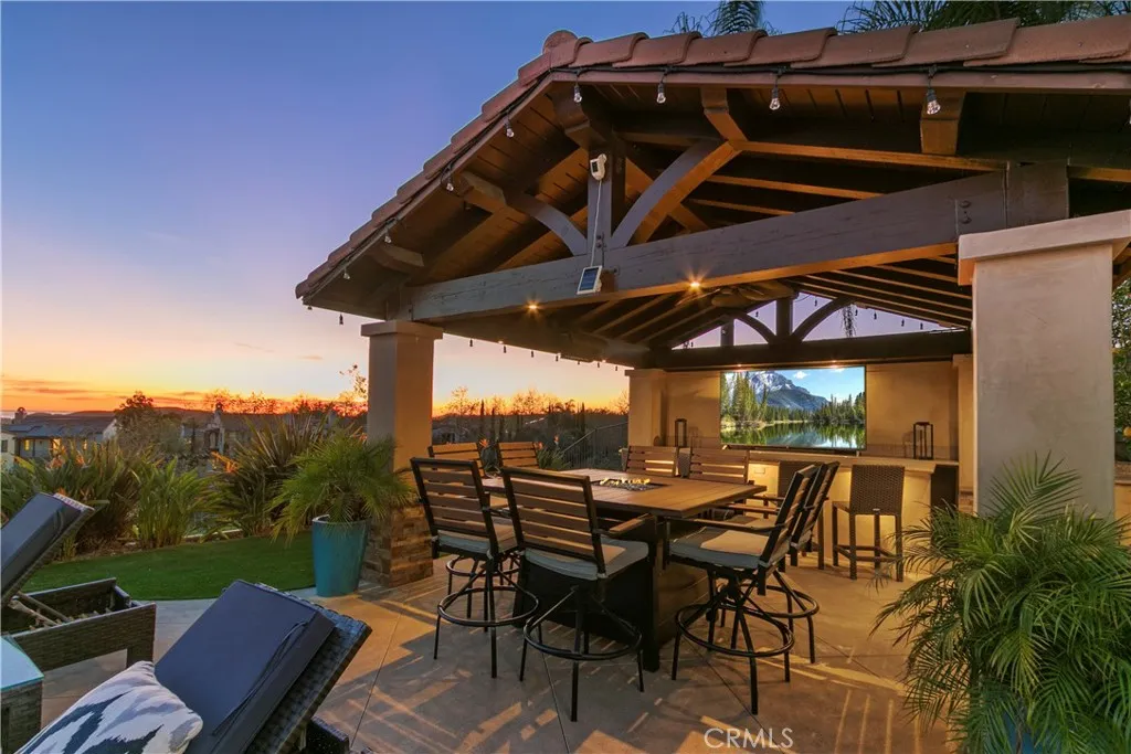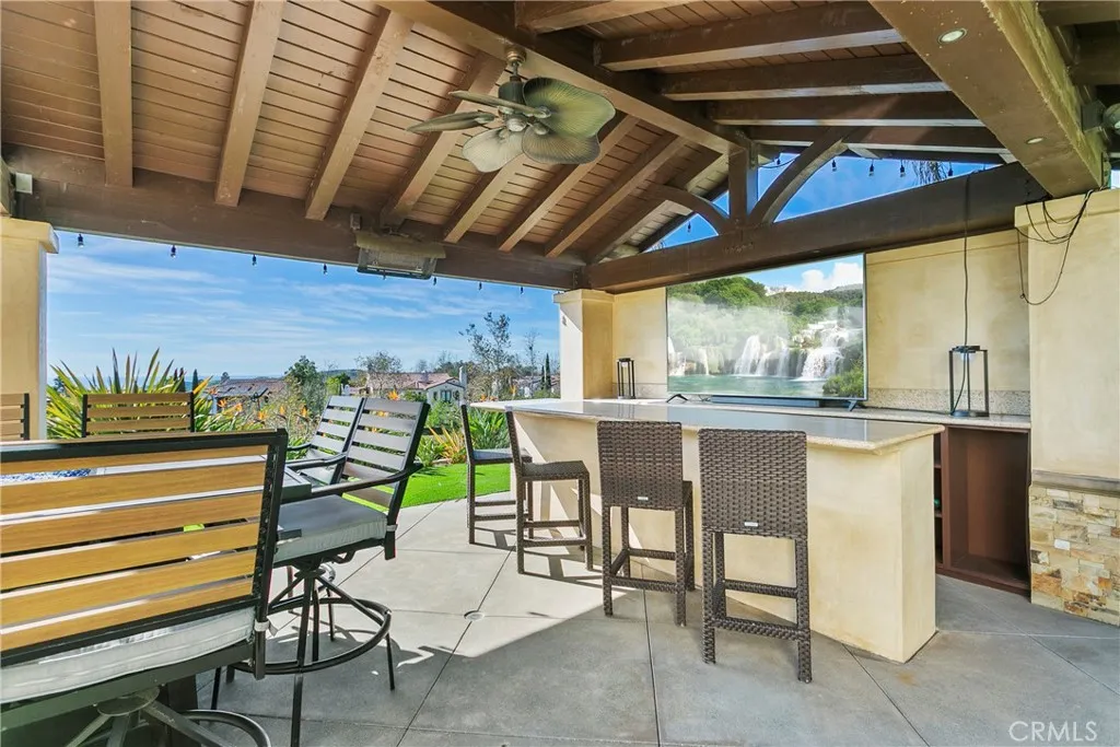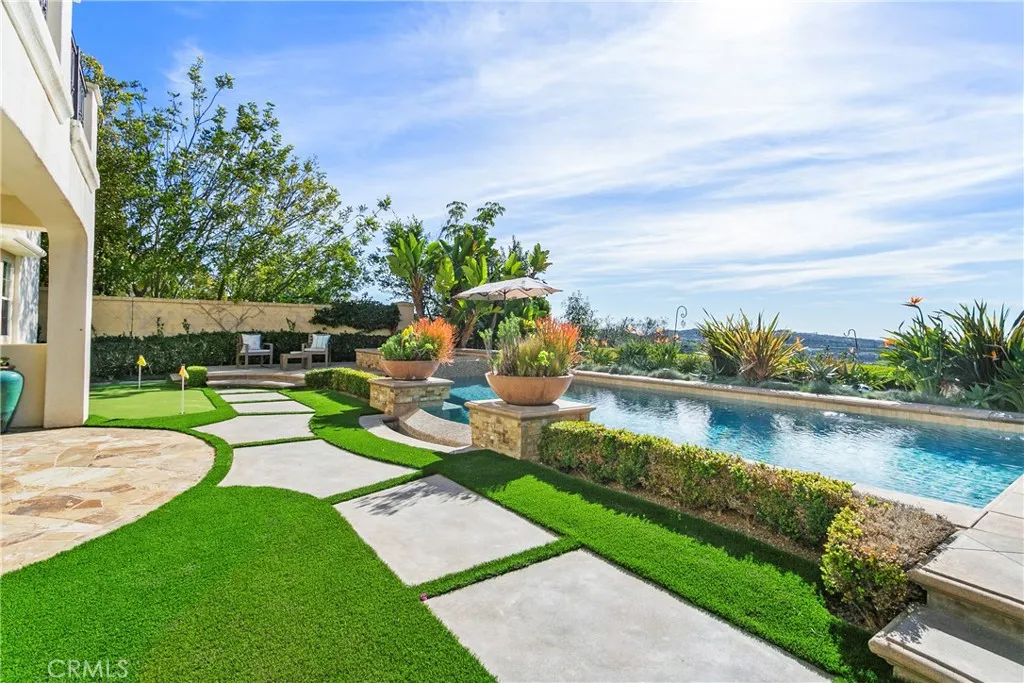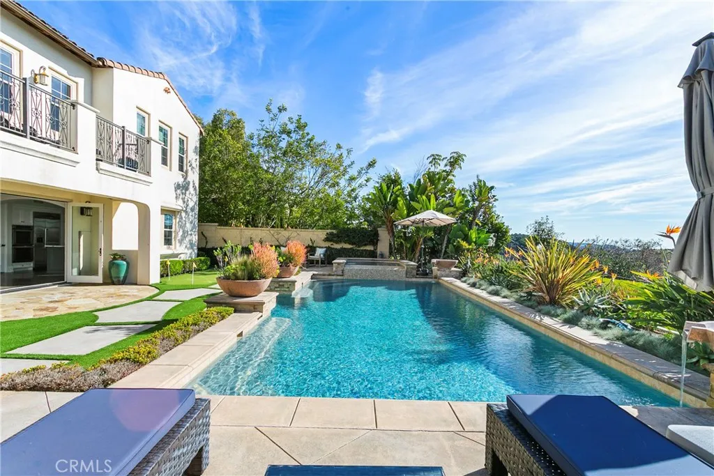 Welcome to Lucia Altura, the most exclusive enclave in all of Talega. Set behind gates, on a quarter-acre lot, this exceptional estate offers panoramic ocean, city lights, and sunset views. A private entry courtyard with fireplace welcomes you onto the property, and provides the perfect spot for cool, coastal evenings. Across the flagstone setting, the grand entrance hall sets the stage for an elegant layout with volumes of space and natural light, and a scale that works for small gatherings or large soirees. Hardwood flooring flows throughout most of the residence, connecting elegant formal living and dining spaces, with inviting family areas designed for everyday comfort. The main level includes a separate bedroom suite, library/study, dedicated wine room, and thoughtfully designed transition spaces with classic architectural elements. Upstairs, the five-star primary suite is the ultimate retreat. Set in its own wing, the private space offers a spacious bedroom, sitting area with ocean-view balcony, spa-inspired bath with deep soaking tub and separate shower, plus an oversized walk-in closet. The upper gallery and loft area offer an excellent transition to the additional bedroom suites, and a versatile bonus room which is currently used as a home theater. This residence is designed for seamless indoor-outdoor living and the rear grounds serve as a true extension of the home. An expansive outdoor pavilion anchors the space, complete with kitchen, bar, and big-screen TV, and creates the ultimate setting for year-round gatherings, game days, and glorious ocean-view sunsets.