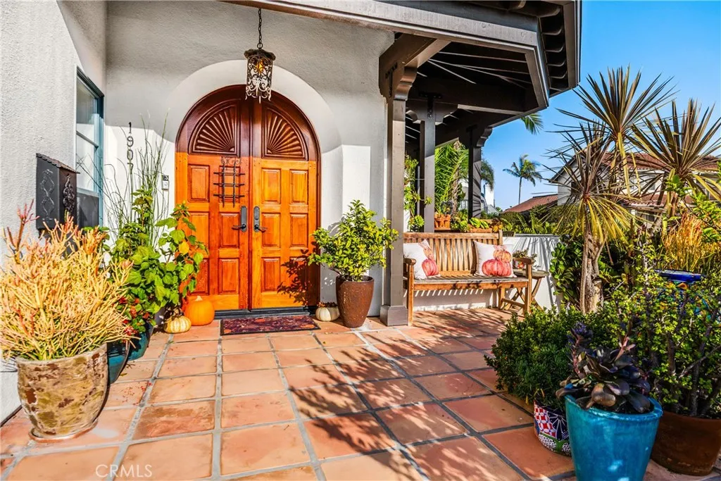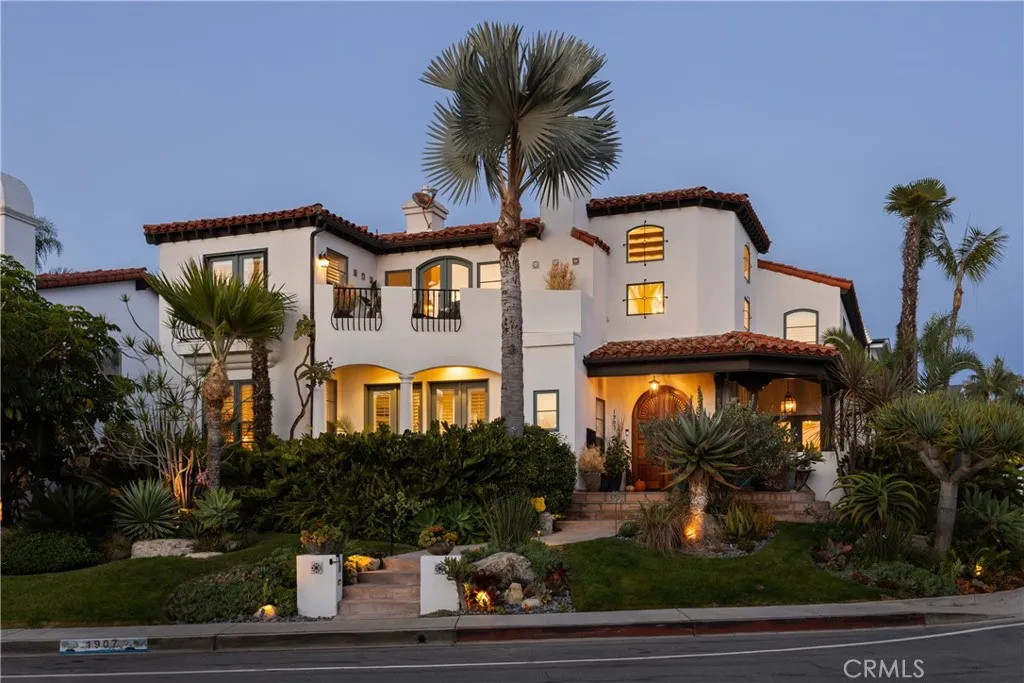 Positioned on Lasuens most coveted oceanfront street, this iconic Spanish revival is a showpiece residence. Embodying Ole Hansons Spanish Village by the Sea, this exquisite offering demands attention with its prominent corner lot location at locals favorite beach, Lost Winds. Dressed in exotic landscaping, the home truly catches the eye. A few properties from the beach access nearby, this home is the quintessential Southwest beach house, just steps from the sand. Featuring four spacious bedrooms (one on lower level) & three bathrooms, this is the ideal floor plan. The chefs kitchen combines functionality & style with new accent tile, rustic wood cabinetry, stone counters & bar seating, all with top-of-the-line stainless appliances. The kitchen is open to the dining, living & family rooms. Beautiful Spanish fireplaces warm these spaces. Ornate beamed ceilings exaggerate the ascending ceilings in the family room. Spanish tile enhances the stairwell, kitchen backsplash & fireplaces, adding texture & stylish detail throughout. The ocean-view primary suite is simply amazing. Featuring vaulted ceilings, fireplace with reclaimed mantle, dual walk-in closets, a newly-remodeled en-suite bathroom, its beyond comfortable. Recently reinvented, the bathroom offers all-new tile, shower enclosure, vanities, fixtures, & stand-alone tub. Through the arched French doors, an ocean-view deck captures views of seal rock, vibrant sunsets, Catalina & the crisp horizon. Also remodeled in Spanish fashion with stylish finishes, the upper guest bath services two generous guest bedrooms with walk-in c