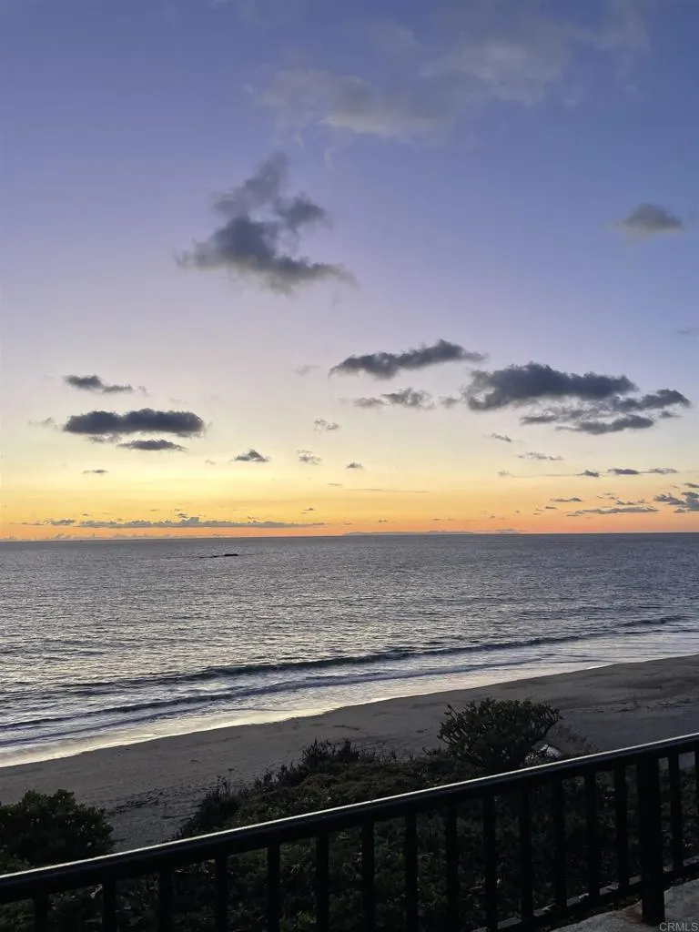 Perched right over the beach with spectacular, unobstructed views of the Pacific Ocean, Catalina Island and San Clemente Pier, this condominium offers access to Calafia Beach and the San Clemente Pedestrian Beach Trail leading to the Pier, restaurants, shops and more. This generously sized two-bedroom condominium is one of just nine residences within the exclusive Sea Point Villas community. Experience stunning sunsets from the living room, by the fireplace, or from the primary bedroom and bathroom on the upper level. The second upstairs bedroom includes a bathroom with a walk-in shower. The open floor plan offers flexibility with two options off the bright kitchen for dining, den or office. Laundry hook-up is conveniently located in the upstairs hallway. This condo includes a stairwell skylight to bring in natural light and two balconies to maximize enjoyment of the ocean views and breezes. Behind the gate a spacious two-car garage includes a storage closet and work bench. This residence is ideally located to experience everything this special coastal city has to offer.