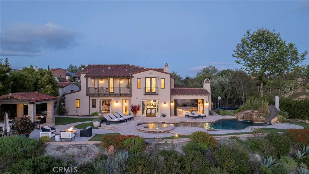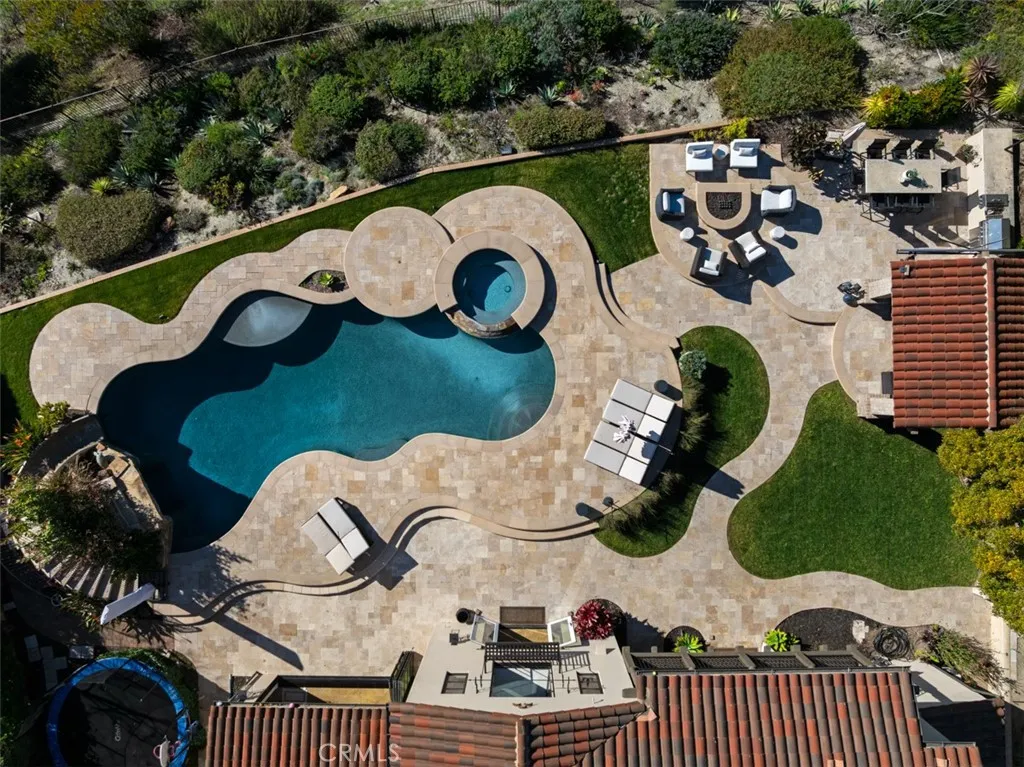 A rare masterpiece perched above the Pacific, this extraordinary estate commands unparalleled panoramic ocean, coastline, and canyon views from one of the most coveted addresses in San Clemente. Set on a private, pie-shaped lot along a premier cul-de-sac within Talega's exclusive gated Lucia enclave, with private park access and beaches just minutes away, this is a once-in-a-generation opportunity to own over 6,000 square feet of architectural grandeur where every room is a celebration of light, space, and vista. A soaring, circular foyer sets the tone, with Brazilian marble floors flowing through gracious entertaining spaces. The formal dining room is served by a temperature-controlled 1,000-bottle wine cellar and a bespoke speakeasy bar. In the great room, vaulted open-beamed ceilings and fireplace open to a reimagined gourmet kitchen featuring a dramatic 17-foot quartz island, Sub-Zero and Thermador appliances, and eat-in dining space. Expansive 15-foot LaCantina doors dissolve the boundary between indoors and out, drawing the eye across endless ocean views and a beautifully remodeled courtyard. A main-level suite with private exterior access is the perfect option for multi-generational living, a second primary suite, or luxurious guest quarters. Dual laundry rooms bring convenience to every floor. Upstairs, four bedroom suites offer private baths and custom closets. The primary suite is a sanctuary, featuring an exclusive view deck, fireplace retreat, dual walk-in closets, and a spa-like bath with floor-to-ceiling quartz rainfall shower. An office with loggia and bonus