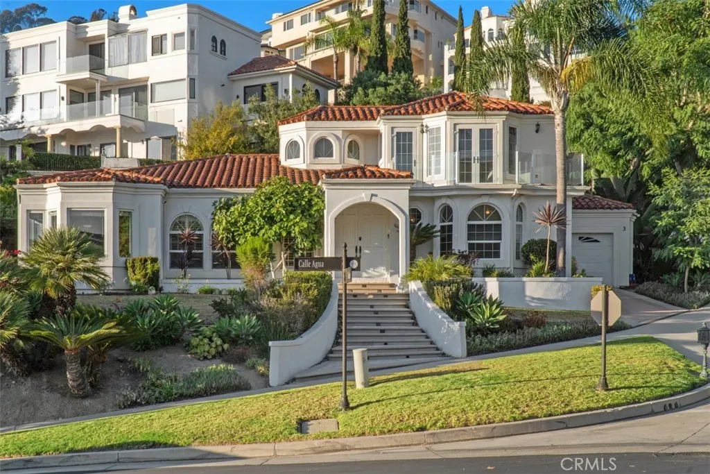 Nestled within the exclusive guard-gated enclave of Sea Pointe Estates in San Clemente, this private custom residence offers a rare blend of timeless Mediterranean design, versatile living spaces, and breathtaking coastal vistas. The expansive open-concept floor plan showcases 4 bedrooms and 3.5 baths, including two primary suites thoughtfully designed for comfort and flexibilityone conveniently located on the main floor and another upstairs capturing sweeping ocean, Catalina Island, Dana Point Harbor, and sunset views. Two additional bedrooms on the main level provide comfort for family or guests. Upon entry, soaring ceilings and an abundance of natural light set the stage for seamless indoor-outdoor living. The formal living and dining areas flow effortlessly together, creating an inviting atmosphere for gatherings. A generously sized family room and chef-inspired kitchen, complete with panoramic window views, make everyday living feel extraordinary. The upstairs primary suite is a private retreat featuring an oversized layout, dual-sided fireplace, luxurious soaking tub, and a view deck perfect for enjoying San Clementes stunning sunsets. Outdoors, a Mediterranean-style faade frames ocean views, while a shaded fountain patio sets the tone for dining al fresco. A spacious entertaining casita with kitchenette, bath, and shower offers additional versatility for hosting or extended stays. A three-car garage provides ample space for the car enthusiast. Residents of Sea Pointe Estates enjoy resort-style amenities including a pool and spa, tennis courts, clubhouse, and fitness