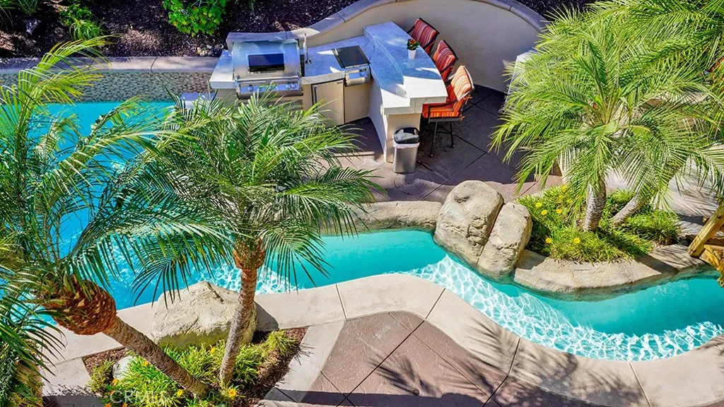 Exquisite Resort-Style Home in Talegas Coveted Montellano Tract. Pride of ownership radiates throughout this stunning 5-bedroom, 4.5-bath, 4,423 sq. ft. home on an 11,325 sq. ft. lot. This two-story residence blends timeless elegance with modern resort-style living. A dual-step path framed by lush palms and landscaping leads to a gated courtyard with a built-in fireplace and seating area. Inside, the grand formal dining room overlooks the backyard, while the formal living room offers cozy carpet, a fireplace, and abundant natural light. Crown molding and light hardwood floors flow throughout the main level, creating an elegant, open feel. Downstairs features a stylish powder bath and a private ensuite bedroomperfect for guests or multigenerational living. The gourmet kitchen is the heart of the home, showcasing granite countertops, rich wood cabinetry, a Sub-Zero refrigerator, Viking double ovens, stovetop and hood, dual dishwashers, pantry and a large island with seating and open shelves. A separate breakfast nook complements a butlers pantry with a dedicated coffee/bar. The adjoining family room offers custom built-ins, fireplace, and shuttered windows overlooking the backyard, plus direct outdoor access. A generous laundry room with cabinetry, sink, and counters connects to the three-car garage with new epoxy flooring. Upstairs, elegant white patterned carpet flows throughout. The primary suite features a fireplace, private balcony with retractable awning, and a spa-inspired bath with dual vanities, soaking tub, walk-in shower, and remodeled his-and-hers custom closet. T
