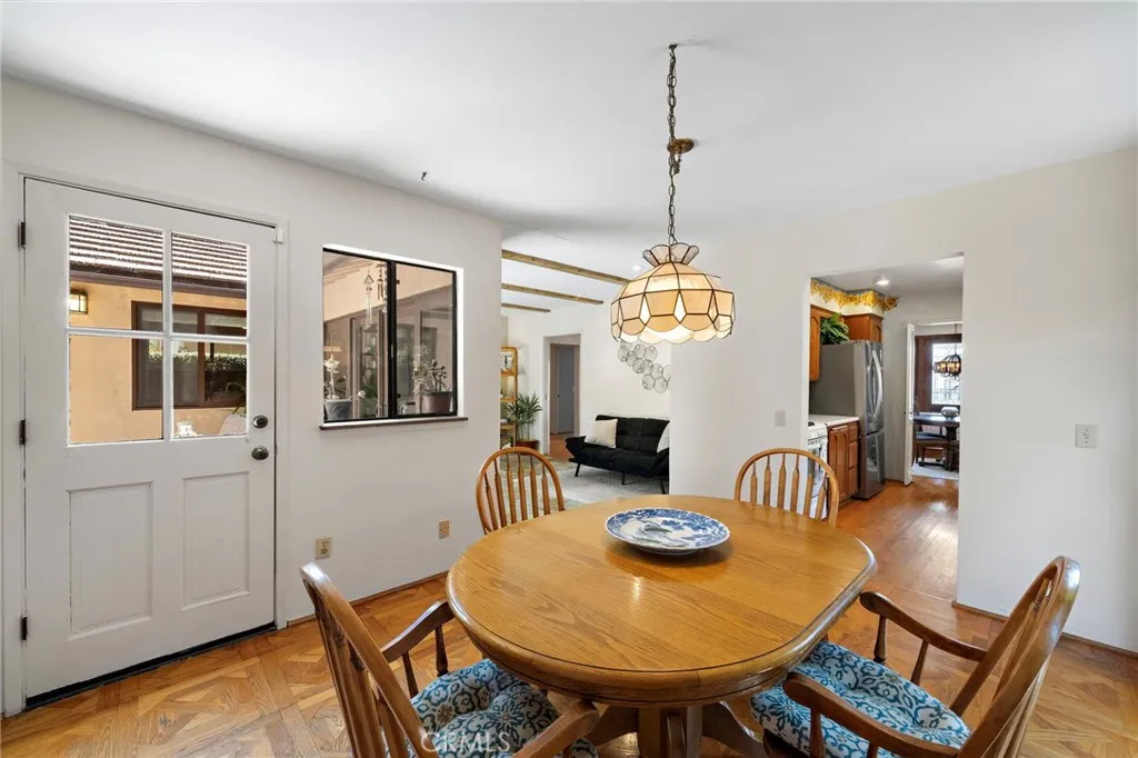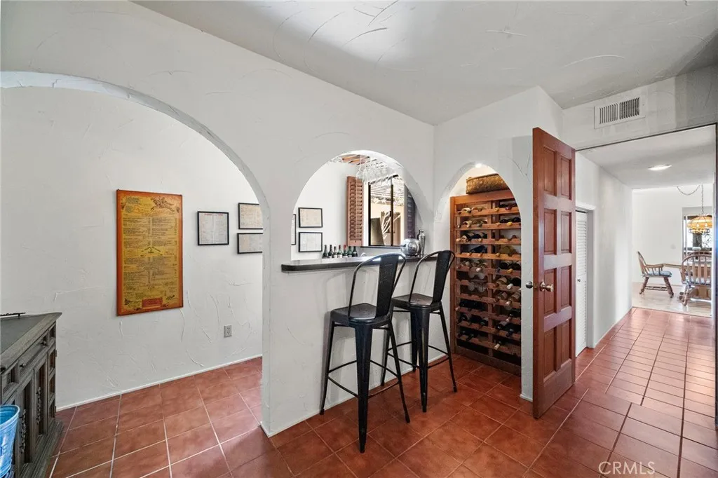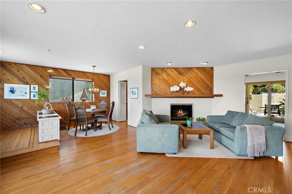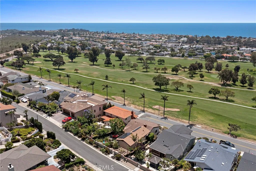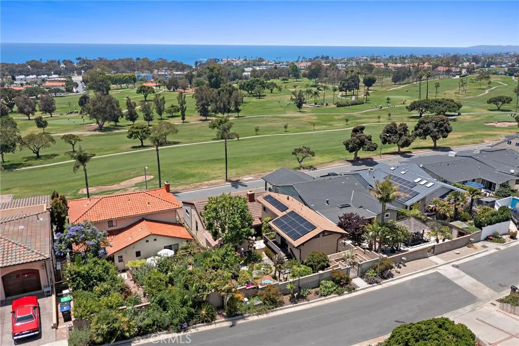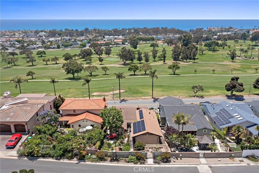 Welcome to your serene coastal retreat with a mid-century modern flair! Perfectly situated on a street to street lot overlooking the San Clemente Municipal Golf Course, this charming 3-bedroom + wine cellar/game room, 3-bathroom home offers a rare combination of privacy, character, and stunning panoramic ocean and golf course views. Step inside to discover warm wood finishes, an open-concept living and dining area, and a window bench perfectly positioned to capture breathtaking vistas of the ocean and lush green golf course. With natural light pouring in through your leaded glass double entry doors & expansive windows, the interior feels bright, airy, and welcoming. The kitchen and bathrooms retain their original charm with custom wood cabinetry and vintage tilework, creating a cozy, nostalgic feel that blends seamlessly with the modern coastal setting. Features include recessed lighting, wood burning fireplace, oak flooring, ceiling fans, separate dinette & family room with single light sliding doors creating an indoor/outdoor flow to your private courtyard. Property also has owned Solar panels. Two bedrooms on the main floor share the roomy hall bath with dual sinks & tub/shower. Additional bath is adjacent to the wine cellar/game room. Spacious upstairs primary suite highlighted with triangular accent windows, vaulted open beam ceilings, its own sliding door to elevated deck, walk-in closet, & private primary bath that features dual sinks, generous counter space, tub/shower, and a corner window with views. Relish in the many Zen outdoor areas of the backyard surrounded