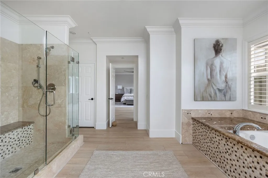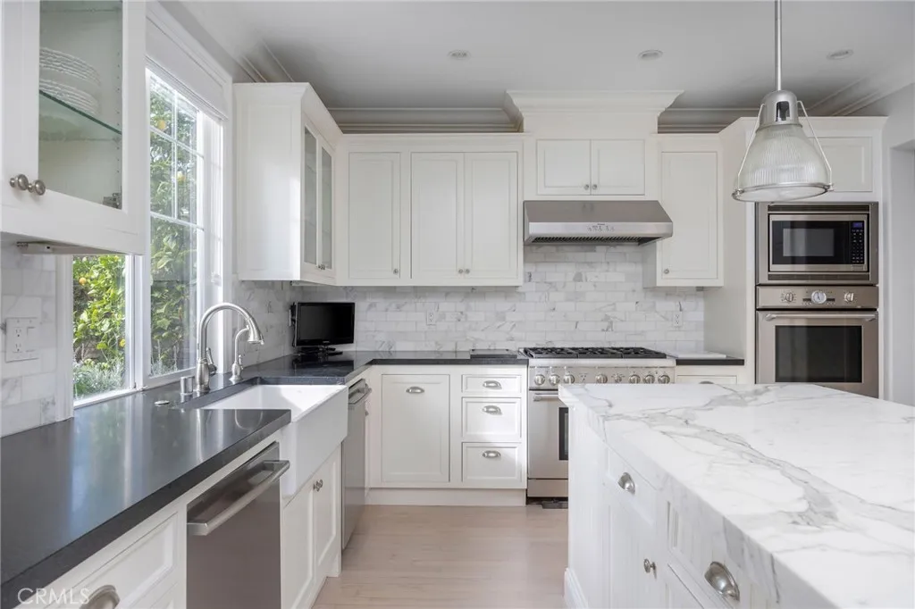 Beautiful Residence in Compass Pointe, Forster Highlands. Nestled on a quiet, single-loaded street in the serene Compass Pointe community, this stunning home offers approximately 3,600 sq. ft. of bright, spacious living. Designed for comfort and style, it features five bedrooms, a large bonus room, and four bathrooms in a versatile, family-friendly layout. The entry welcomes you with fresh landscaping, a charming front porch shaded by an olive tree, and peaceful hill views. Inside, maple wood floors and an open-concept design create a seamless flow between living spaces. The remodeled gourmet kitchen showcases white cabinetry, dual pantries, a marble backsplash, black granite countertops, and a nine-foot Carrera gold marble island with seating and storage. High-end Thermador appliancesincluding dual ovens, a built-in refrigerator, microwave, warming drawer, and two Bosch dishwasherscomplete this impressive space. The kitchen opens to a bright living room with a gas fireplace and casual dining nook, while the formal dining room opens to a private courtyard through French doors. A spacious family room filled with natural light features a second fireplace, perfect for gatherings or relaxation. A downstairs bedroom and nearby bath with a walk-in shower provide an ideal setup for guests or multigenerational living. Upstairs, the primary suite serves as a private retreat with a lounge area, soaking tub, walk-in shower, dual sinks, walk-in closet, and private water closet. Three additional bedrooms and a large bonus room with sliding barn doors complete the upper level, which also