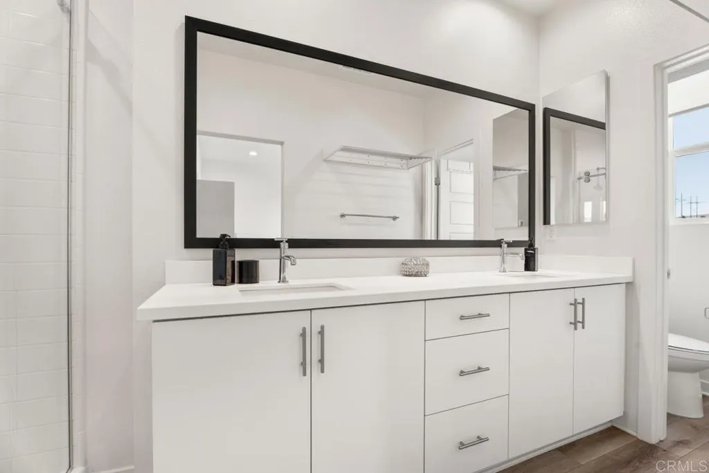 Ask about available seller credit options! May be applied toward a rate buy-down, closing costs, or other eligible buyer expenses, subject to terms and an acceptable offer. This better-than-new, highly upgraded home features PAID solar, sweeping mountain views, and designer finishes throughout, and access to award winning San Diego schools. Offered furnished or unfurnished, this home is turnkey and effortless, simply bring your suitcase and start living. Located in the established Atwood neighborhood of 3Roots, San Diegos revolutionary welltopia community built around health, sustainability, and connection. This upgraded 3-bedroom, 3.5-bath home offers sweeping mountain views from one of the communitys most private and peaceful locations tucked away from busy streets yet moments from 3Roots resort-style amenities. Step inside and youll feel the difference. The open-concept layout features luxury oak wood flooring throughout, built-in smart home features, and designer upgrades that elevate every room. A chef-inspired kitchen with high-end appliances, a temperature-controlled reverse osmosis water system, and owned solar make this home both beautiful and efficient. Upstairs, retreat to two serene bedrooms, each with its own en-suite bath with beautiful views from the primary bedroom. On the entry level, youll find a private bedroom and full bath, perfect for guests or a home office, along with a meticulously upgraded garage featuring Tesla chargers, epoxy flooring, custom overhead storage, and integrated internet wiring, ideal for todays connected and active lifestyle. This h
