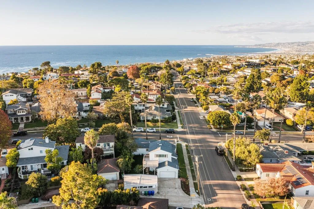 Welcome to Coastal Living in Sunset Cliffs. This beautifully renovated 4-bedroom, 4-bath residence spans 2,734 square feet and sits on a large corner lot in one of Point Lomas most coveted beachside communities. Fully updated, the home blends timeless design with modern comfort, offering an elevated coastal lifestyle just moments from the surf and sand. Step through the front door and into an open-concept layout that showcases a stunning designer kitchen. Custom cabinetry, quartzite countertops, a large center island, brass accents, and premium appliances create a warm, refined space ideal for both cooking and gathering. Natural light fills the home, highlighting the smooth flow between the kitchen, dining, and living areas. The thoughtful layout includes a serene second-floor primary suite with its own private deck featuring incredible downtown and bay views. A perfect spot for morning coffee or sunset evenings. Each additional bedroom is generously sized and paired with beautifully finished bathrooms. The home has been upgraded throughout with new plumbing, updated electrical, all-new HVAC with central air and heat, new ducting, engineered wood flooring, and a refreshed open floor plan that enhances everyday living. Outside, the property offers a lush green backyard with new sod, mature trees, and thoughtfully designed spaces for relaxation. Flagstone steps lead to a new porch deck, creating an inviting atmosphere for outdoor dining, lounging, or entertaining. Located in the heart of Sunset Cliffs, this home puts you close to everything Point Loma offers, Liberty Station,