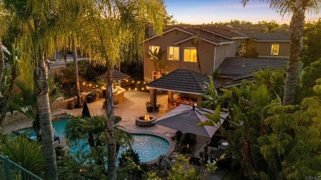 Step into this Stonebridge Estates home in Scripps Ranch and you'll automatically feel at peace. Professionally designed kitchen remodeled within the last year features top-of-the-line appliances. Owned solar. EV chargers. Full smartphone-enabled irrigation. Nest thermostats. The backyard is an entertaining oasis with pool, spa, bbq area, shade, and fire pit. And way too many mature fruit trees and organic vegetables to list. You'll have to come see for yourself. 5 bedrooms. 4.5 baths. 3-car garage. Full ensuite bedroom and powder room on first level. Corner lot. Poway schools. Floor plan in photos. Come have a look in person!