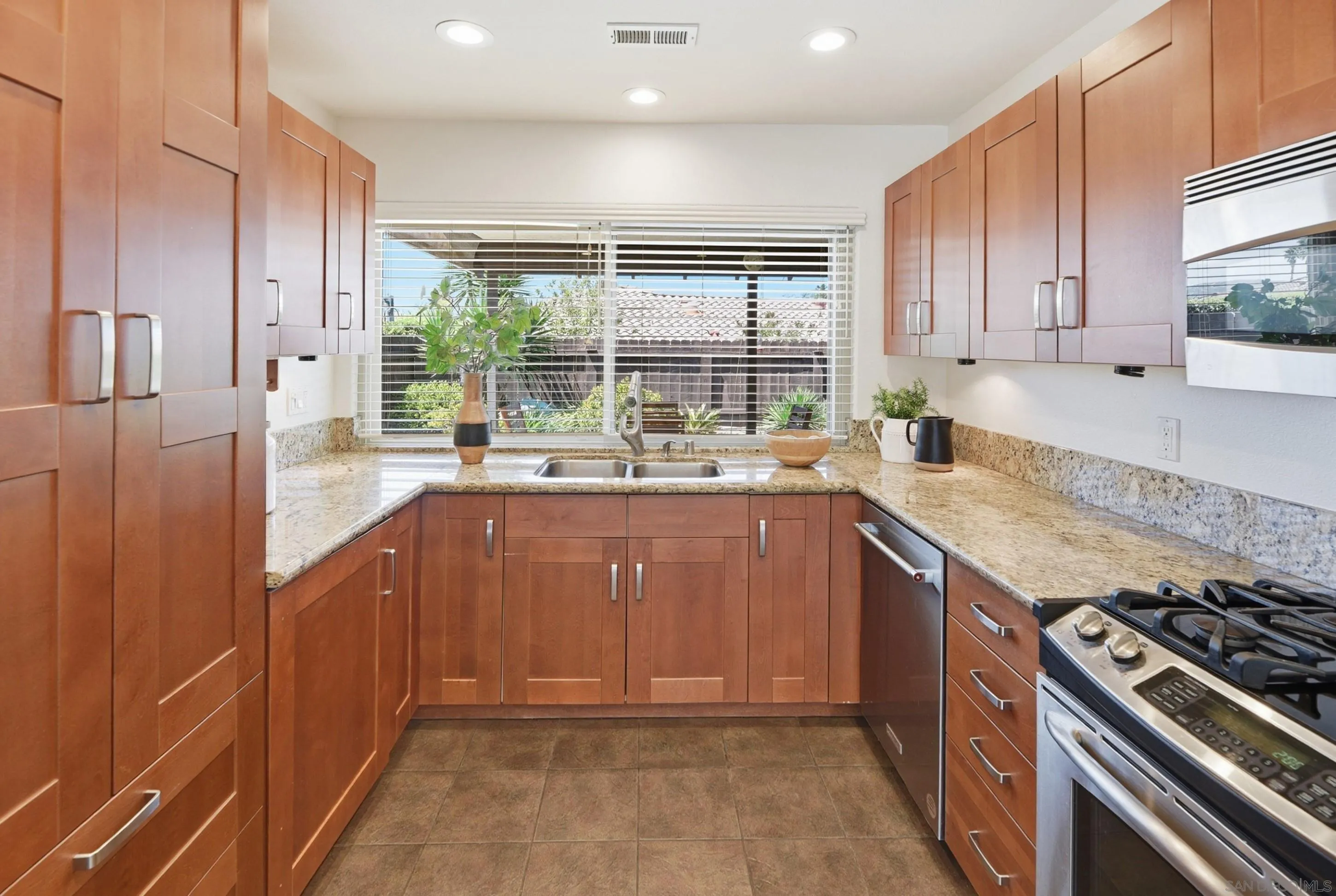 Welcome to 12650 Opimo Drive, a beautifully updated single-story home on a desirable corner lot in the sought-after 55+ community of Seven Oaks in Rancho Bernardo. Featuring a popular, open and functional floorplan, this move-in ready residence offers both comfort and style. The upgraded kitchen boasts granite countertops, rich wood cabinetry with ample storage, stainless steel appliances, and custom tile accents, flowing seamlessly into the bright living and dining areas—perfect for everyday living and entertaining. The spacious primary bedroom is filled with natural light from oversized windows, while the generous second bedroom offers flexibility for guests, an office, or hobbies. Step outside to enjoy a private side yard and a large covered patio, ideal for relaxing or hosting gatherings. The low-maintenance yard provides just the right amount of outdoor space, complete with an above-ground spa for unwinding under the stars. A two-car garage adds convenience. As part of the vibrant Seven Oaks community, residents enjoy access to an array of amenities including a pool, spa, pickleball courts, fitness center, and a wide variety of social activities designed to keep you active and engaged. Conveniently located near shopping, golf courses, tennis, dining, and freeway access, this home offers the perfect blend of tranquility and accessibility. Discover the lifestyle you’ve been waiting for—comfort, community, and effortless Southern California living await at 12650 Opimo Drive!
