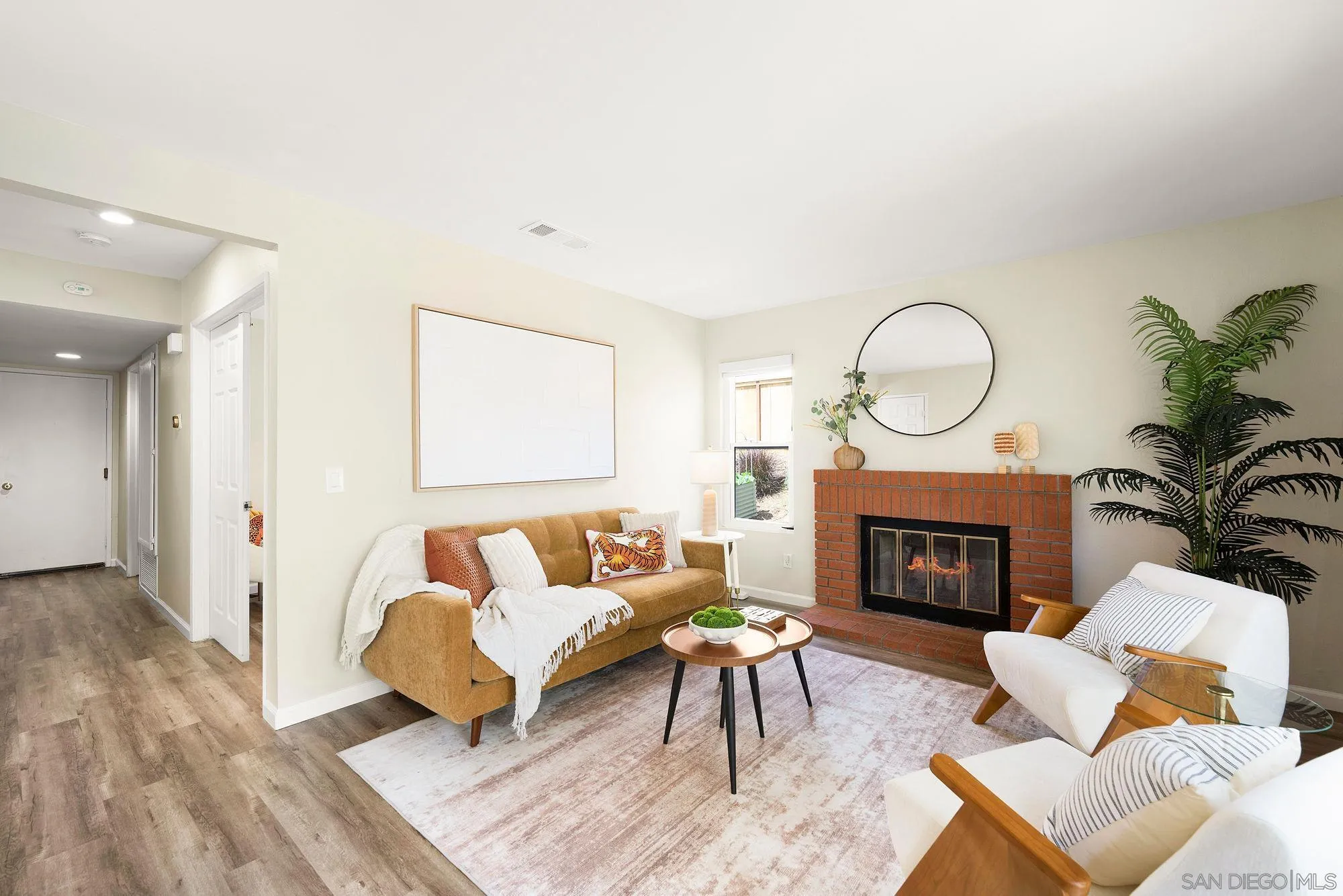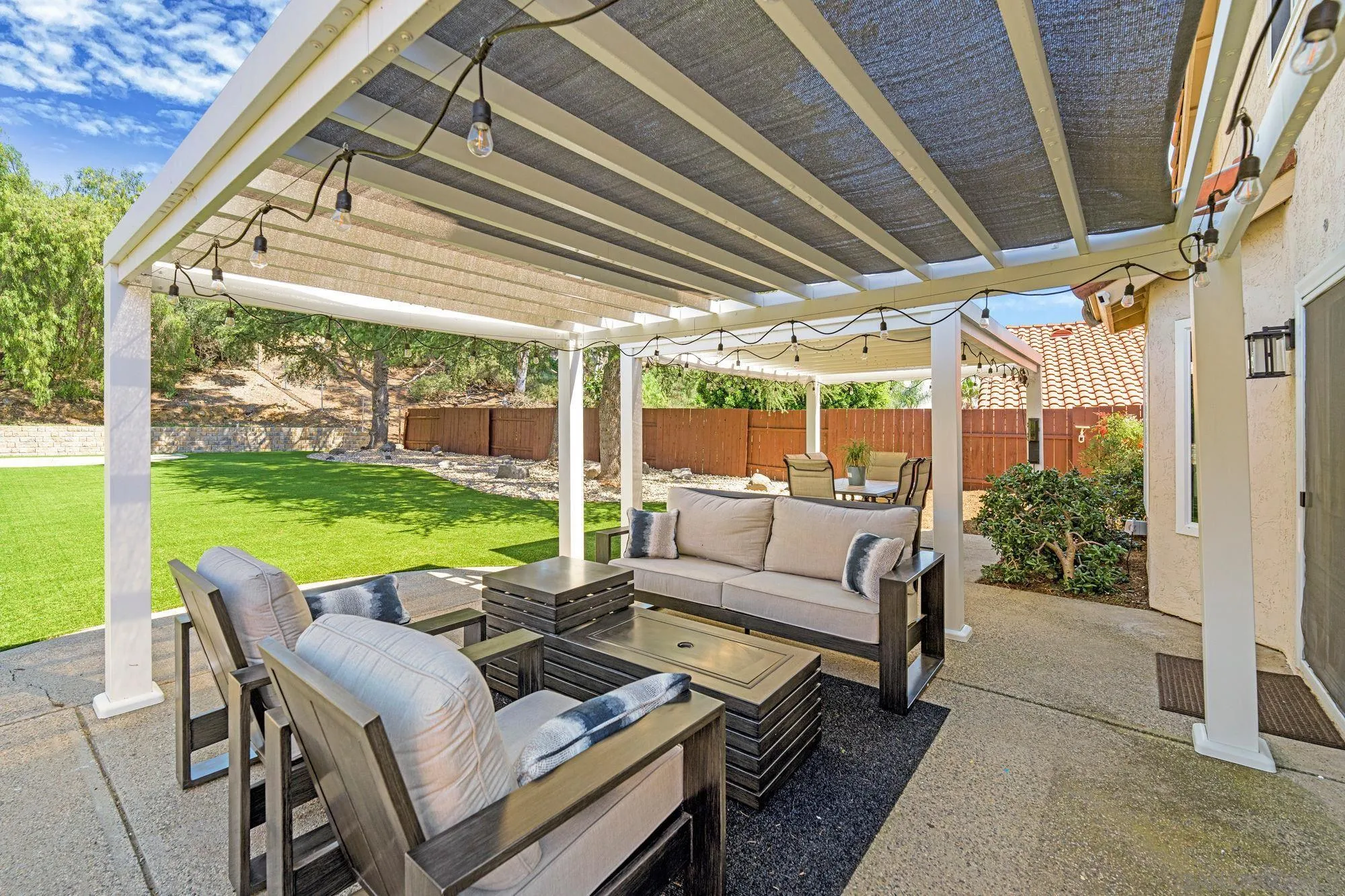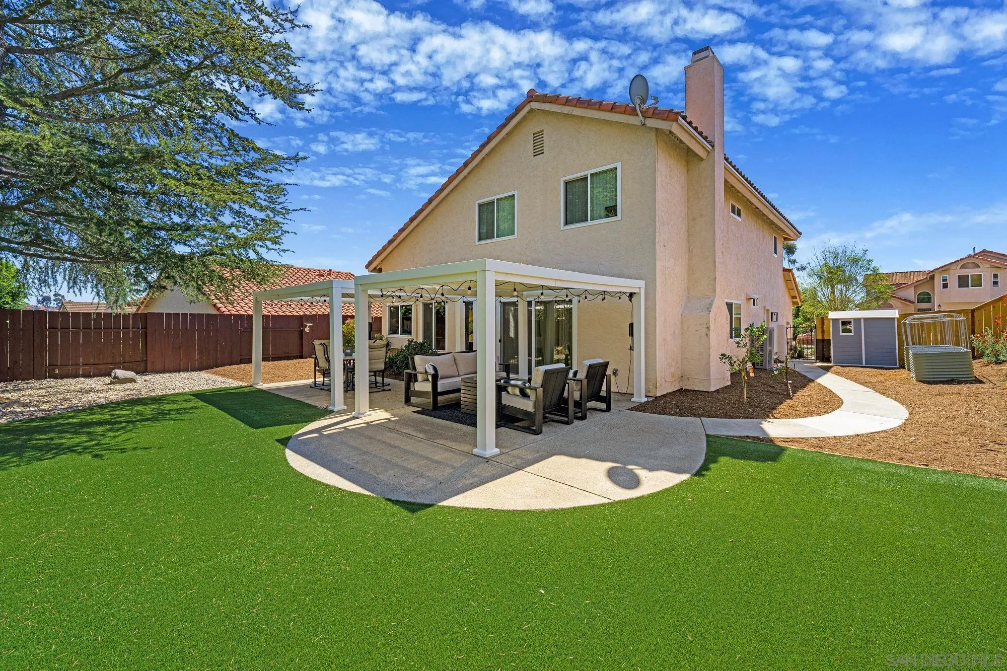 This Park Village home is beautifully set on one of the community’s largest usable lots with a flexible floor plan and ideal south/north exposure. The home features 4 bedrooms and 3 bathrooms, including 1 bedroom and bathroom on the ground floor, perfect for guests. The formal living room showcases vaulted ceilings, while the kitchen flows seamlessly into the family room with a cozy fireplace. An interior laundry closet adds everyday convenience. Recent upgrades include custom closet system in primary bedroom and updated light fixtures. Newer windows, AC, furnace, and water heater - all less than three years old. Enjoy a large backyard with endless possibilities, whether hosting gatherings, adding a pool, creating a garden retreat, or simply relaxing and enjoying the extra space. Located in the highly desirable Park Village community within the Poway Unified School District, this home provides easy access to freeway, shopping and hiking trails. A perfect blend of comfort, functionality, and location, all with no HOA fees!