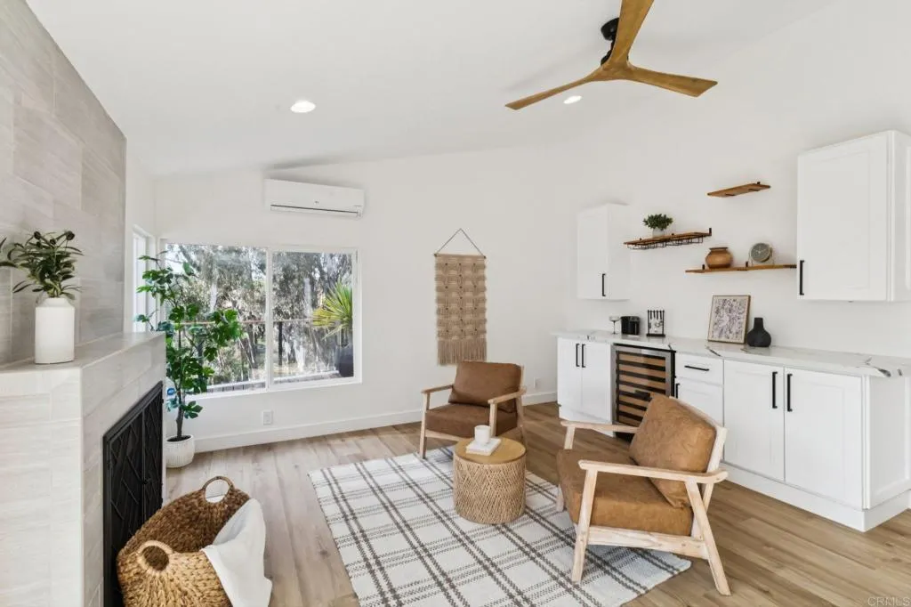 Located in the heart of Rancho Peasquitos, this single-story modern ranch home is tucked away on a quiet cul-de-sac and set on an expansive 0.57-acre lot with sweeping canyon and sunset views. Offering privacy, space, and effortless indoor-outdoor flow, this beautifully remodeled residence blends comfort with contemporary style. Thoughtfully upgraded throughout, the home features luxury vinyl plank flooring, fresh interior and exterior paint, recessed lighting, and a bright open-concept layout designed for modern living. The designer kitchen showcases quartz countertops, soft-close cabinetry, a generous island, and upgraded dark stainless appliances seamlessly connecting to the family room for elevated everyday living and effortless entertaining. Bathrooms have been tastefully updated with quartz surfaces and refined fixtures, enhancing the homes clean, sophisticated aesthetic. The true showpiece is the backyard, an entertainers dream framed by breathtaking canyon and valley views. Enjoy vibrant sunsets, designer landscaping, and expansive grounds that provide both serenity and opportunity. With ample space for gatherings, recreation, or potential future expansion, this outdoor setting is truly rare. Additional highlights include an extra finished interior attic storage area, a shed, full-house water filtration system, and modern energy efficiency throughout. Also equipped with a Tesla solar system, no HOA, and located within the highly acclaimed Poway Unified School District. Walking distance to Sundance Elementary, Mesa Verde Middle, and Westview High School. A private re