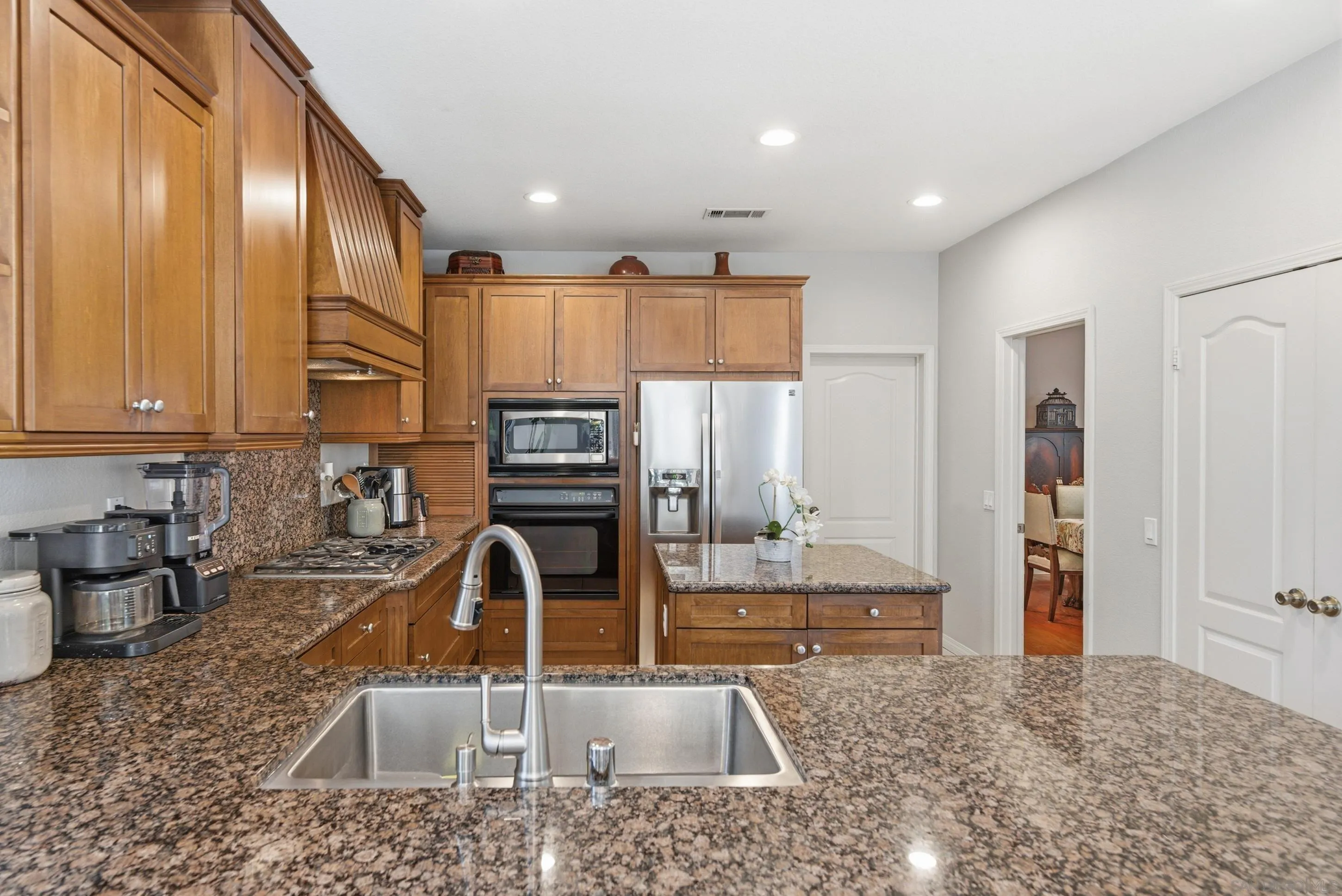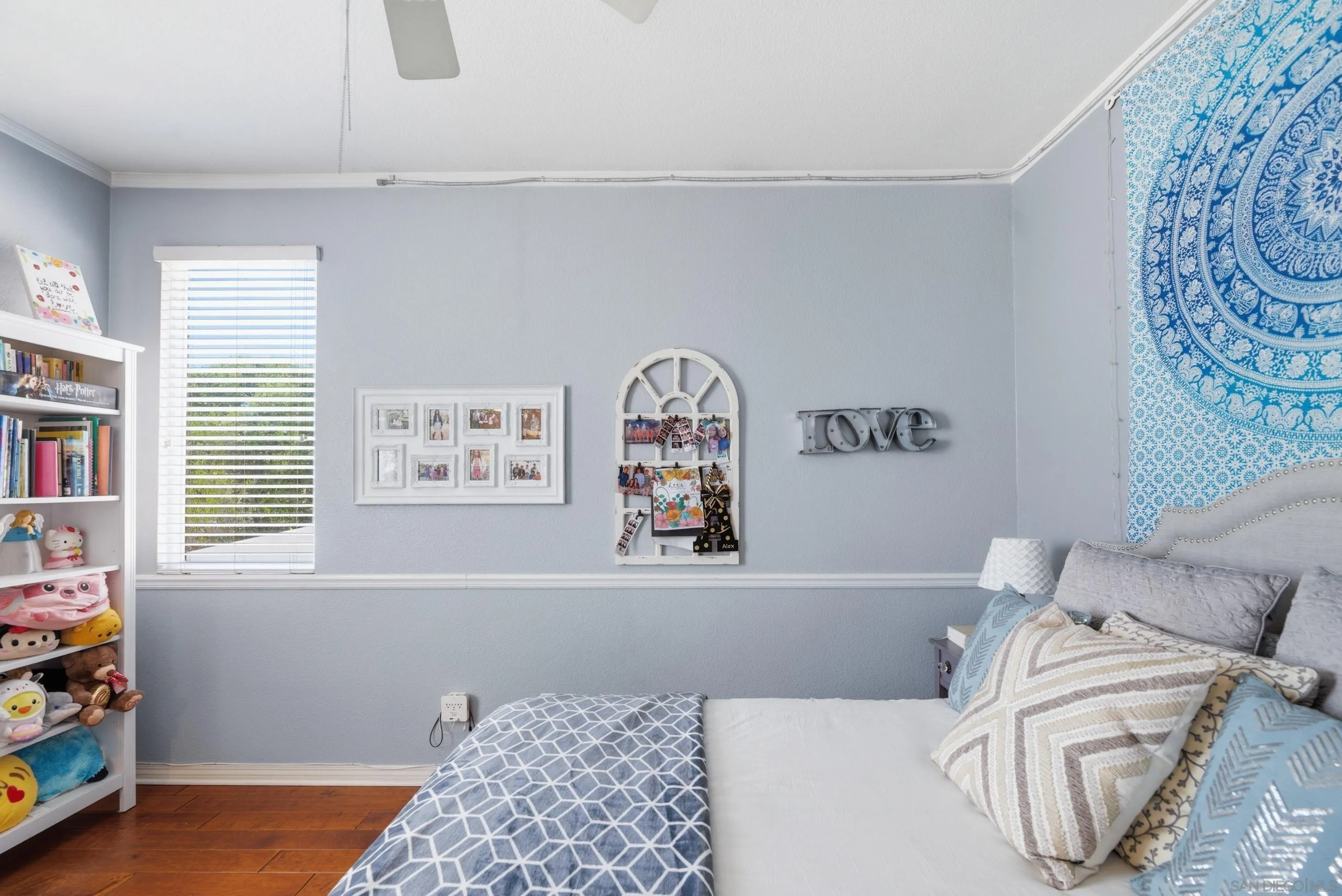 This beautifully designed home in Torrey Highlands within Rancho Peñasquitos offers 2,666 square feet of spacious living, featuring 4 bedrooms and 3 full baths, including a convenient bedroom on the entry level. The open and airy layout is enhanced by vaulted ceilings, abundant natural light, owned solar panels, Tesla charger, elegant wood flooring, and a huge upstairs loft perfect for flexible living. The kitchen is a standout with granite countertops, a 5-burner gas cooktop, and a large pantry, while the dual fireplace adds warmth and charm to multiple living spaces. The primary suite includes dual vanities, a separate shower, and a large soaking tub for a spa-like retreat. Outside, enjoy a gated large courtyard, a 3-car garage, and a private backyard designed for entertaining, complete with a swimming pool and built-in BBQ.