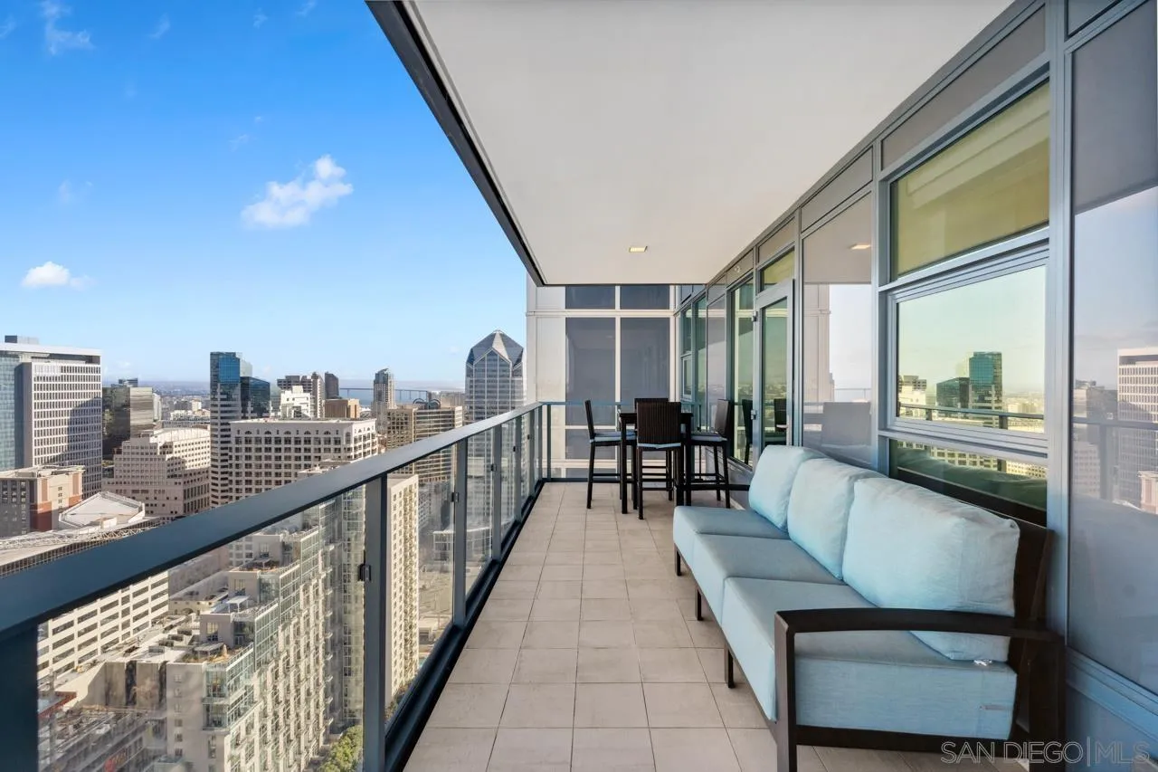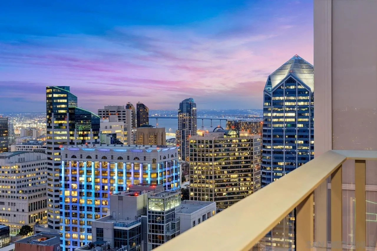 The 35th floor of the iconic Savina building is a perspective like no other. This exquisite condo offers a rare opportunity to experience luxury living at its finest. One of only eight penthouses in the renowned 36-floor building. Floor-to-ceiling windows frame sweeping views of the bay, ocean, city skyline, inland mountains, and beyond. The sleek kitchen is appointed with exceptional Gaggenau appliances and is enveloped by mesmerizing views. The thoughtfully designed layout features two private balconies, an open-concept living and dining space, and a spacious primary suite with a luxurious bathroom and a custom walk-in closet. Additional highlights include a dedicated laundry room, automated blinds, contemporary finishes, three assigned parking spaces, and a large storage unit. The residence has been meticulously cared for and only occasionally occupied. This is high-rise living elevated to extraordinary heights. Built in 2019 and one of downtown San Diego's premier addresses, Savina redefines modern sophistication with its exceptional amenities and unbeatable location. Residents enjoy a stunning pool and spa terrace, state-of-the-art fitness center, yoga studio, pet retreat, dog washing station, bike repair stands, and inviting social lounges. Just outside, vibrant Little Italy and the waterfront offer a dynamic mix of world-class dining, boutique shopping, outdoor activities, scenic sights, and cultural attractions. Whether you're seeking a serene retreat or active urban lifestyle, this penthouse is your gateway to the very best of San Diego. Two photos virtually staged