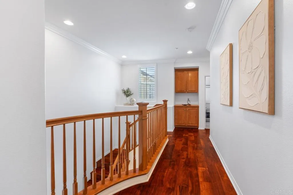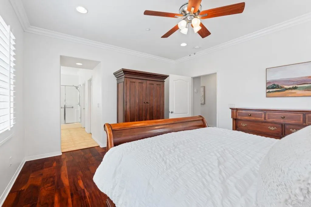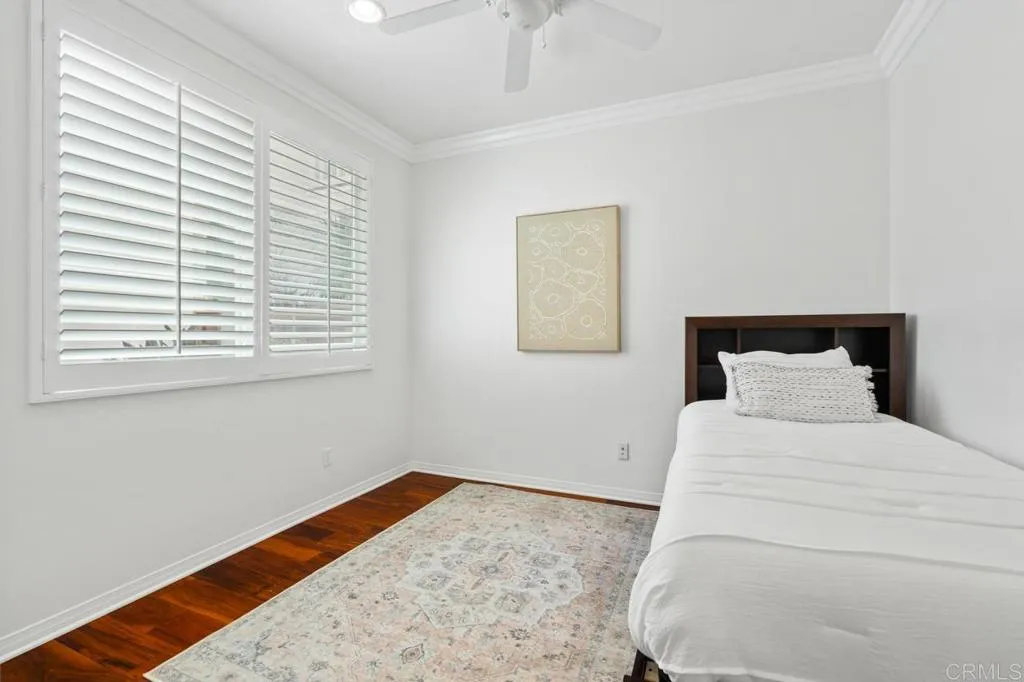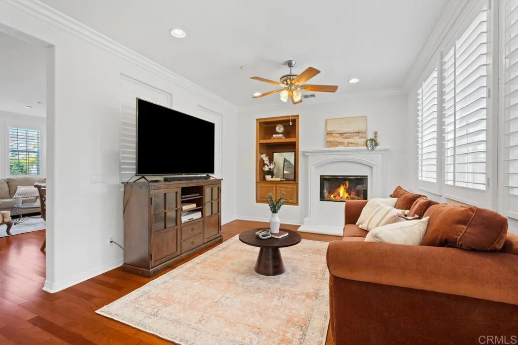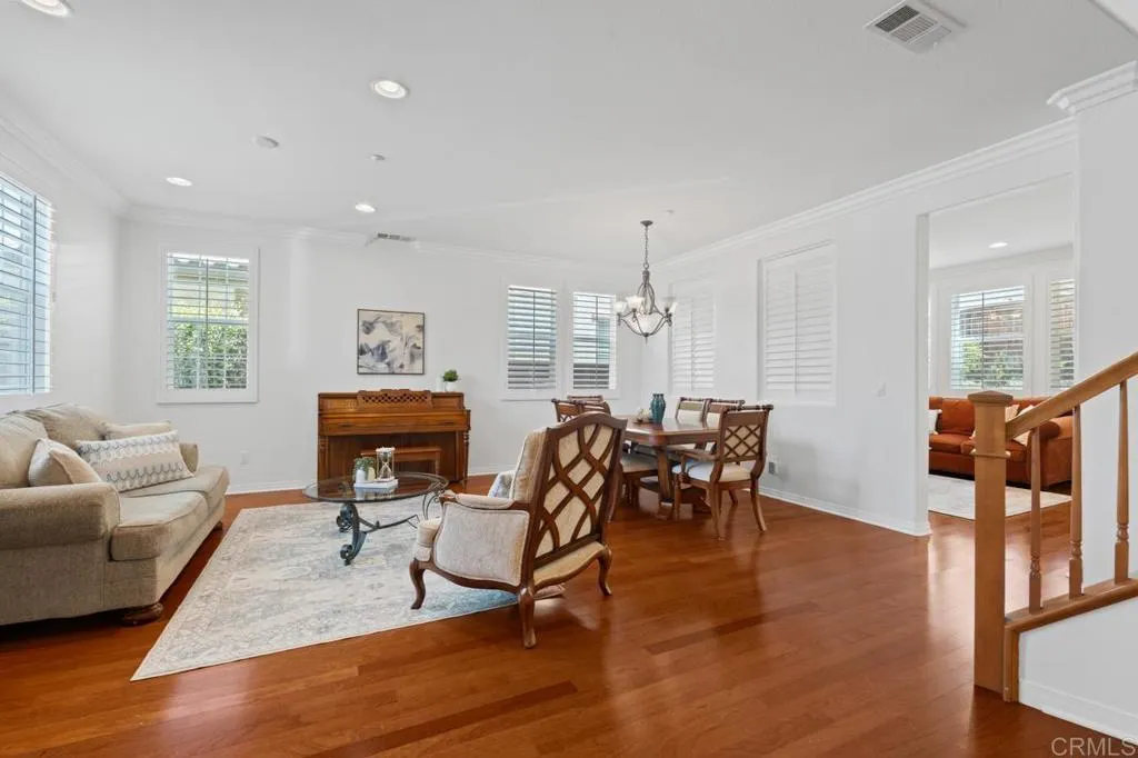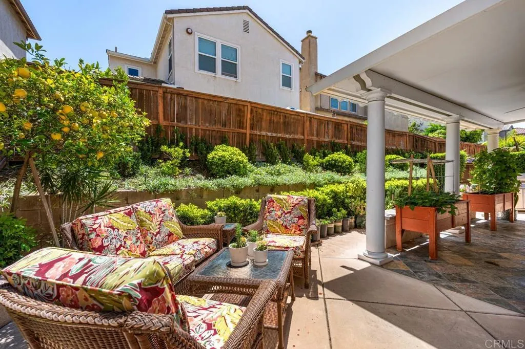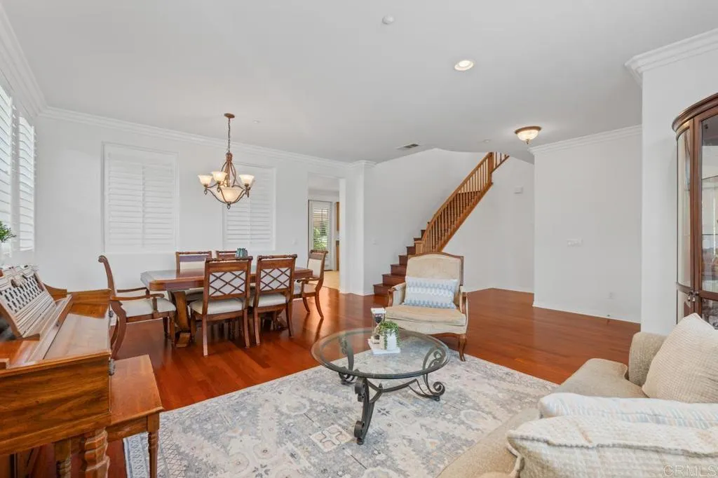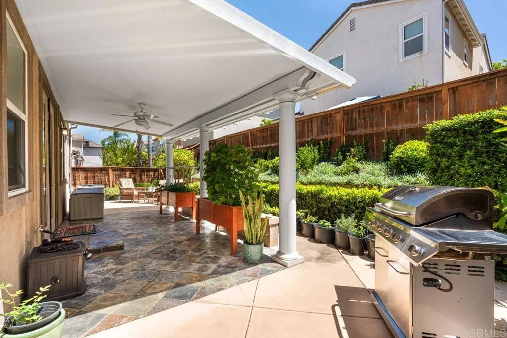 Beautifully maintained and ideally located within walking distance to top-rated schools, shopping, dining, parks, and more. Step inside to a spacious formal living and dining area with a well-designed floor plan that flows seamlessly into the kitchen, featuring a serving island with room for casual dining and opening to the inviting family room. The first floor also offers a full bedroom and full bathroomperfect for guests or flexible living. Upstairs, youll find three additional bedrooms, two bathrooms, and a dedicated laundry room. One secondary bedroom features vaulted ceilings and charming dormer-style windows. The primary suite is privately situated at the back of the home and includes an ensuite bath with a walk-in shower. Enjoy the private backyard and garden under a fully covered patioideal for entertaining or relaxing. Located in the highly desirable 4S Ranch community, residents enjoy access to top-rated Poway Unified schools, beautiful parks, pools, scenic trails, and vibrant community events, all just minutes from shopping, dining, major tech hubs, and approximately 15 minutes to the beaches of Del Mar and Torrey Pines. This is more than a homeits the lifestyle youve been waiting for.