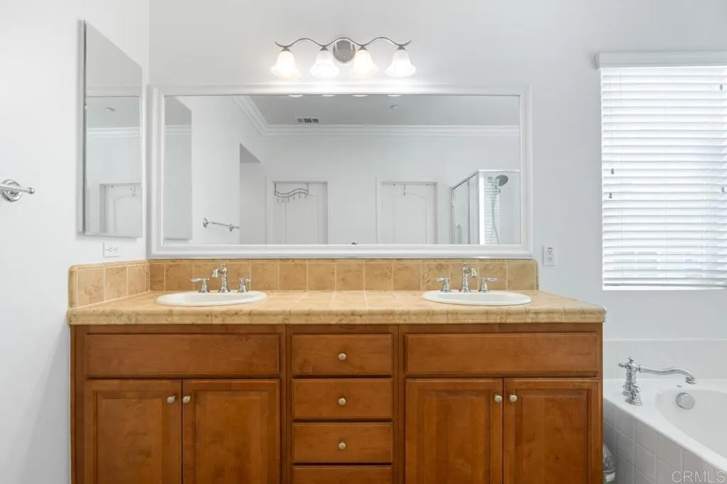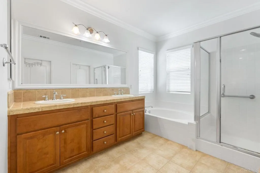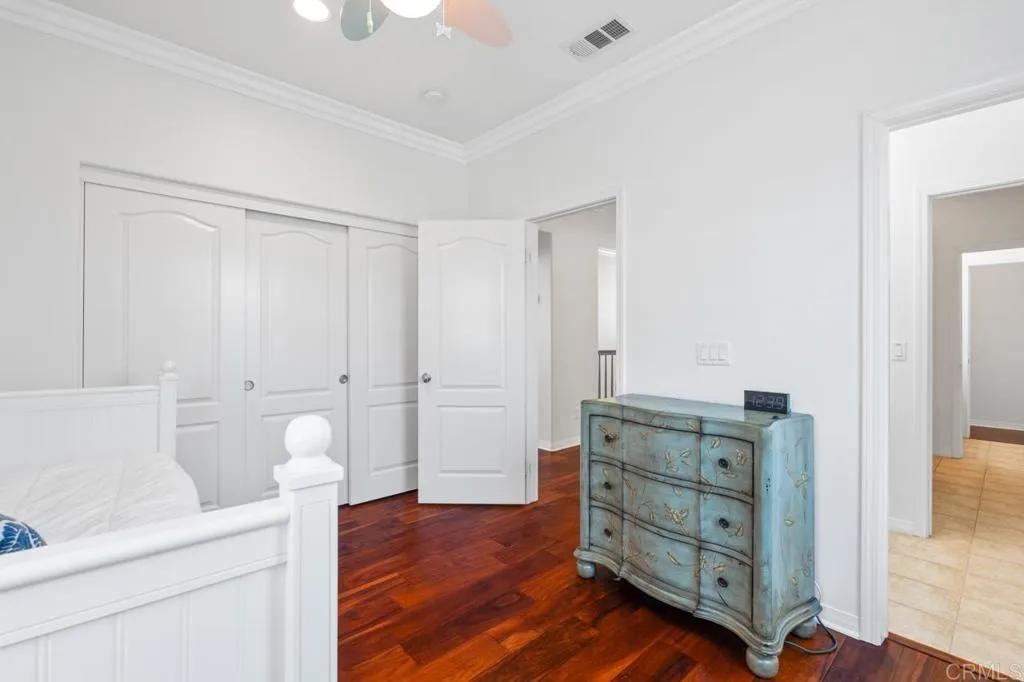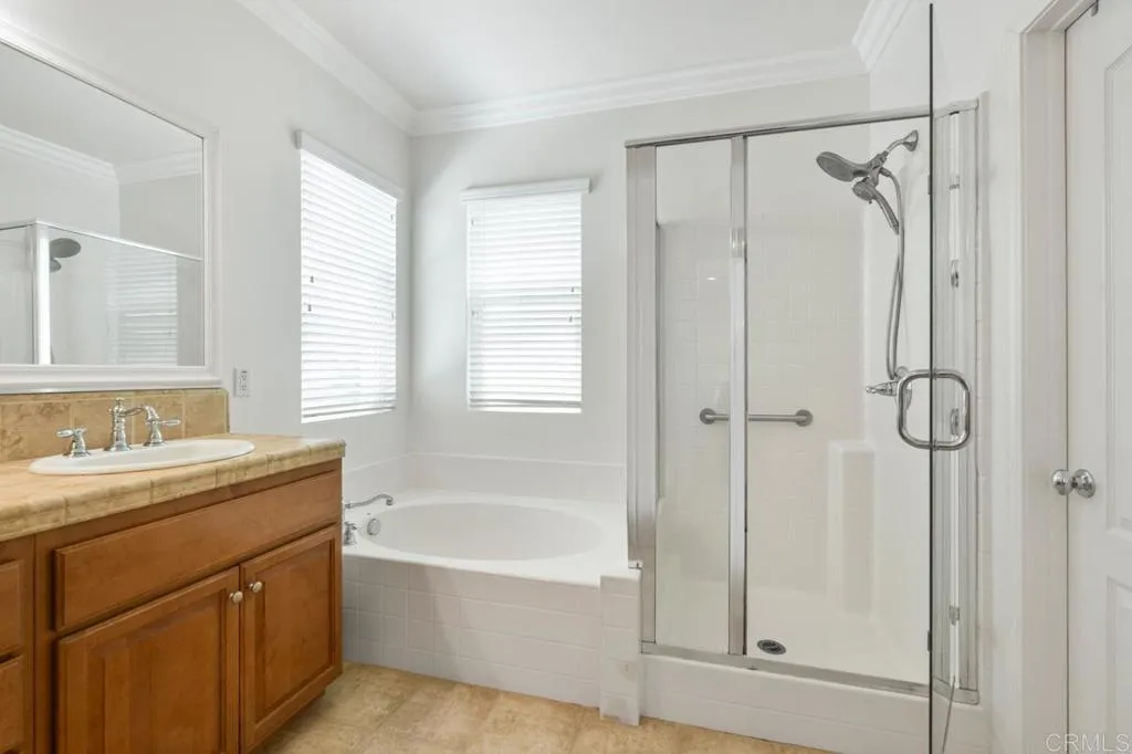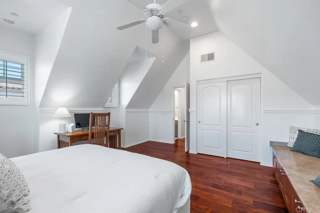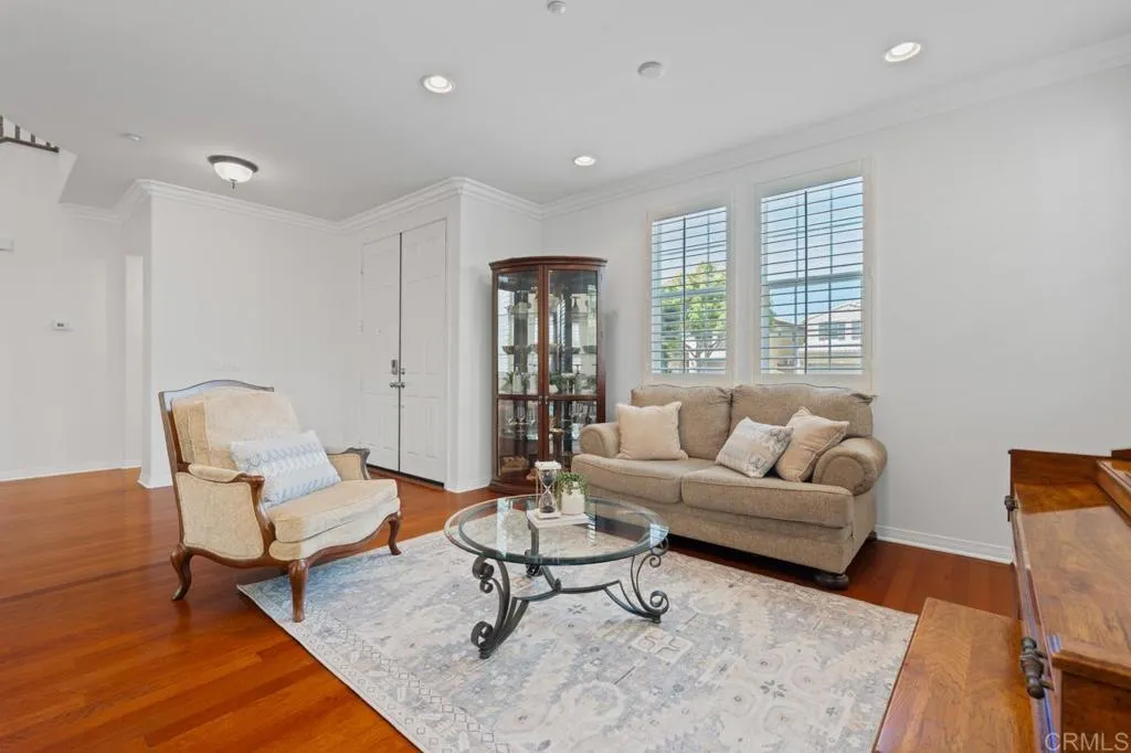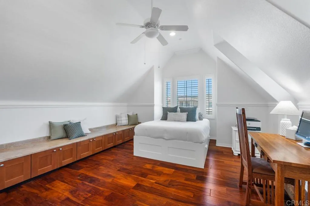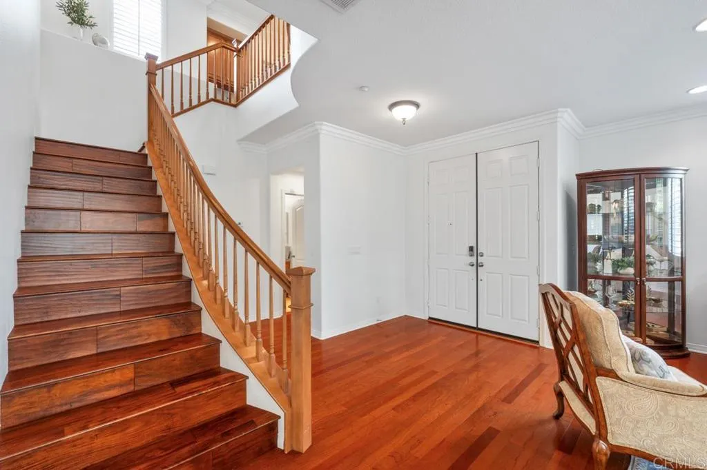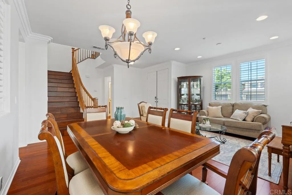 Beautifully maintained and ideally located within walking distance to top-rated schools, shopping, dining, parks, and more. Step inside to a spacious formal living and dining area with a well-designed floor plan that flows seamlessly into the kitchen, featuring a serving island with room for casual dining and opening to the inviting family room. The first floor also offers a full bedroom and full bathroomperfect for guests or flexible living. Upstairs, youll find three additional bedrooms, two bathrooms, and a dedicated laundry room. One secondary bedroom features vaulted ceilings and charming dormer-style windows. The primary suite is privately situated at the back of the home and includes an ensuite bath with a walk-in shower. Enjoy the private backyard and garden under a fully covered patioideal for entertaining or relaxing. Located in the highly desirable 4S Ranch community, residents enjoy access to top-rated Poway Unified schools, beautiful parks, pools, scenic trails, and vibrant community events, all just minutes from shopping, dining, major tech hubs, and approximately 15 minutes to the beaches of Del Mar and Torrey Pines. This is more than a homeits the lifestyle youve been waiting for.