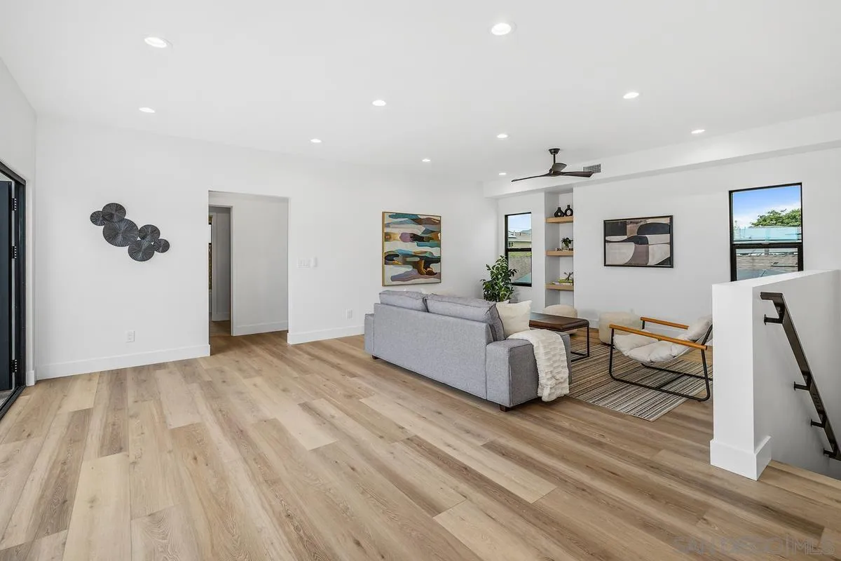 $25,000 Buyer Credit in Escrow for Landscaping—Customize Your Dream Backyard Retreat! Experience luxury and design in this brand new, fully permitted remodel on a spacious 7,300 sq ft lot. Blending Scandinavian-inspired aesthetics with high-end finishes, this home offers a serene and sophisticated living environment. Enjoy breathtaking 360° views, including SeaWorld fireworks and Bay vistas, from two expansive second-floor decks and a stunning rooftop terrace. The open-concept kitchen and living space flow effortlessly into the backyard through bi-fold doors, creating a seamless indoor-outdoor living experience. Design Highlights: Custom white oak cabinetry Champagne brass fixtures Built-in bar and striking Venetian plaster fireplace Spa-like primary bath with terrazzo floors and lime plaster walls Flooded with natural light, showcasing clean lines and calming wood-and-white tones Modern Amenities: Solar panels EV charger. Two view decks, one rooftop and one of Primary suite. PRICE AND COMPARE -THIS IS THE BEST BUY IN THIS PRICE RANGE!