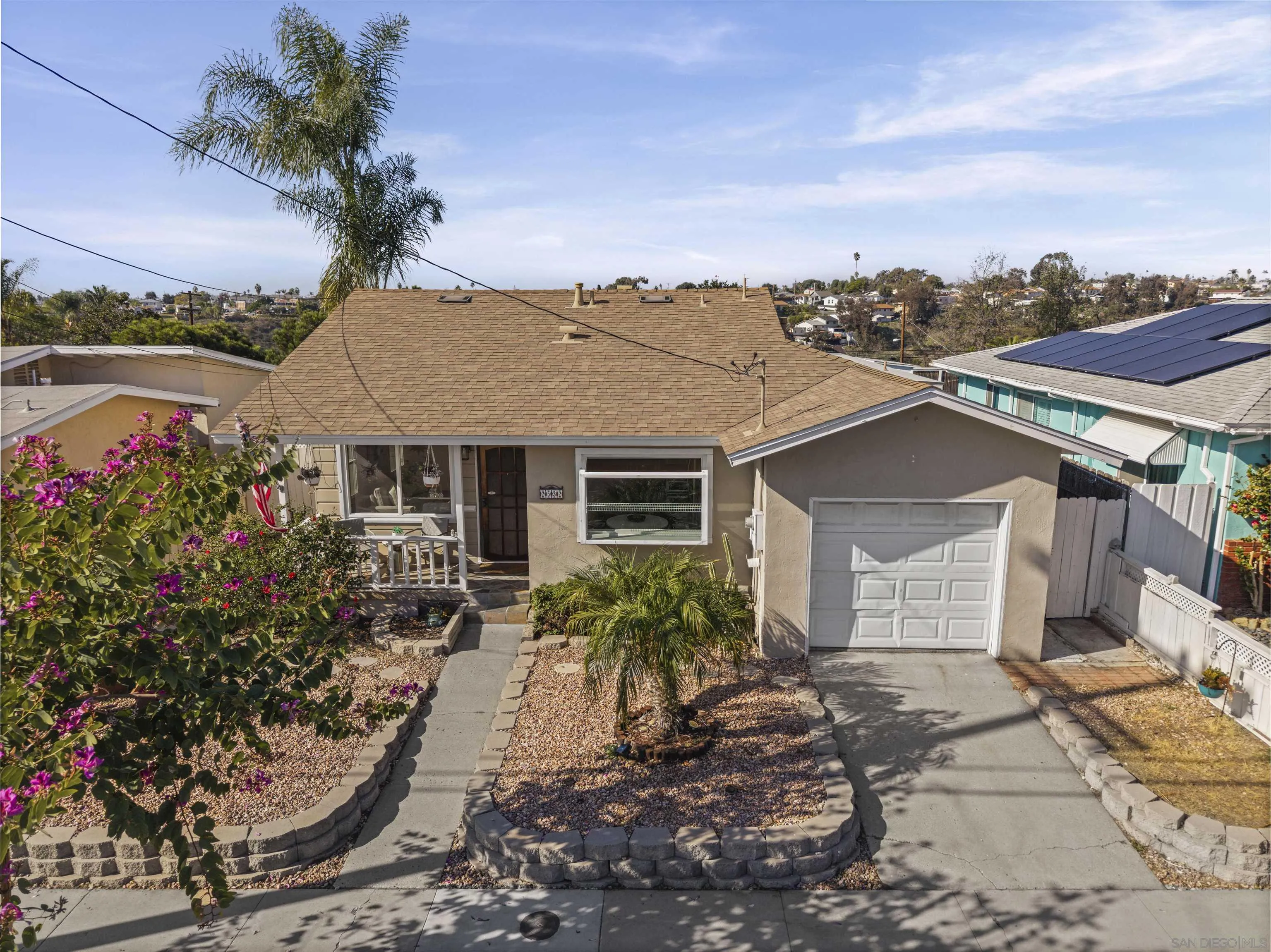 Set above the neighborhood with wide reaching views, this 3 bedroom, 2 bathroom, 1,250 sq ft home blends comfort with convenience. The interior features stainless steel appliances, original hardwood floors, and a surprisingly spacious primary bedroom considering the size of the home. Enjoy a newer roof installed in 2018 and a private backyard deck perfect for taking in the city skyline. Located minutes from major freeways, shopping, parks, and dining, this home offers an ideal San Diego lifestyle with easy access to everything you need. A great opportunity for anyone seeking views, central location, and everyday livability.
