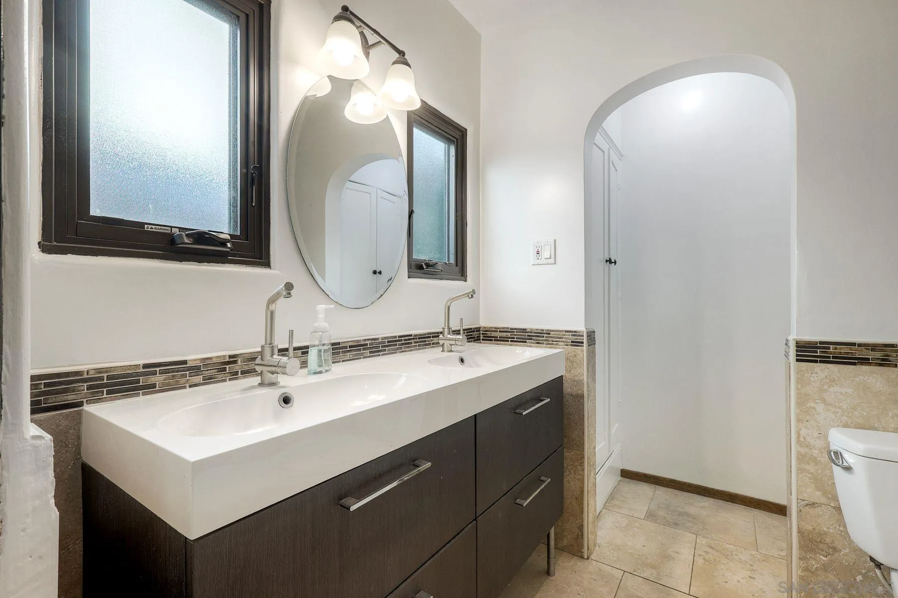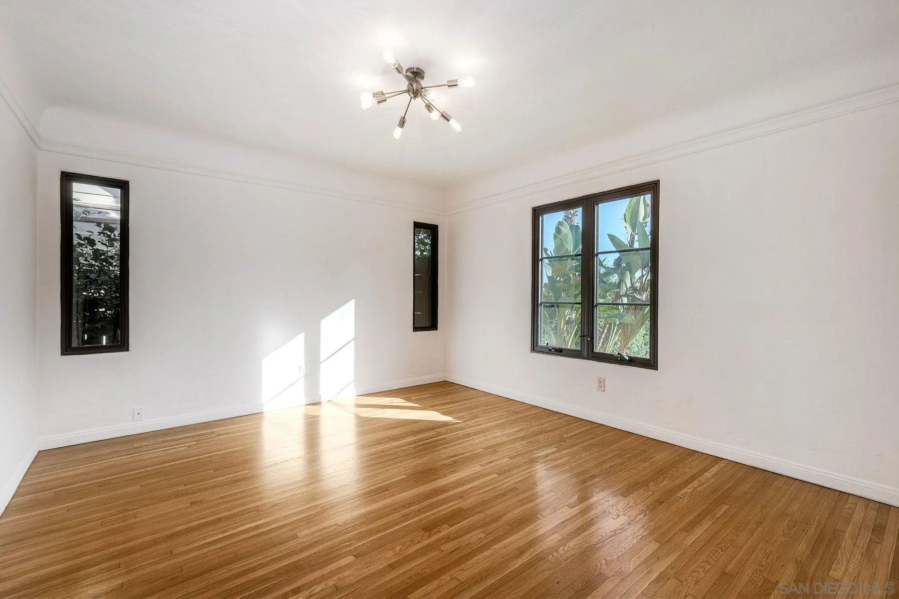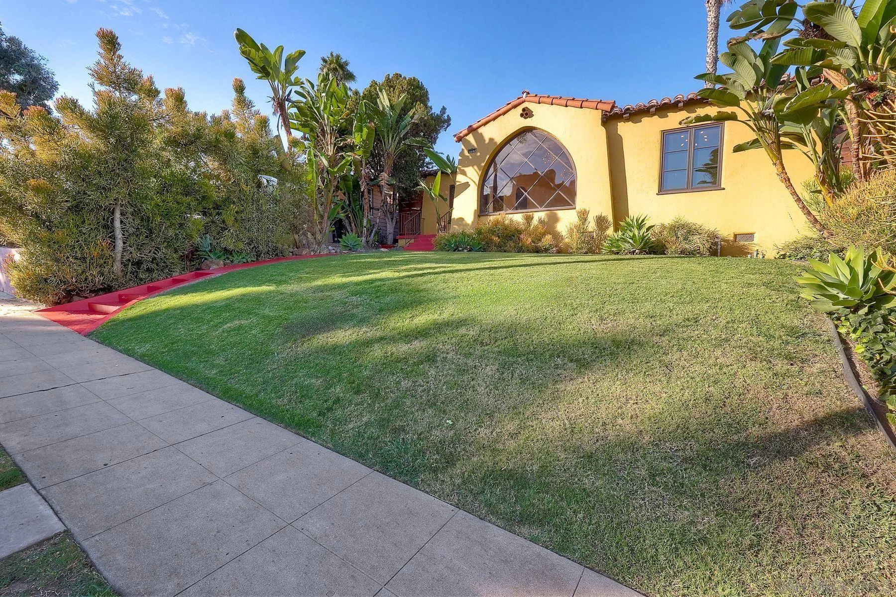 This exquisite 1,300 sf+ single level Spanish home features 3 bedrooms, 2 bathrooms, a 2 car garage and stretches out on over 7,100 sf of lot area. Warmth and character abounds with oversized arched picture window, white oak hardwood floors w/ borders, coved ceilings & baseboard as well as corner built in cabinets w/ rotary phone niche! Perched above the street w/ loads of natural light & voluminous 9 foot living room ceilings. The modern kitchen blends seamlessly w/ the dining room & offers a spacious breakfast bar & exterior access to the Saltillo tile covered patio. The interior has been freshly painted and the hardwood floors refinished in a classic natural stain. Oversized primary suite w/ ductless a/c. Primary bath features dual sinks and spacious closets. Bedrooms are generously sized and attached to the garage is a ~22'x10' bonus area w/ laundry. Inviting curb appeal leads you to a comfortable entry porch & custom front door. The backyard oasis features a blend of concrete walkways and patios, artificial turf and room to play. Other well placed improvements include new windows & sliding glass door($40k),additional post & piers added(permitted, $17k),abs drain lines under the home, upgraded electrical panel and wiring, newer forced air system & new water heater. Excellent potential to add an ADU or convert bonus area to a guest suite.