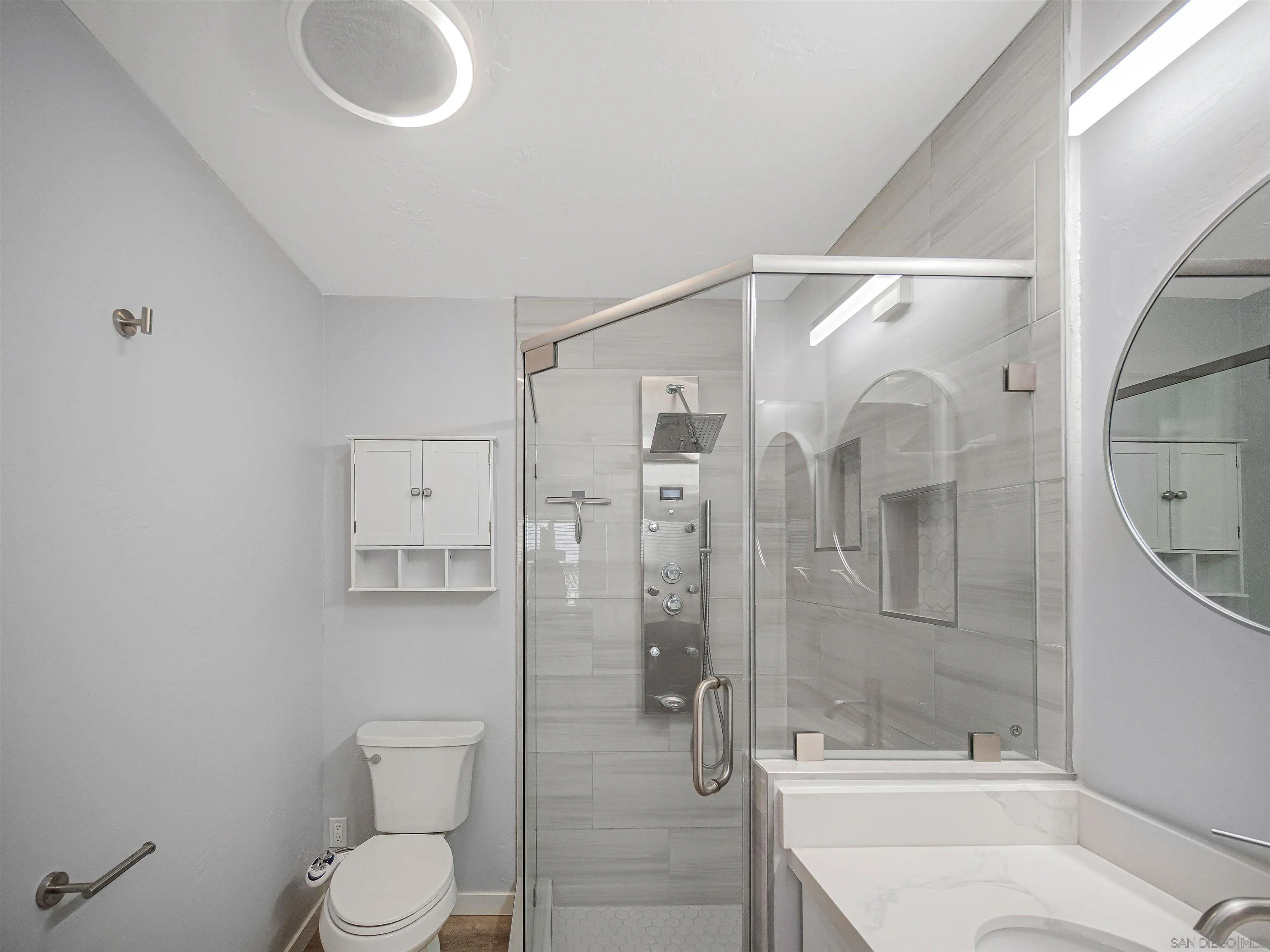 This extensively upgraded property offers Multiple living spaces lend the way for owner-occupants, multi-generational living, and income potential. Flexible living space offers 2 bedrooms/2 baths plus living/rec space on 2nd floor and 1 bedroom plus den with large kitchen and family room on main floor. Living area opens up to a tropical private backyard including a lucrative avocado tree and multiple patios. Quite the rare indoor-outdoor living space! JrADU features 2 private patios, well designed interior, mini-split hvac, stainless appliances, quartz and shaker cabinets. Extra wide 1 car garage with storage, 4 off street parking spots and multiple outdoor areas truly make this property special. Major recent improvements include; 30 panel + battery owned solar system, PVC roof, vinyl windows, shutters, kitchen & bath remodels, HVAC systems, landscape/hardscape, patio decks, interior and exterior paint and termite repairs. Ideally located near Liberty Station(within walking distance), the harbor, beaches, dining, shopping, downtown San Diego and the airport.