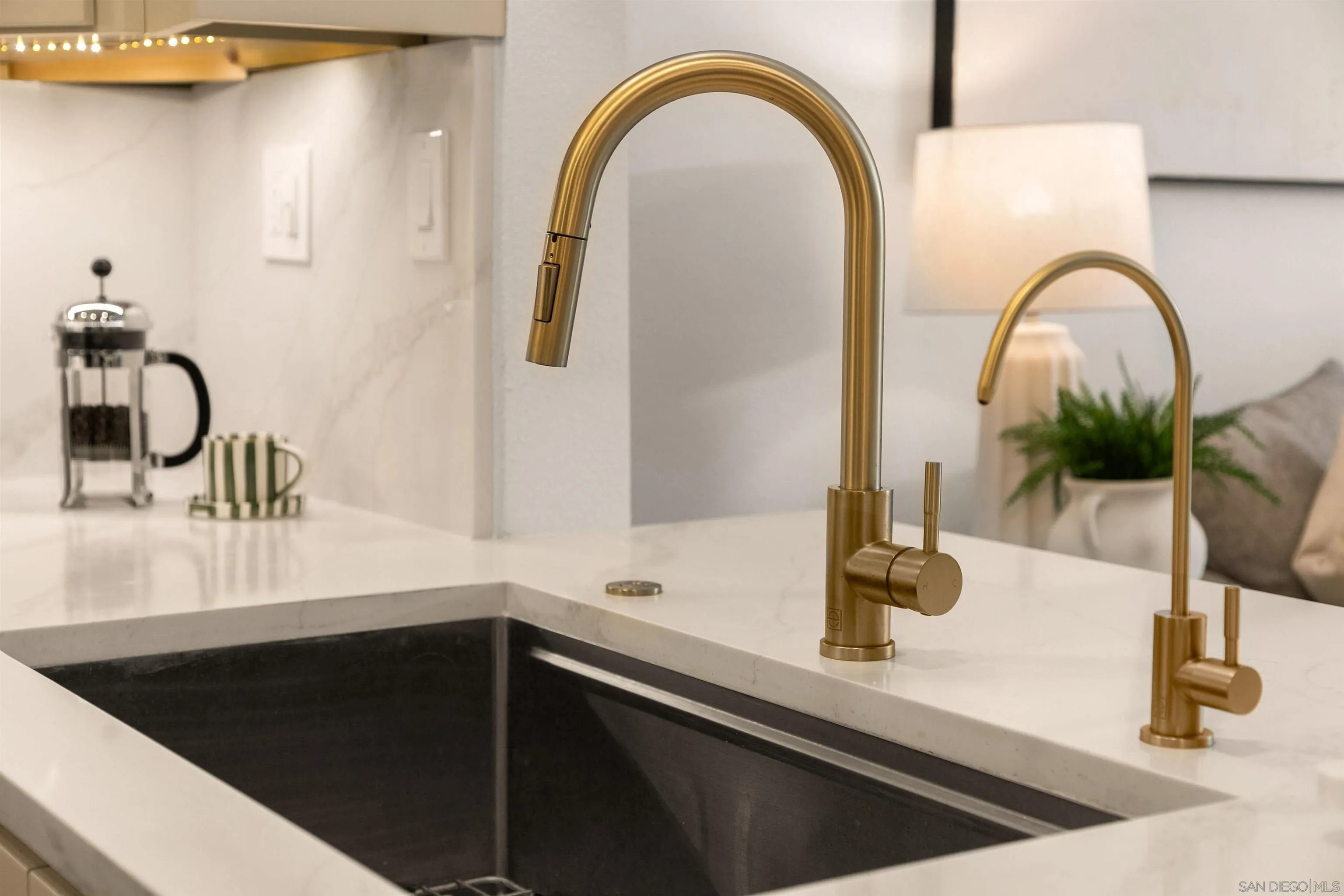 Introducing this fully remodeled top-floor unit in the highly desirable Arborlake community of Carmel Del Mar. Thoughtfully upgraded from top to bottom, this unit lives like a two-bedroom, offering a one bedroom with a spacious loft perfect for a guest room, office, or flex space. As you walk in, you are greeted with high vaulted ceilings, an open layout with ample natural light, new wide-plank flooring, and a sleek electric fireplace that anchors the living room. The fully remodeled kitchen is a true showpiece, featuring quartz countertops, extended peninsula with bar seating, premium Samsung stainless-steel appliances with gas range, custom cabinetry with designer hardware, and layered lighting: recessed, designer pendants, and under-cabinet lighting. The custom-designed bathroom showcases elegant tilework, a glass-enclosed shower, and an oversized vanity for added counter space. The primary suite boasts vaulted ceilings, a modern ceiling fan, large windows with blackout shades, and a generous closet. Head upstairs to the spacious loft for the perfect guest room or office with direct access to a private, oversized storage room that is rare to find in condo living. Additional highlights: stackable washer/dryer, fresh interior paint, a reverse osmosis water system, and 1 assigned covered parking spot plus guest parking. Arborlake boasts lush grounds, koi ponds, heated pool, two spas, clubhouse, BBQ areas, and tennis courts. Ideally located near Del Mar Highlands Town Center and One Paseo, as well as top-rated schools, beaches, parks, and quick freeway access.