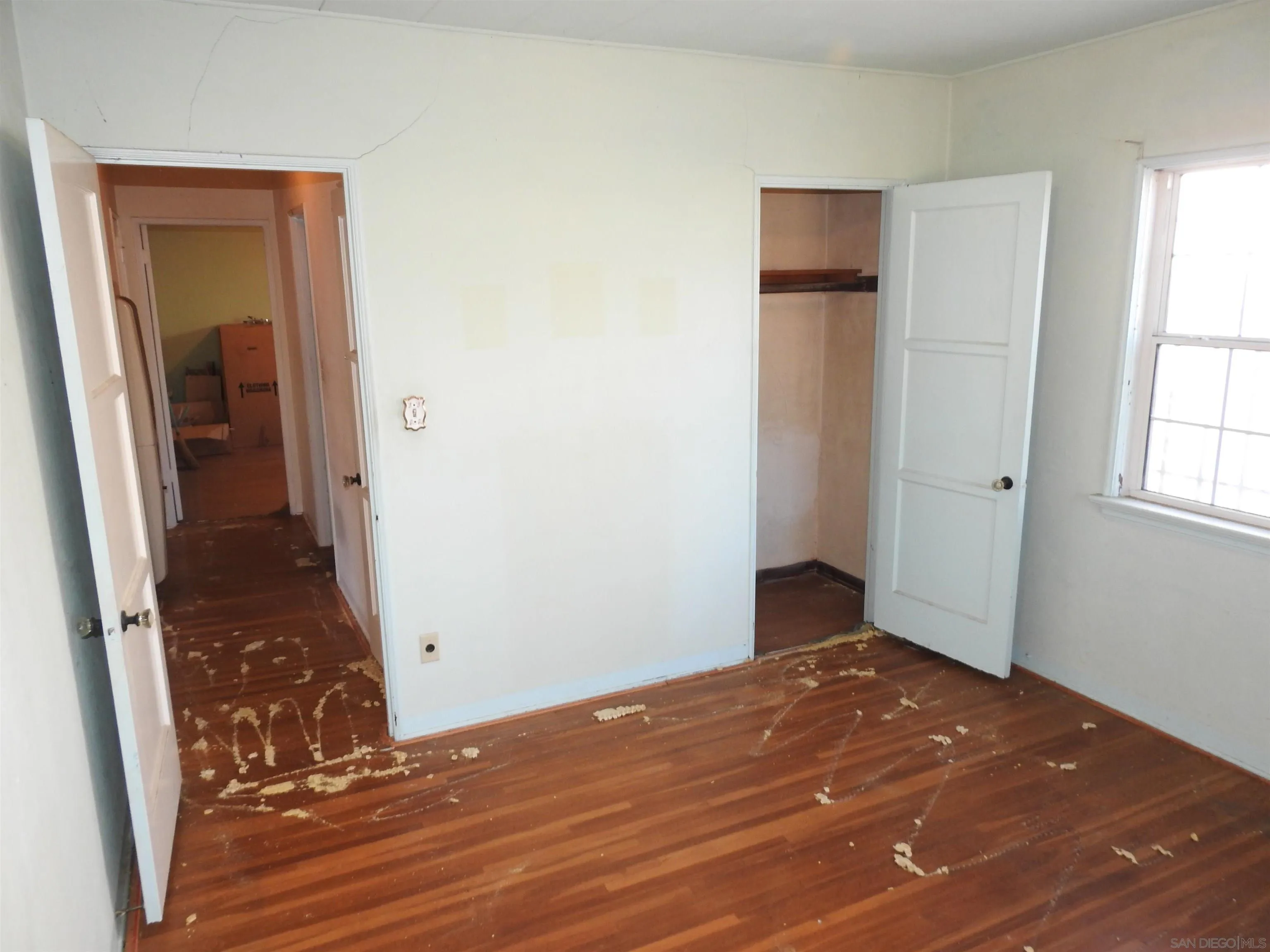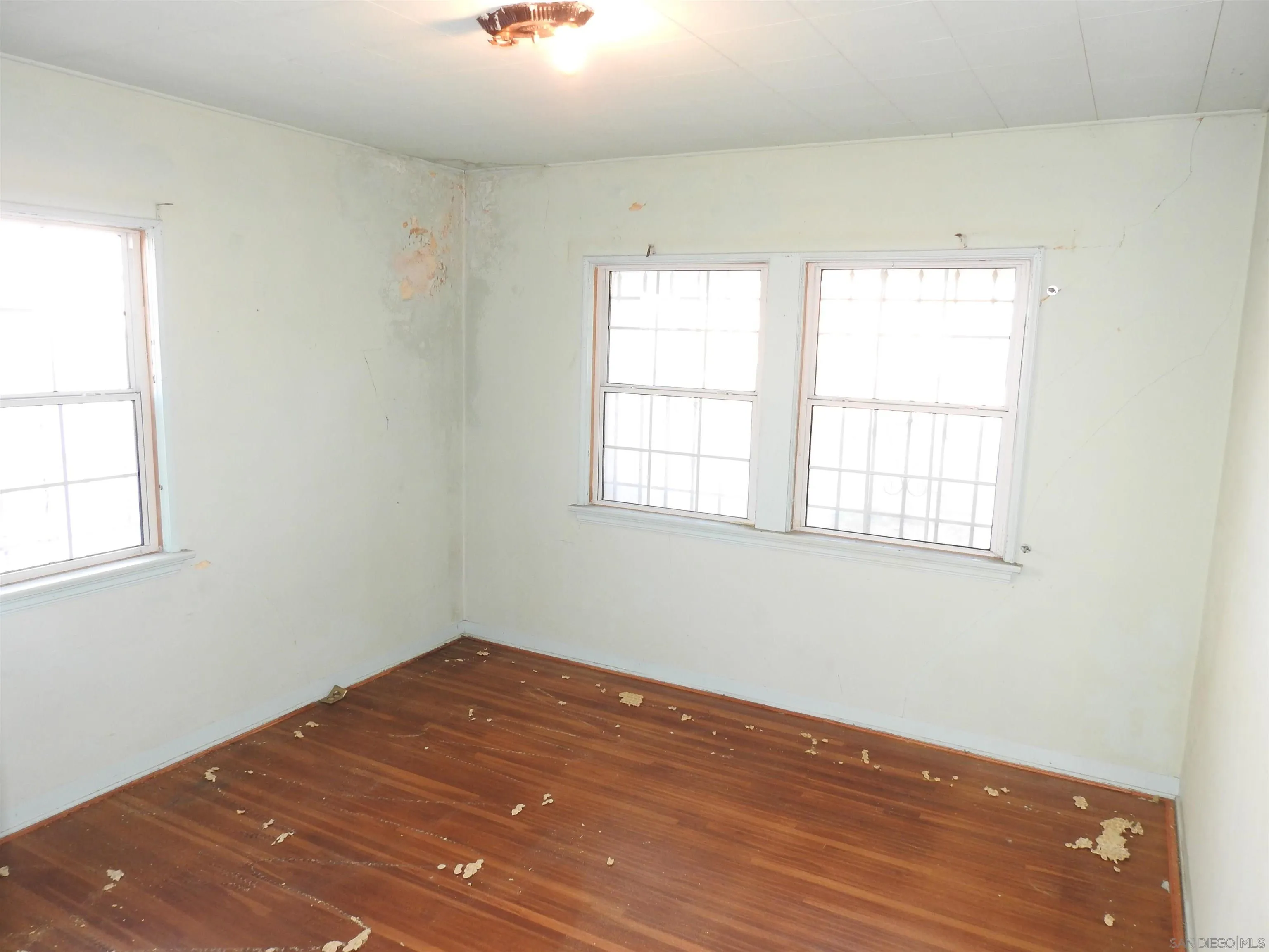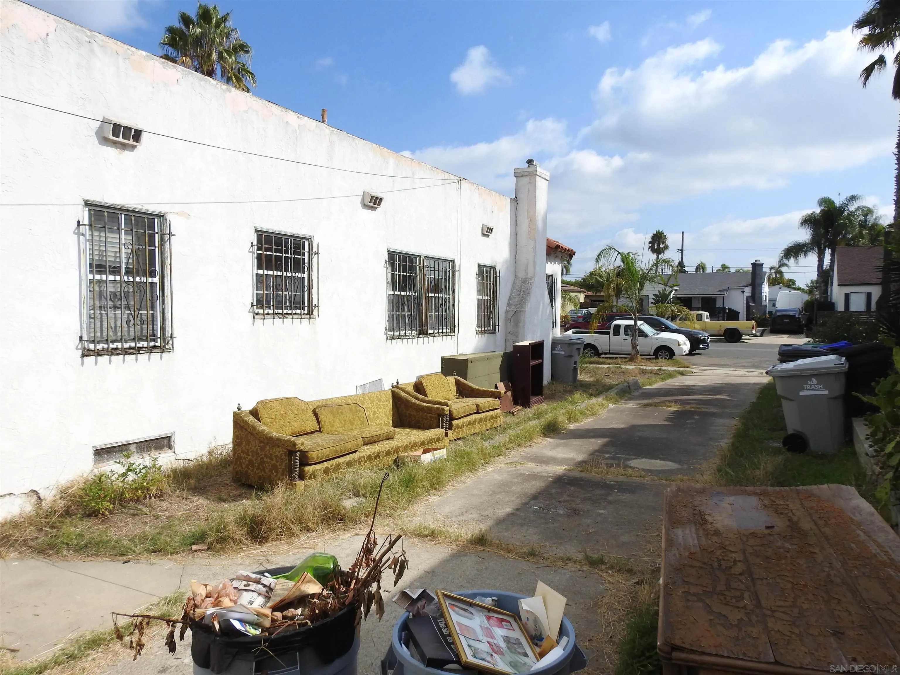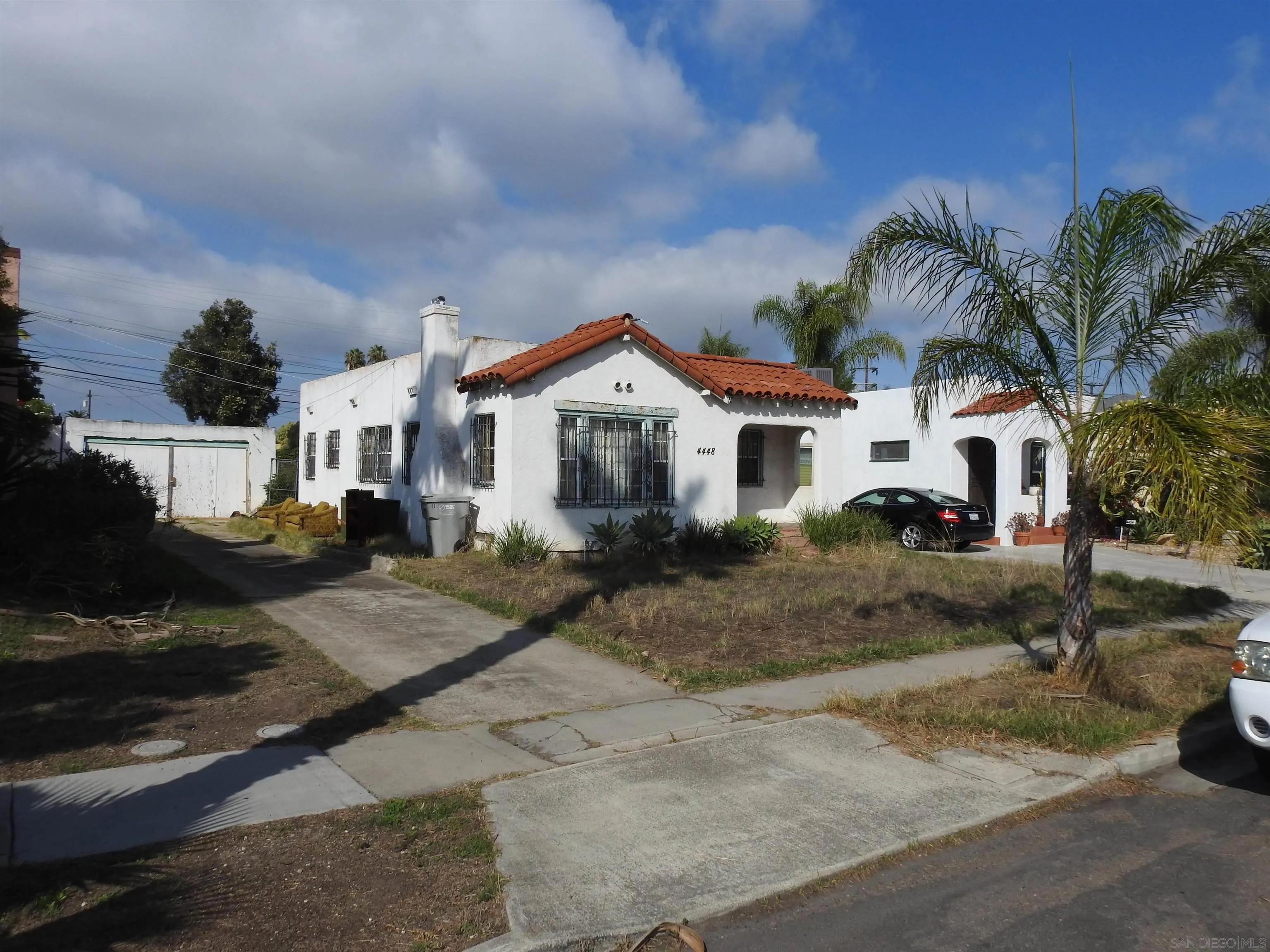 Normal Heights early century Spanish style 1,312 square feet cottage with great quite location, detached garage and large back yard. Nestled in between the 15 and 805 freeways and Adams Ave. and El Cajon Blvd, in a desirable walkable neighborhood. This cozy bungalow built in 1932 offers a covered porch to living room with original 1930’s front door, to living room with coved beam ceilings and fireplace with many original light fixtures. Archway to dining room which leads to hallway with one bath with classic tiled tub. Two bedrooms - King Bed fits nicely in the primary bedroom while the second bedroom opens to a walk through third bonus room with built in bookcases and access door to backyard. The home is set on a Set on a generous 6,235 sq./ft. RS-1-7 lot with expansive backyard that is perfect for hosting gatherings with family and friends or future expansion or ADU. Detached one car garage with plenty of extra driveway off street tandem parking for cars, RV, etc. Major fixer that offers incredible potential for investors or buyers ready to renovate. Will make a great project for someone that wants to preserve a historic home.