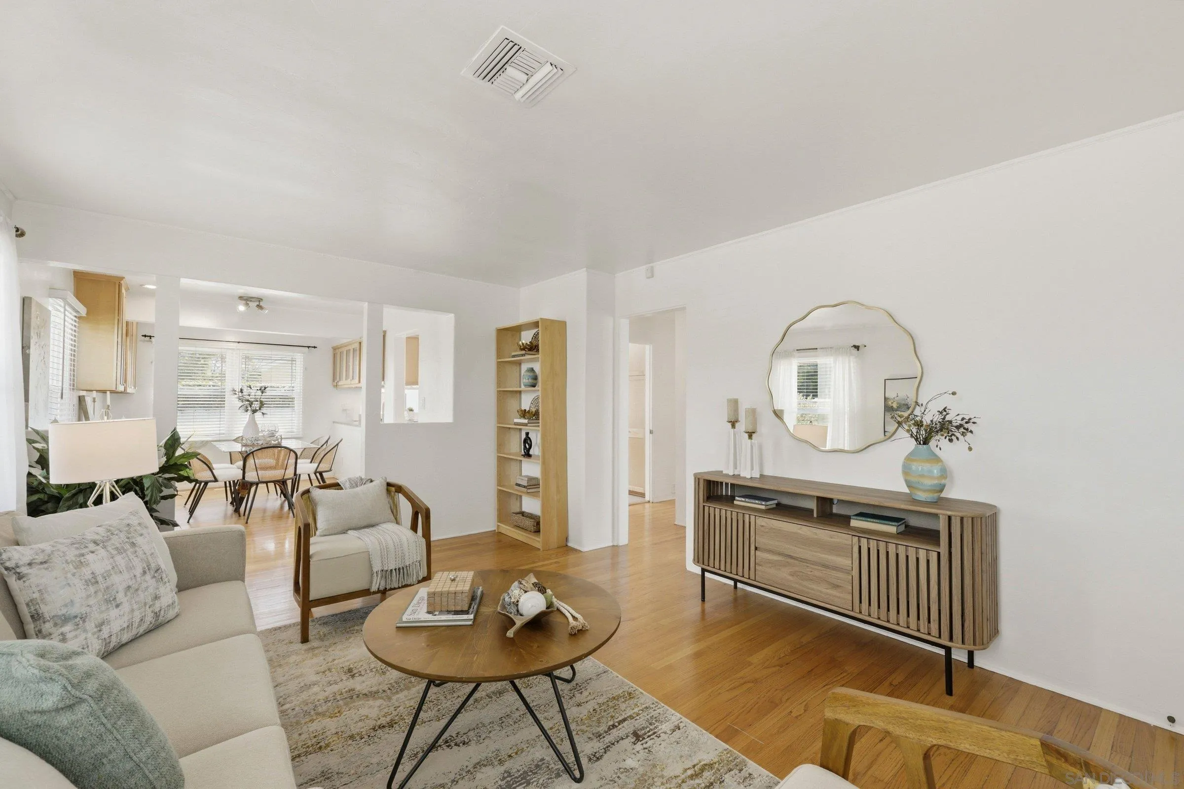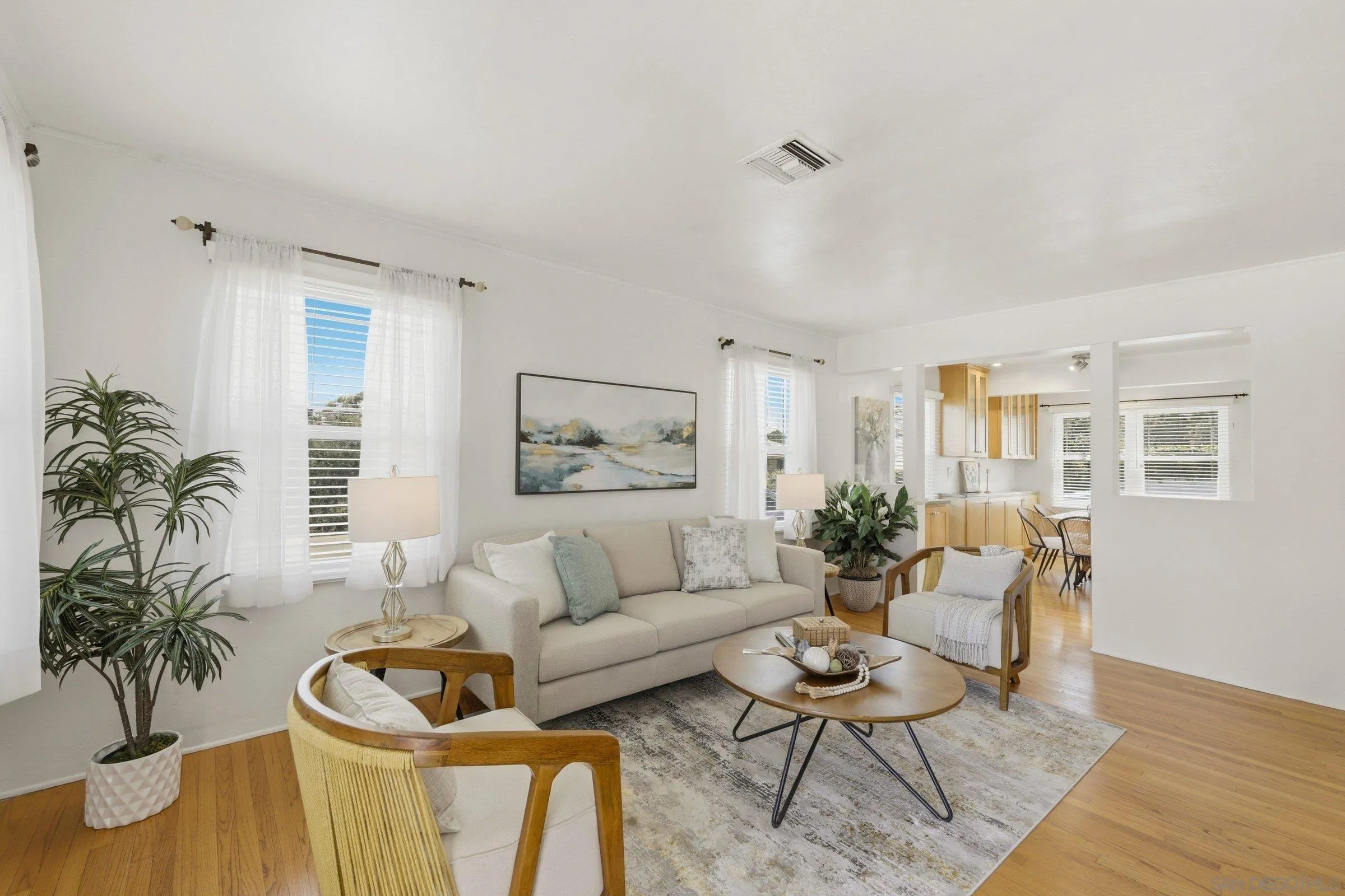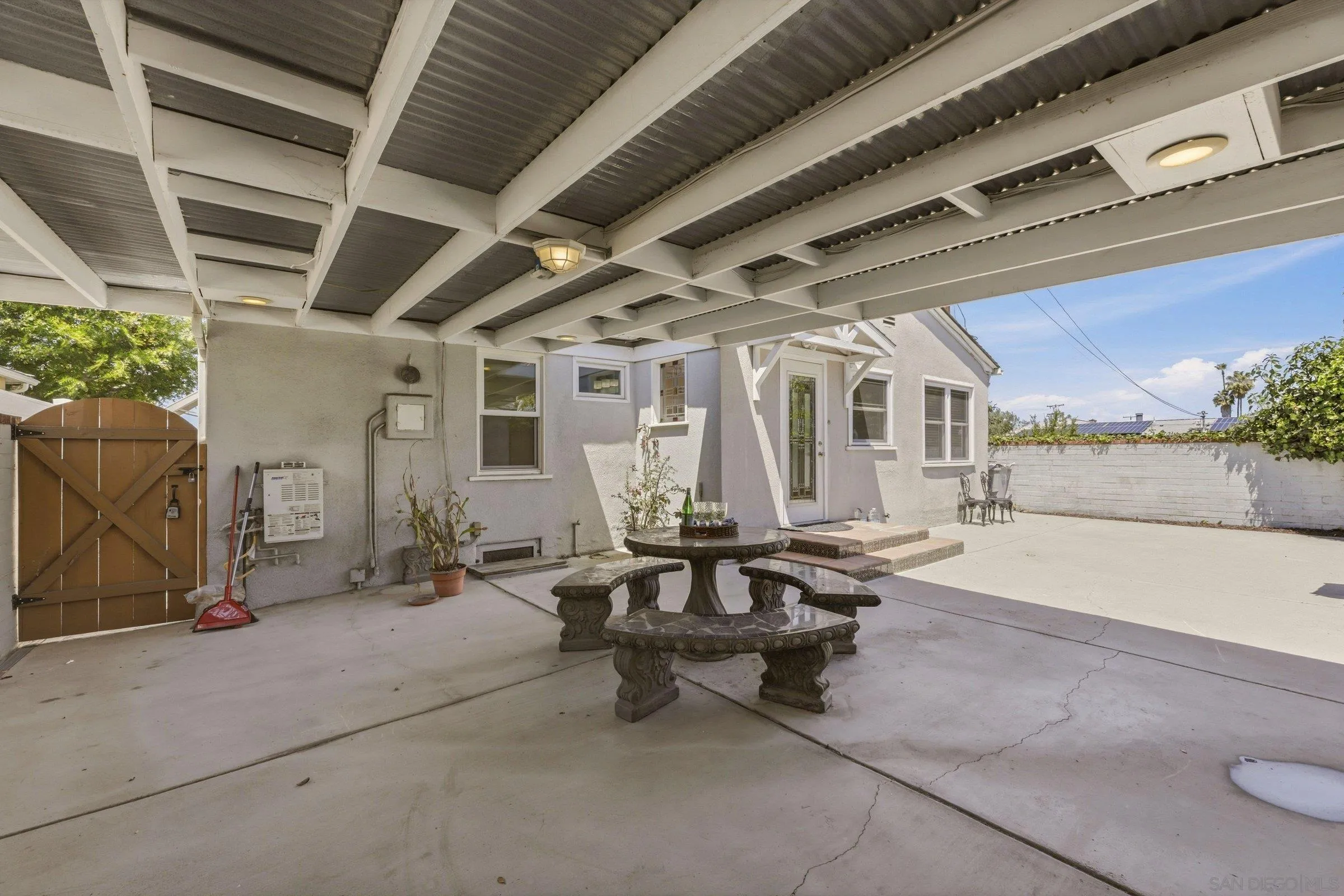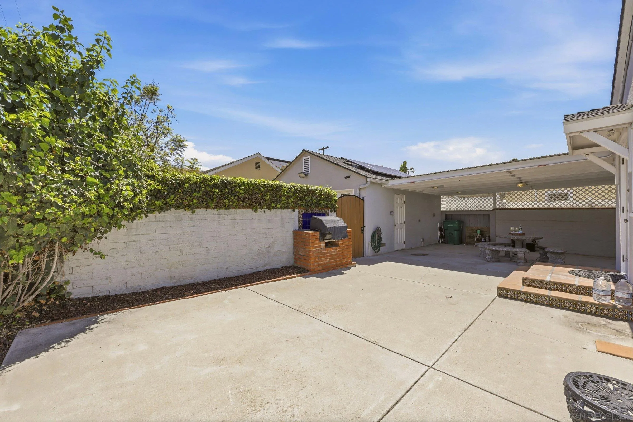 Welcome to this well-maintained 3-bedroom home in the desirable El Cerrito neighborhood of San Diego, within walking distance from San Diego State University. Owned and lovingly cared for by long-term owners, this property reflects true pride of ownership with numerous upgrades and energy-efficient features throughout. The home features fully owned solar (installed in 2018 with a 25-year warranty), helping reduce energy costs while supporting sustainable living. Enjoy year-round comfort with central air conditioning and heat, serviced annually, plus updated attic insulation and dual-pane windows [2021]. The bright kitchen includes granite countertops, porcelain tile flooring, a skylight for natural light, a Dacor oven, dishwasher [2021] and a brand-new refrigerator, with [new] washer and dryer conveniently located in the kitchen area. The remodeled bathroom features a relaxing soaker tub and porcelain tile flooring, creating a comfortable and modern space. Additional highlights include a tankless water heater, updated wiring, raised foundation with crawl space access, home alarm system with security cameras, and a newer garage door opener with backup battery. The one-car garage with storage and two-car driveway provides ample parking, and the property offers potential ADU opportunities above the garage (buyer to verify). The fully enclosed backyard is perfect for entertaining or relaxing, featuring outdoor lighting on timers, a built-in BBQ with Spanish tile, and a charming concrete table seating area.