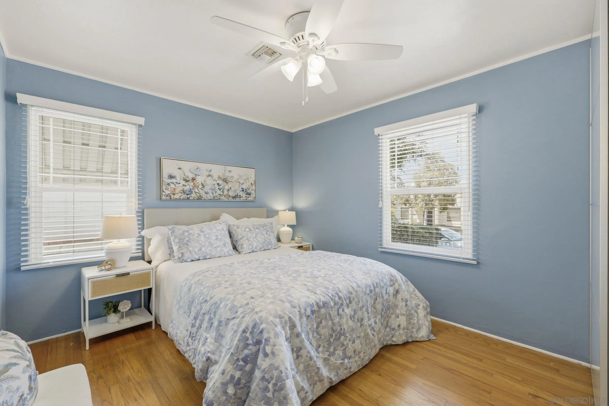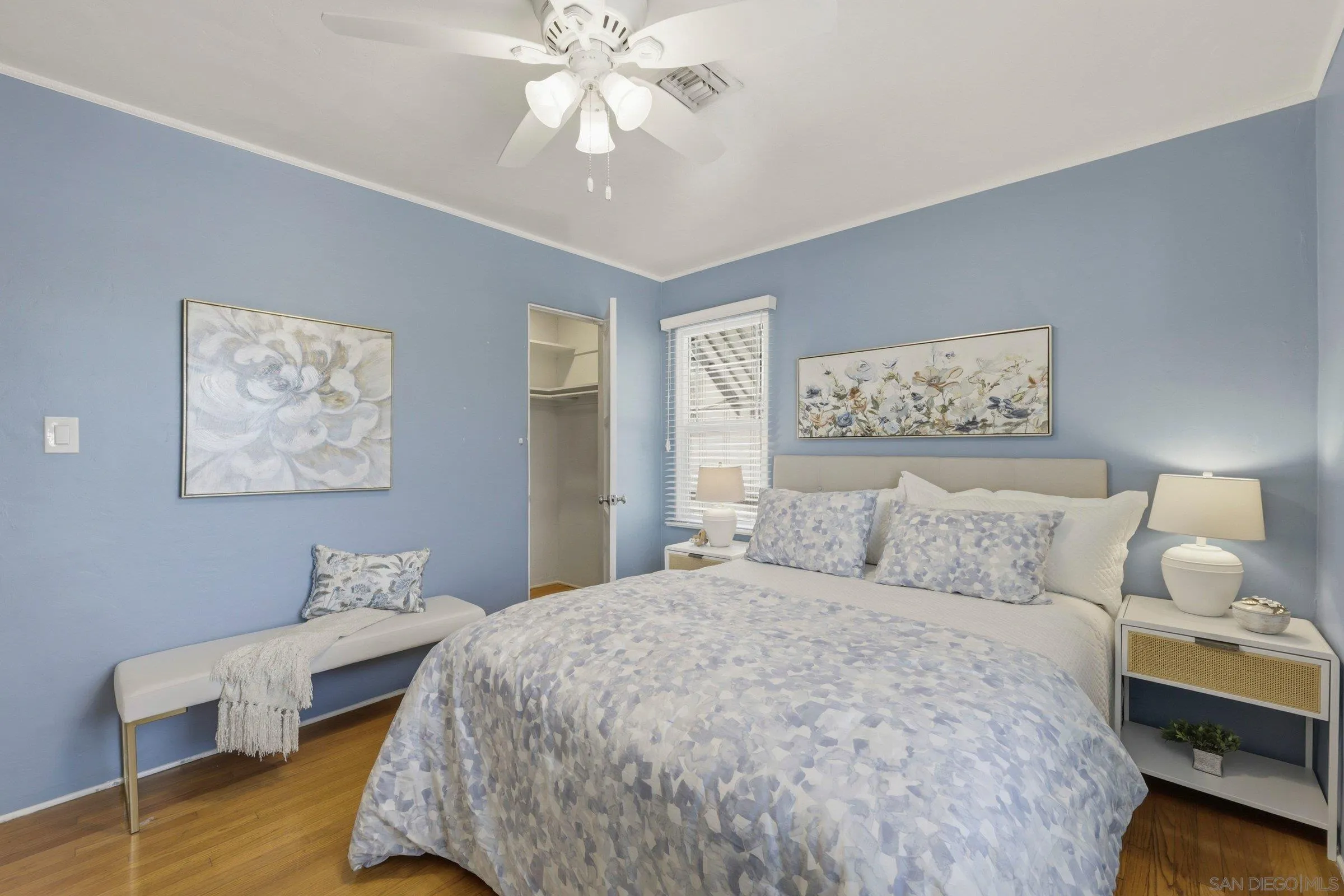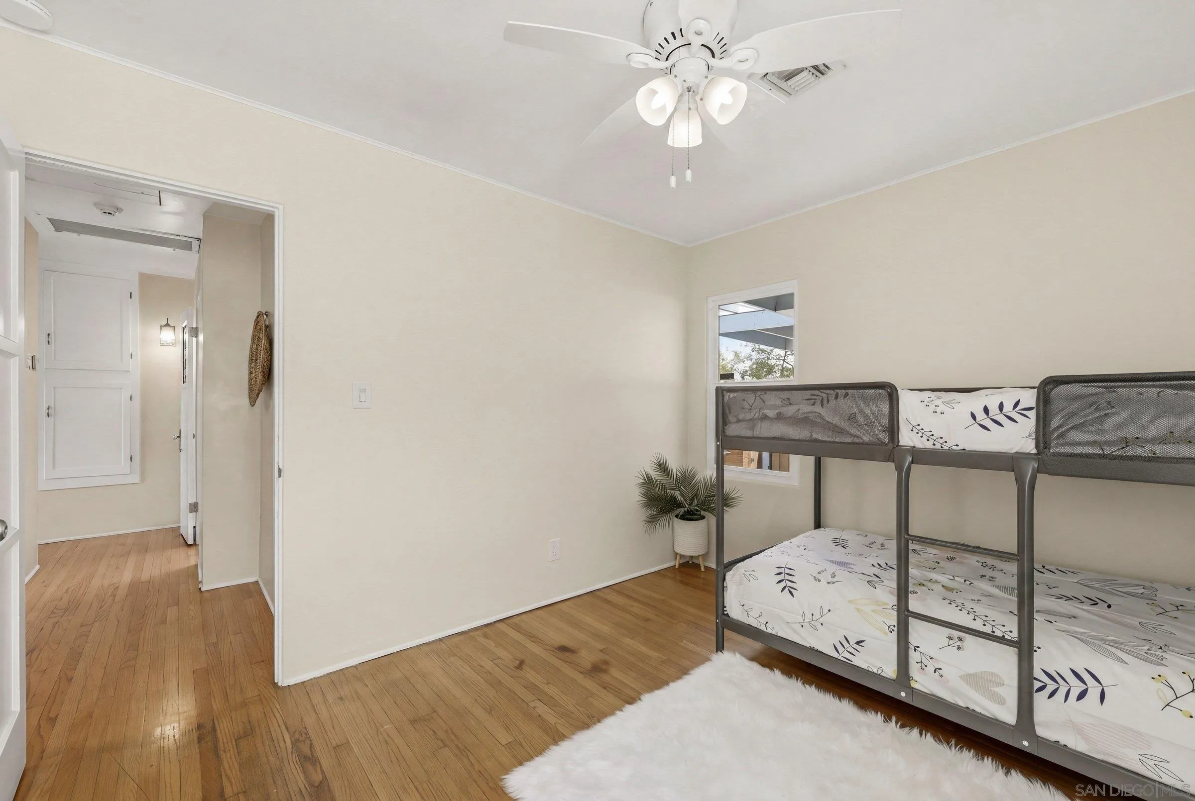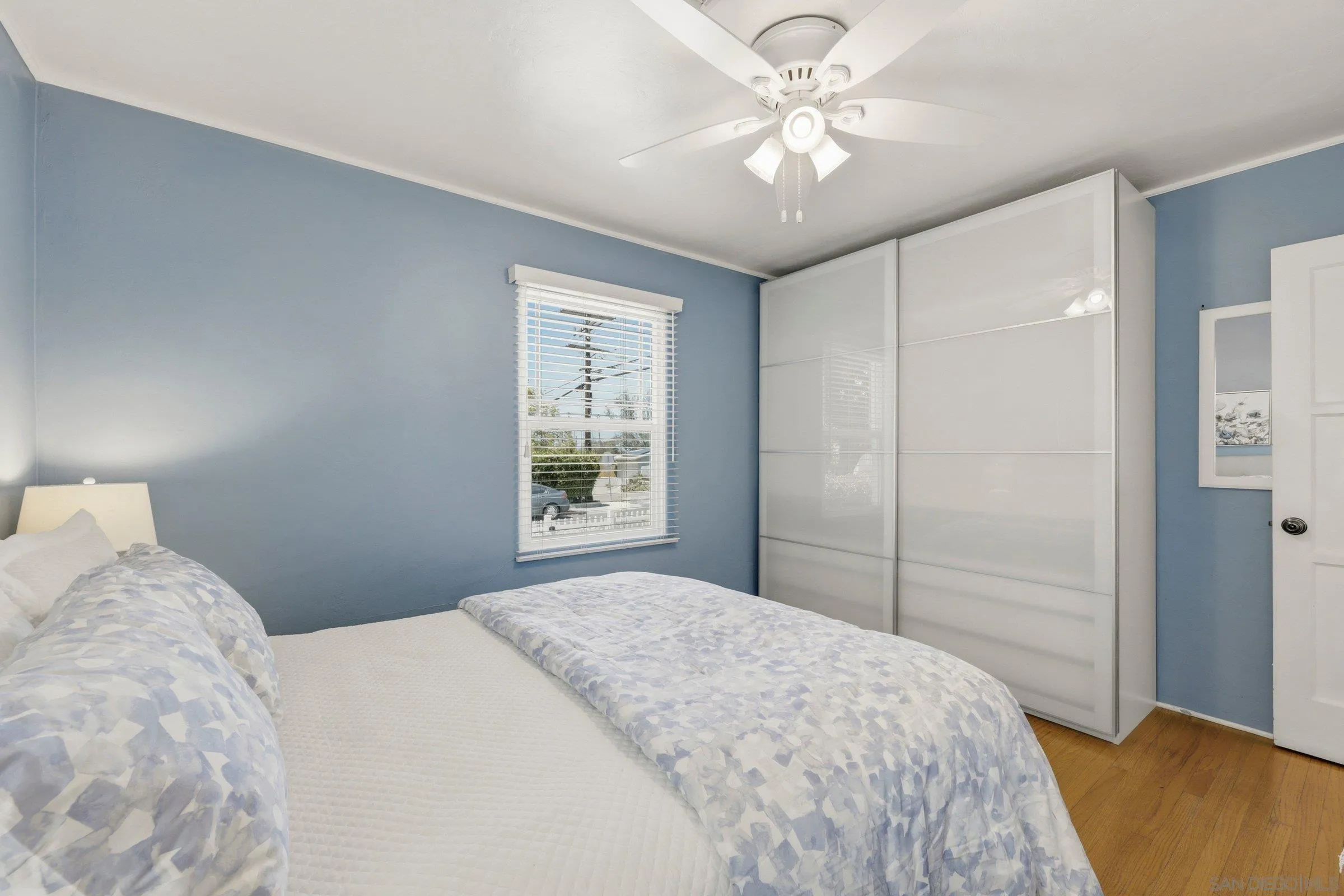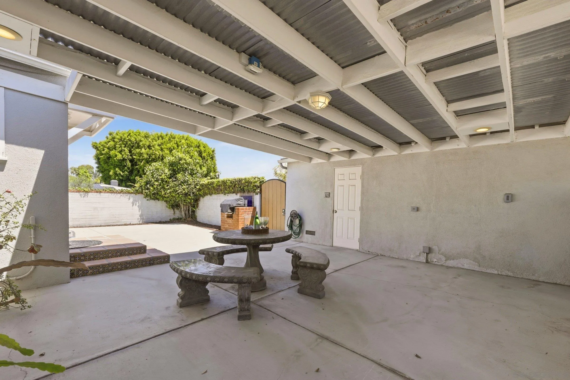 Welcome to this well-maintained 3-bedroom home in the desirable El Cerrito neighborhood of San Diego, within walking distance from San Diego State University. Owned and lovingly cared for by long-term owners, this property reflects true pride of ownership with numerous upgrades and energy-efficient features throughout. The home features fully owned solar (installed in 2018 with a 25-year warranty), helping reduce energy costs while supporting sustainable living. Enjoy year-round comfort with central air conditioning and heat, serviced annually, plus updated attic insulation and dual-pane windows [2021]. The bright kitchen includes granite countertops, porcelain tile flooring, a skylight for natural light, a Dacor oven, dishwasher [2021] and a brand-new refrigerator, with [new] washer and dryer conveniently located in the kitchen area. The remodeled bathroom features a relaxing soaker tub and porcelain tile flooring, creating a comfortable and modern space. Additional highlights include a tankless water heater, updated wiring, raised foundation with crawl space access, home alarm system with security cameras, and a newer garage door opener with backup battery. The one-car garage with storage and two-car driveway provides ample parking, and the property offers potential ADU opportunities above the garage (buyer to verify). The fully enclosed backyard is perfect for entertaining or relaxing, featuring outdoor lighting on timers, a built-in BBQ with Spanish tile, and a charming concrete table seating area.
