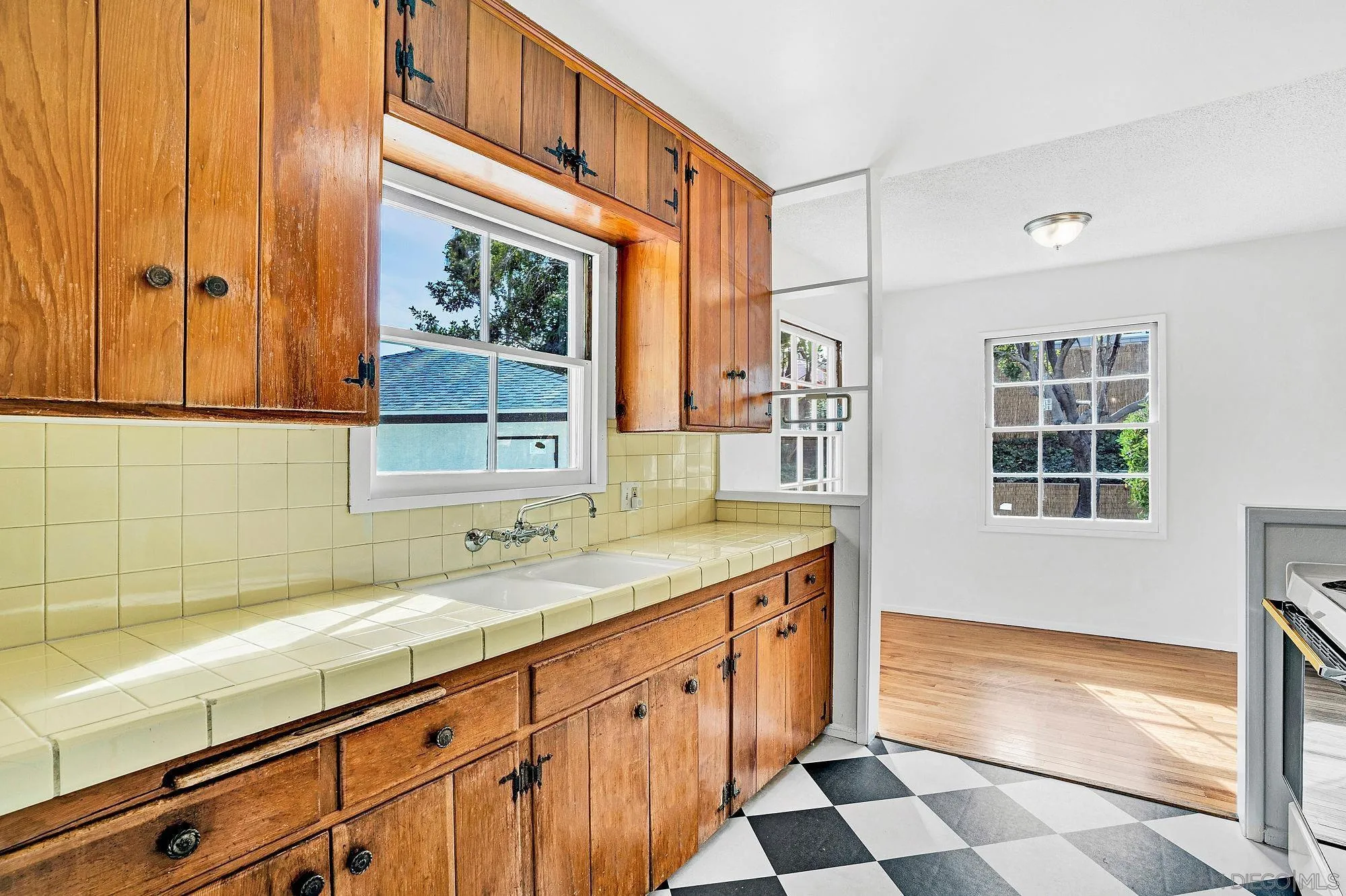 Charming 3BR, 1.5BA Allied Gardens home filled with light! Beautiful hardwood floors throughout most of the home, original knotty pine kitchen cabinets, and fresh interior/exterior paint. Enjoy a spacious backyard with raised garden planters, covered patio, and large side yard. In-house laundry, ceiling fan, and detached 2-car garage add comfort and convenience. Great central location close to parks, schools, shopping, and everything San Diego offers — a true gem!
