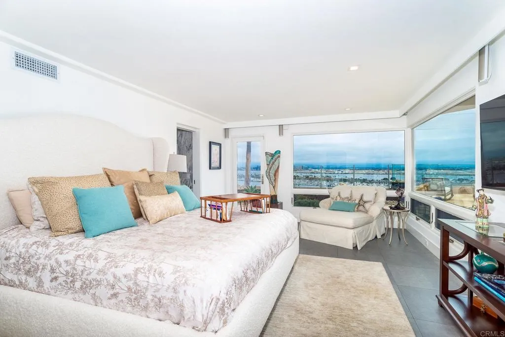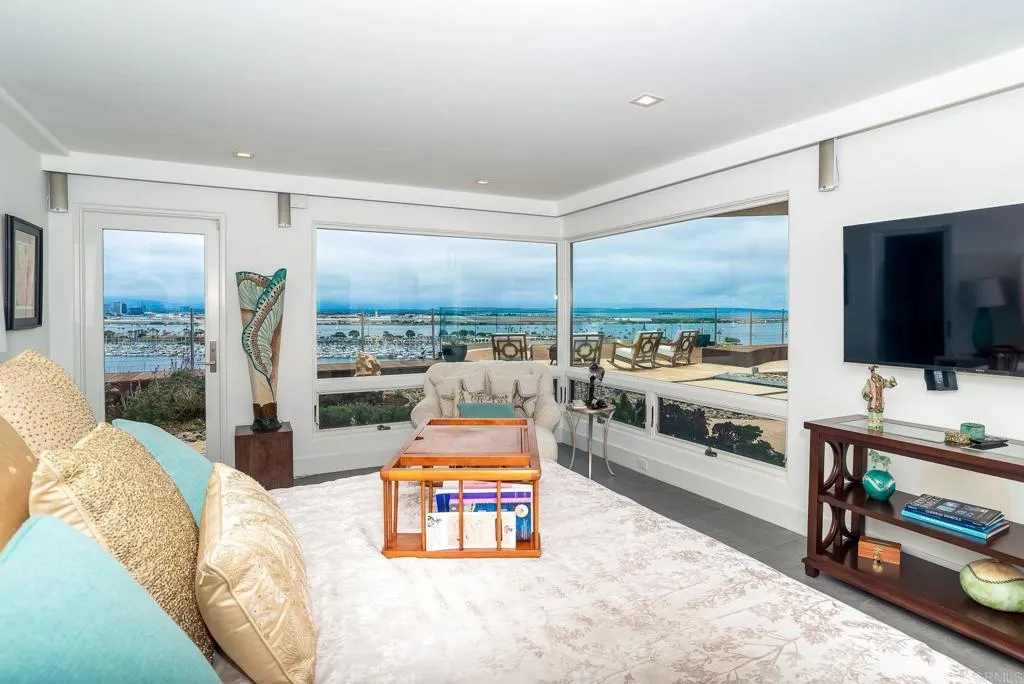 The View House. Absolutely stunning, unobstructed views of the Bay, Shelter Island yachts, downtown San Diego skyline, Coronado Bridge, hillside homes and vistas. Words simply can't do justice to the breathtaking views from all major rooms. Features of the 2-story house include a warm courtyard entry to an exquisite living room with coffered ceiling, custom skylights, and walls of glass; a true gourmet cooks kitchen with central island and seating; am open dining area; a large primary suite with a beautiful master bath and custom wood-lined walk-in-closet. 2 additional bedrooms (en suite) are also featured on the entry-level first floor. Downstairs is a large family room/den and another primary suite, with an extra-large walk-in closet and bath. There is an additional bedroom and ensuite bath and a separate gym. The exterior features a wellness escape to a heated spa, an architecturally designed seating area to relax and savor the views, and a terraced yard. 2-car+garage and 2 uncovered parking spaces. The house exudes a timeless elegance and defines luxury living. You have to see this rare, once-in-a-lifetime house to experience what it feels like to be in the very best of the best.