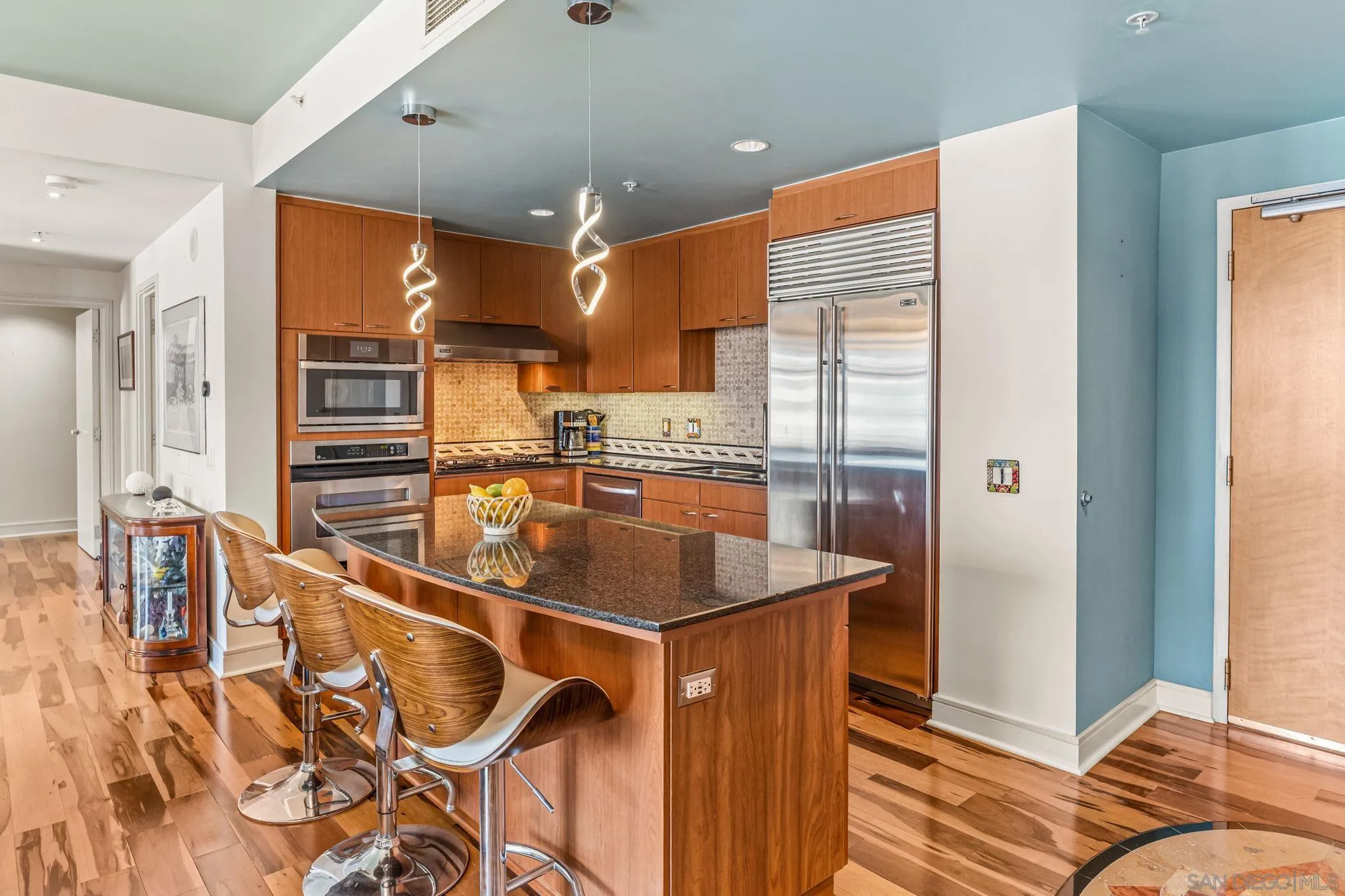 Features an very open and spacious floor plan with an option to simply revert the space to a two-bedroom layout. The kitchen is perfect for entertaining within the open-concept living and dining area. The primary suite serves as a true sanctuary, featuring a spa-like marble bathroom that is both luxurious and striking. Additionally a walk-in closet and a private balcony showcases dramatic and panoramic vistas. Renaissance has recently added a street-level lobby, new community lounges and provides an array of resort-style amenities, including 24-hour gated security, a front desk concierge, event spaces, along with pool, spa, gym, conference room and barbecue areas. Residents love the convenience of the ground floor retail with Vitality Tap Juice Cafe, Postal Annex (convenient for dropping of Amazon returns), a massage salon, Vases nail salon and more. Enjoy the convenience of being just a short stroll away from an array of attractions including 14 acres at Seaport Village, the waterfront Rady’s Shell, Petco Park, 48 blocks of Little Italy, Gaslamp Quarter, and a host of exciting year-round events!