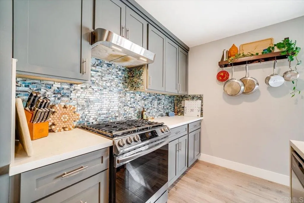 Highly Upgraded Single-Story Home + Brand-New 1,200 sq ft ADU! Nestled on a quiet street in desirable Allied Gardens, this pristinely upgraded 3 bed/2 bath single-story home with a newly constructed 2 bed ADU (built 2025) offers an incredible opportunity to own two residences on one lot! Step inside the main home to find a bright, open floor plan featuring custom plank flooring, wide baseboards, recessed lighting, and designer paint throughout. The chefs kitchen shines with high-end cabinetry, quartz countertops with a custom tile backsplash, stainless-steel appliances (including a 5-burner gas range), and a waterfall-edge quartz island perfect for entertaining. Both guest bedrooms are generously sizedone includes a Murphy bed for added flexibility, ideal as an office or craft space. The private primary suite is a true retreat with vaulted open-beam ceilings, slider access to a private patio, and a spa-inspired ensuite bathroom boasting a dual-sink vanity, a soaking tub within a stunning custom tiled walk-in shower. The backyard oasis (with no neighbors behind) offers scenic hillside views, abundant room for gatherings, and space for pets to roam. The brand-new ADU/guest housecompleted in 2025 with its own separate addressfeatures 9-ft ceilings, an open-concept living area, designer kitchen, quartz counters, and custom backsplash. Downstairs includes a convenient half bath, while upstairs hosts two spacious bedrooms, a full bath, and in-unit laundry. This is a rare dual-home opportunityperfect for multi-generational living, rental income, or offsetting your mortgage. Dont m