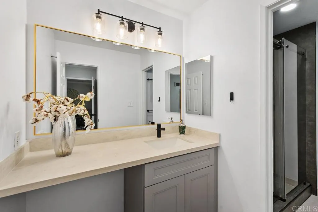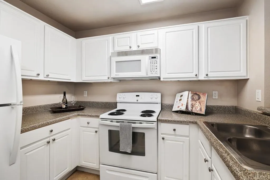 Luxurious Corner Unit Verano Condo Resort-Style Living with Exquisite Upgrades in the Heart of La Jolla Colony Step into sophistication and comfort with this stunning corner, Mediterranean-style end unit, perfectly positioned in the highly sought-after Verano community of La Jolla Colony. This bright, ground-level home combines elegant design, modern upgrades, and resort-inspired amenities all just moments from the very best that La Jolla has to offer. From the moment you enter, youll be greeted by an open, light-filled floor plan enhanced with beautiful crown moldings, rich wood flooring, and dual-pane windows that invite in natural light from multiple directions. The spacious kitchen flows seamlessly into the living and dining areas, creating the perfect space for entertaining or relaxing in style. The beautifully renovated bathrooms are a rare find in this community thoughtfully redesigned with high-end fixtures, custom tilework, and spa-like finishes that elevate your daily routine into an experience of luxury. The generous primary suite offers a large walk-in closet and a serene sense of retreat. Enjoy your morning coffee or unwind at sunset on your private patio, surrounded by lush greenery and the tranquil ambiance of La Jolla Colony. As a true corner unit, this home offers additional privacy, fewer shared walls, and extra windows that fill every room with sunshine and fresh air. Practical comforts abound, including no stairs, a side-by-side washer and dryer, ample storage, and three convenient parking spaces two in the attached garage building and one additional